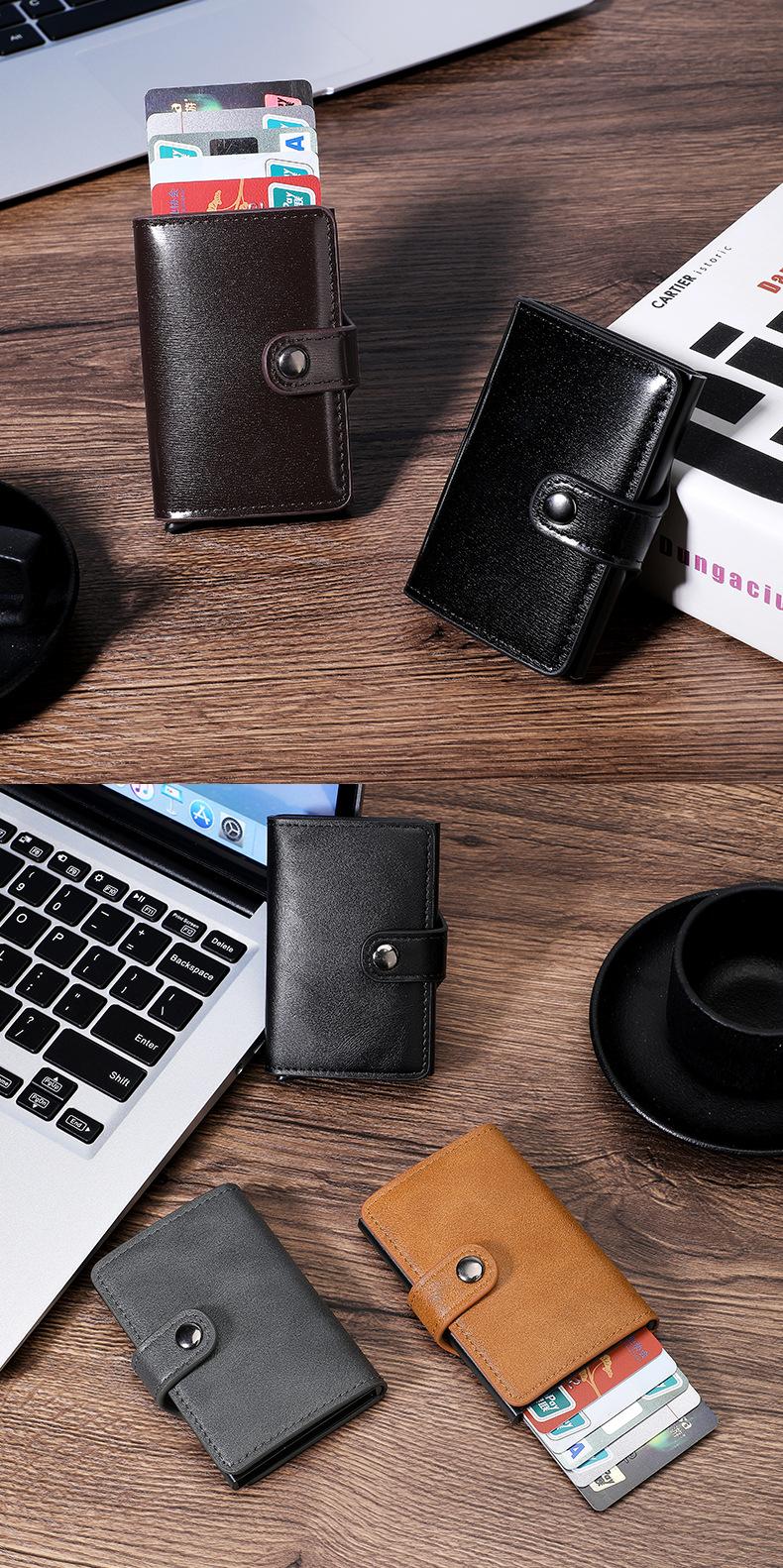Cartera de negocios para hombre de Europa y América, tarjetero retro de PU, tarjetero, monedero plegable con almacenamiento, venta al por mayor, cepillo antirrobo