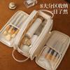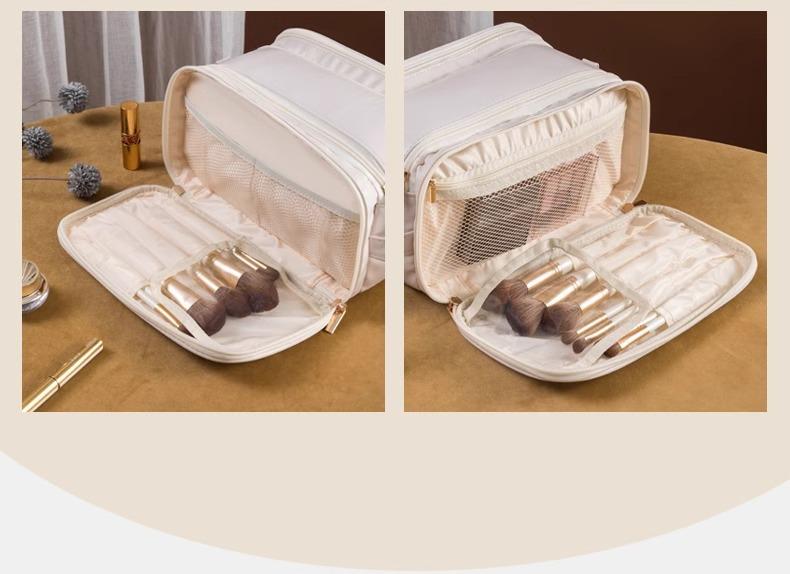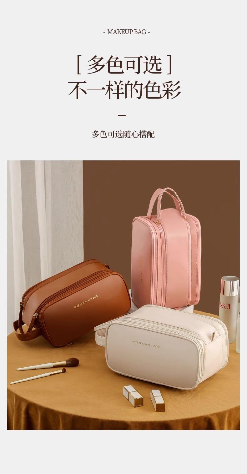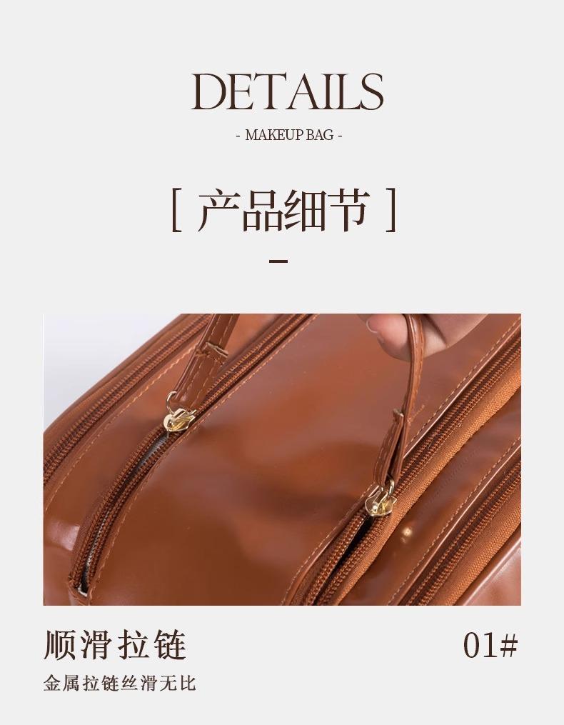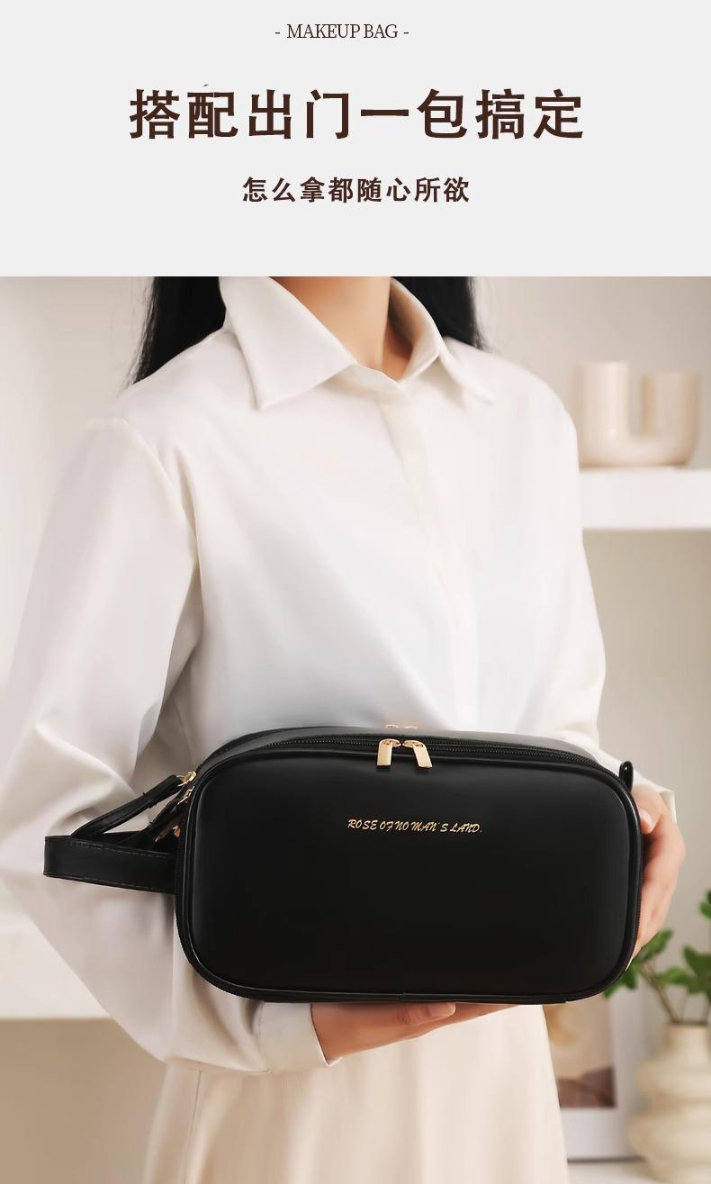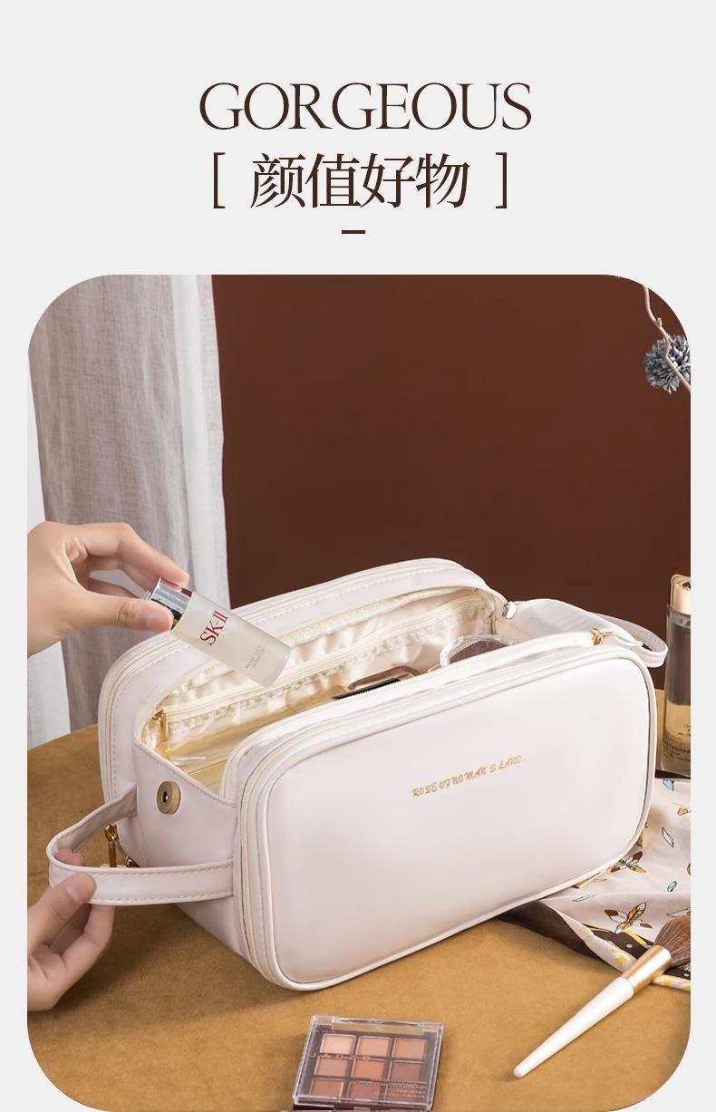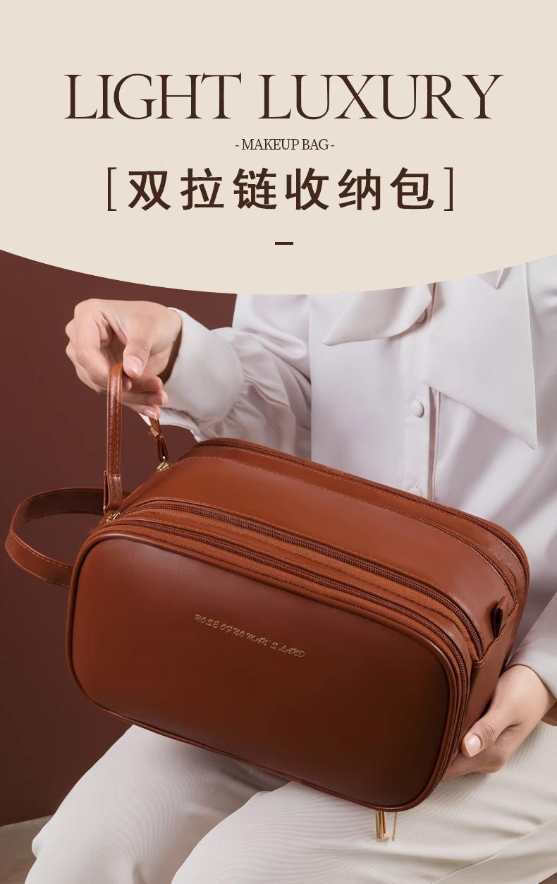 Pink-double zipper cosmetic bag, Brown-double zipper cosmetic bag, Black-double zipper cosmetic bag, Off-white...