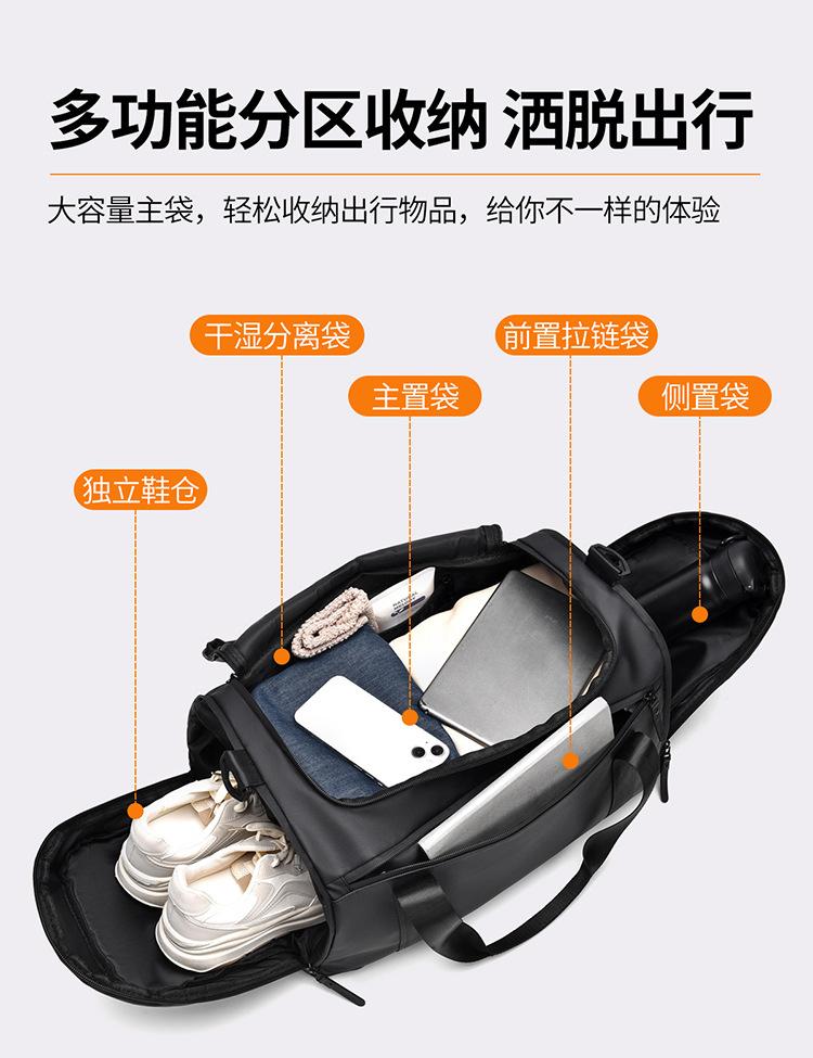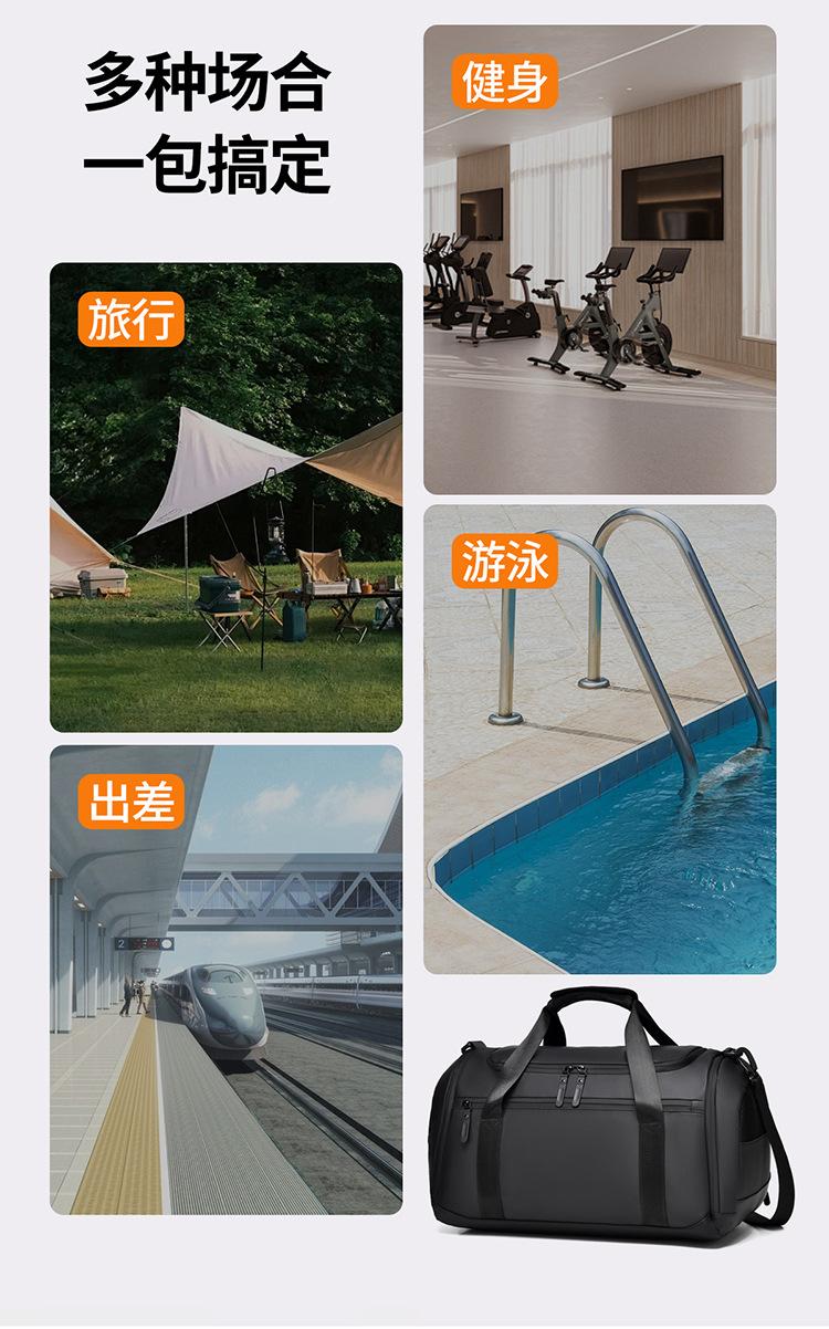 Bolsa de viaje para hombre de gran capacidad transfronteriza, bolsa de viaje para exteriores, bolso de mano multifuncional para negocios, bolsa de gimnasio con separación seca y húmeda