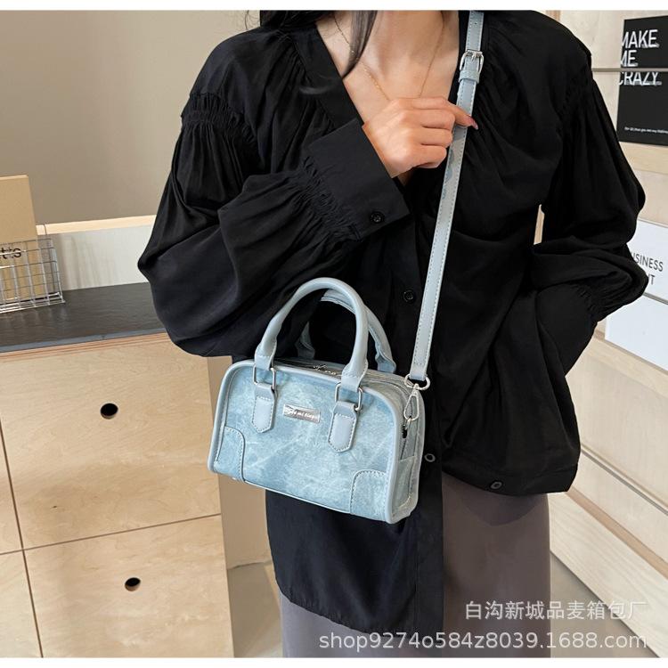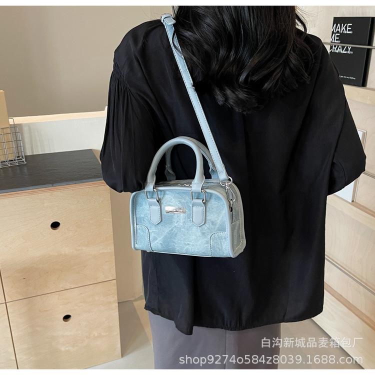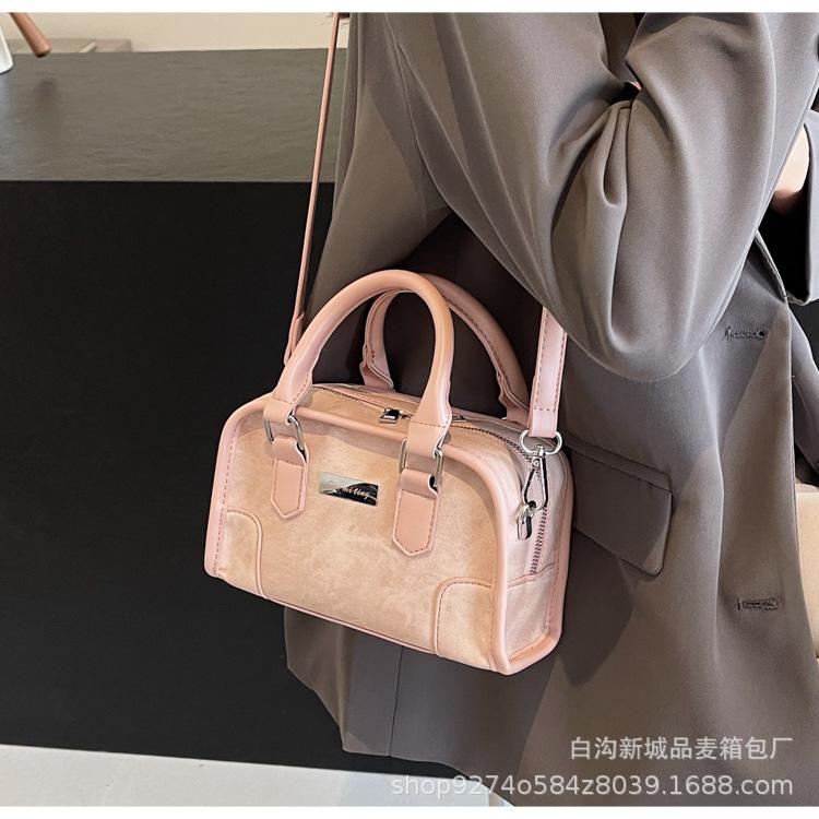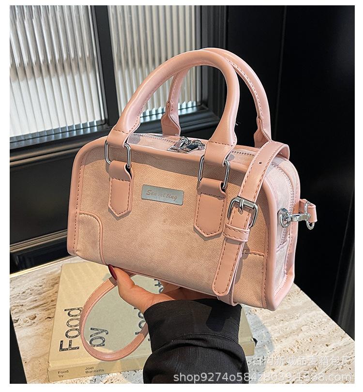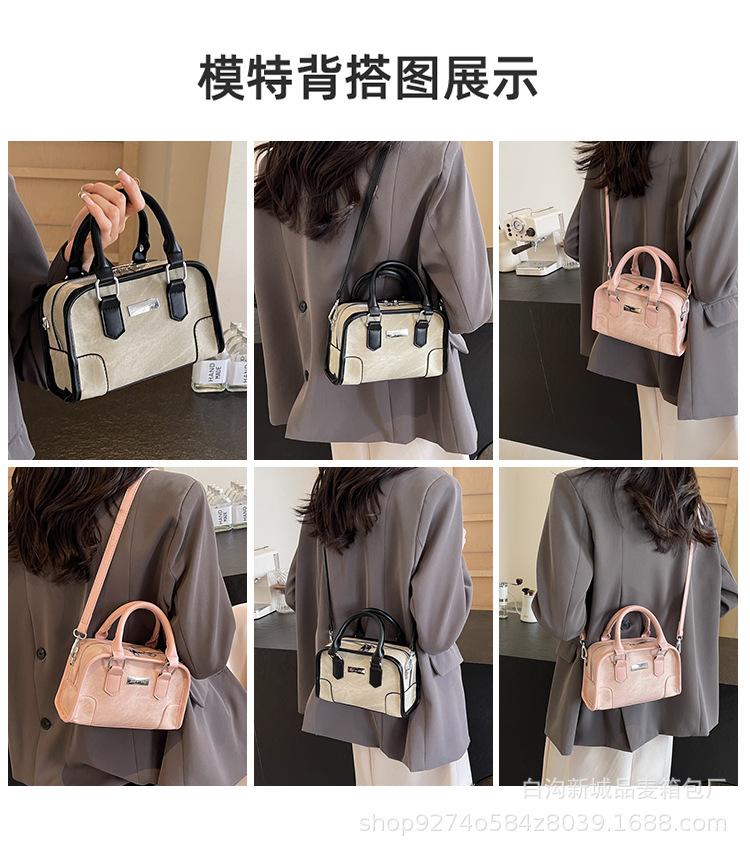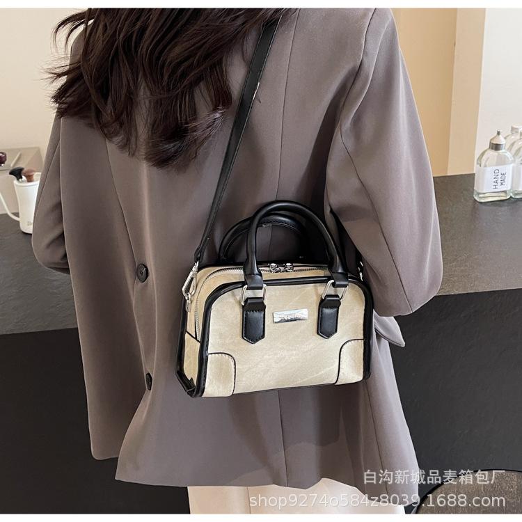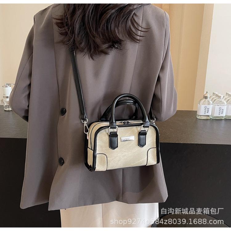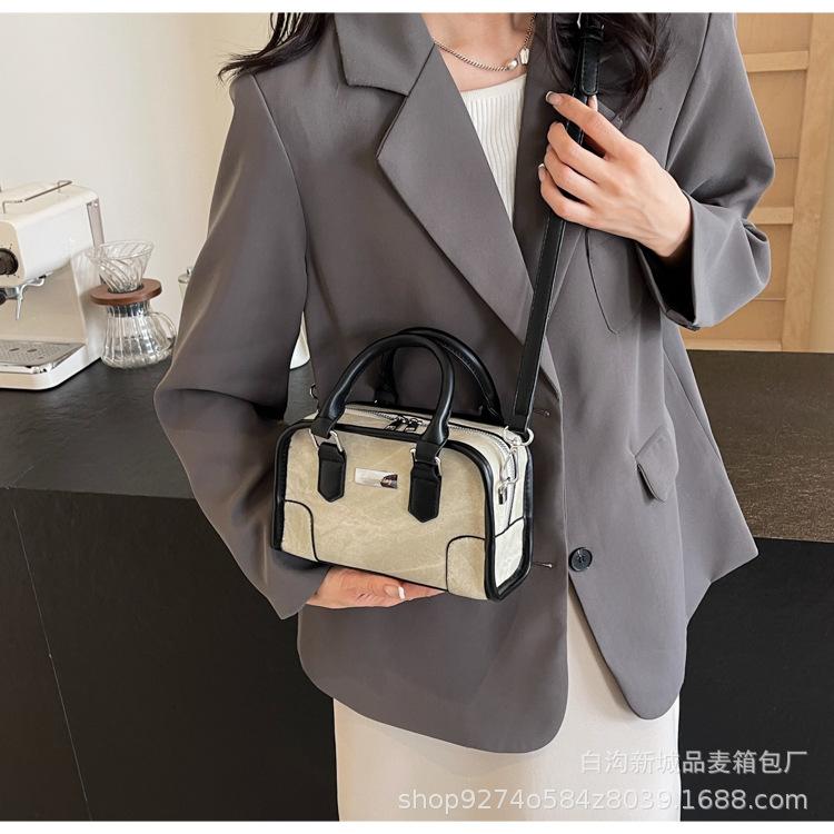 Bolso Boston portátil retro para mujer, nuevo bolso cruzado de moda explosiva de 2024, bolso de hombro para uso diario con contraste de color.