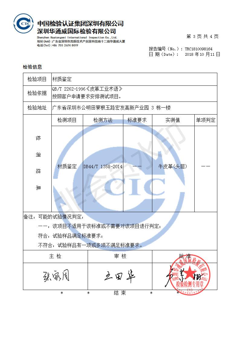 1. Este modelo está hecho dePrimera capa de piel de vacuno, el producto tiene un informe de inspección de calidad