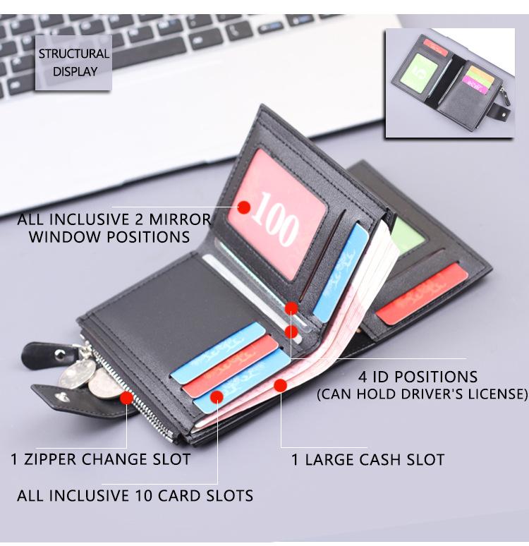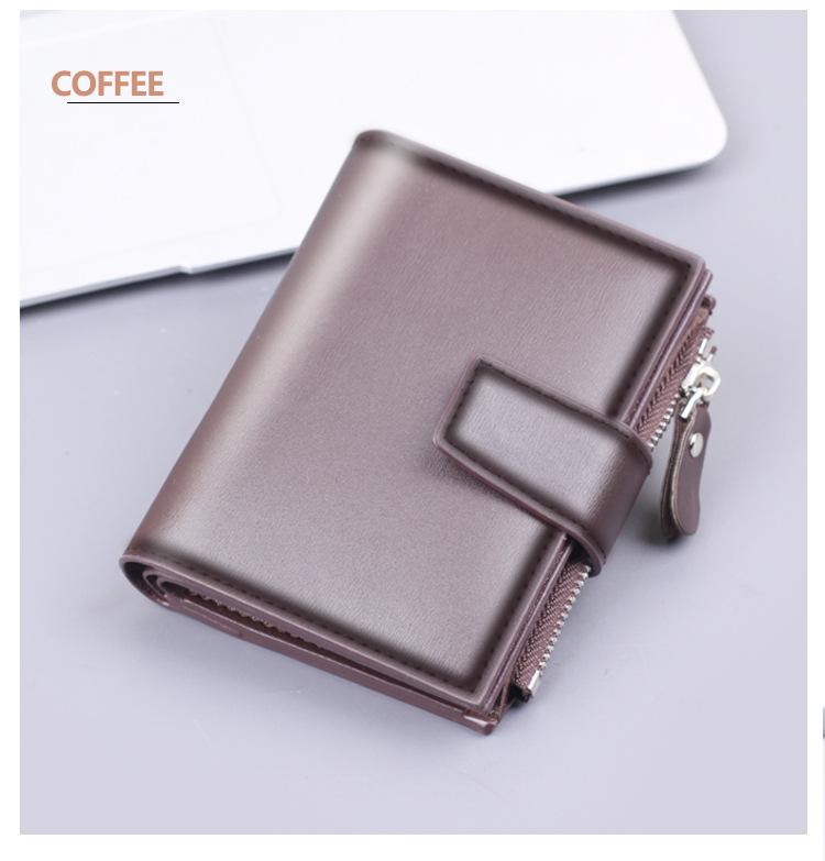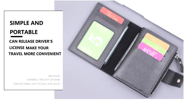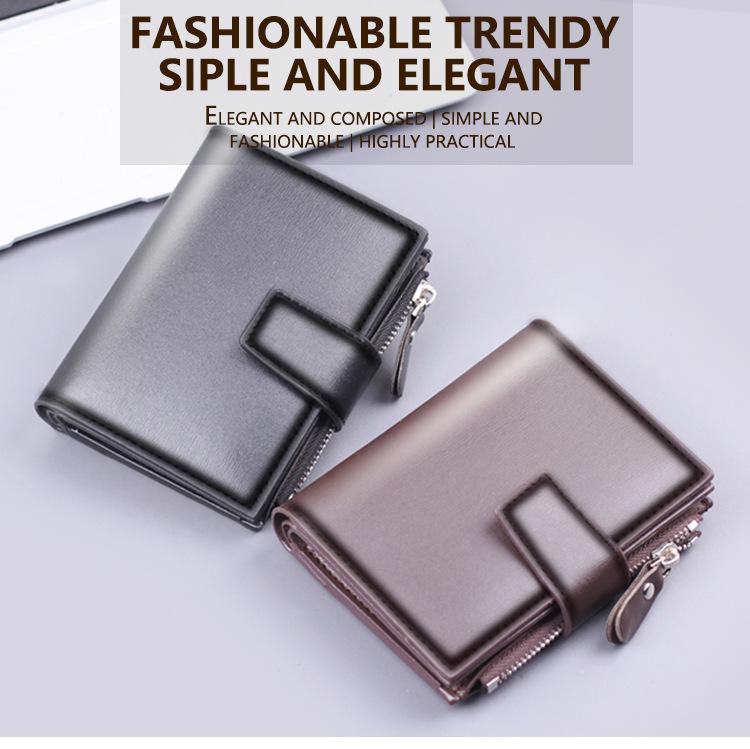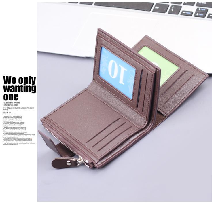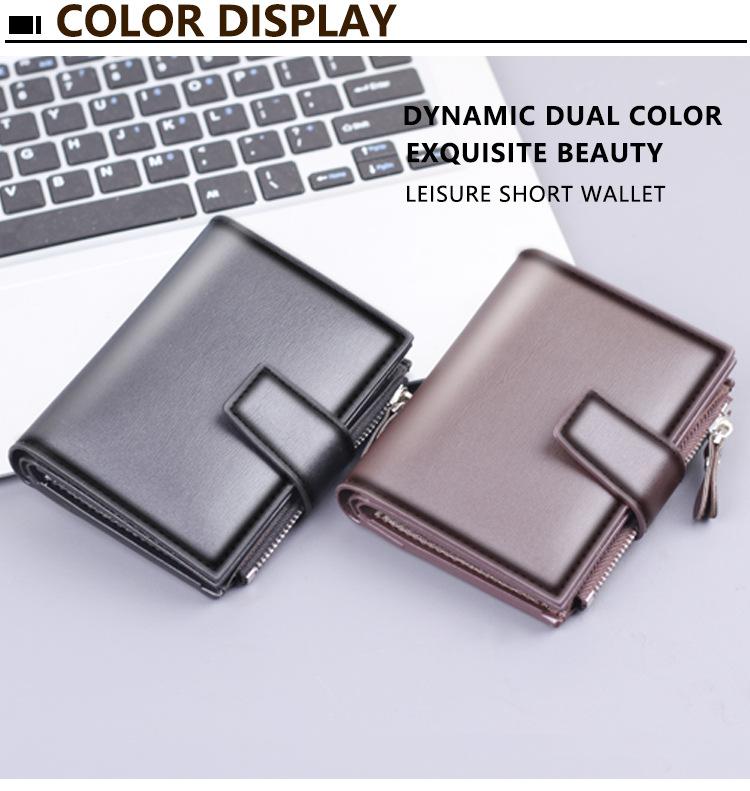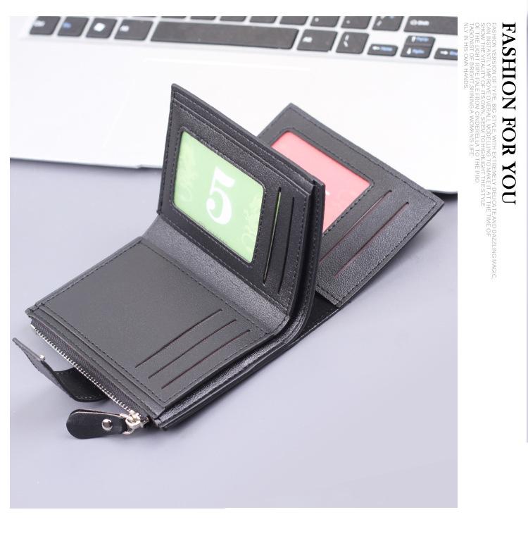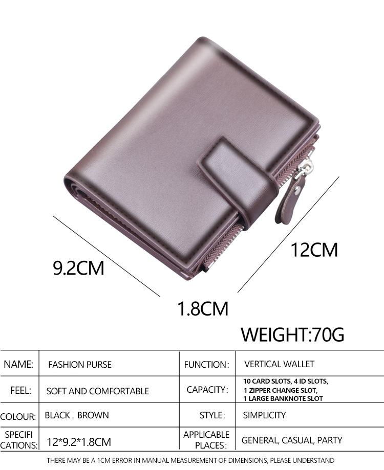 Cartera vertical para hombre, billetera corta con botones, tarjetero, billetera multifuncional para hombre, billetera con cremallera cruzada, clip corto
