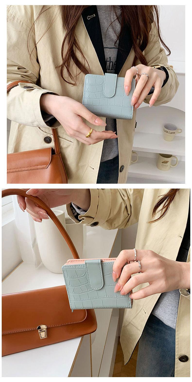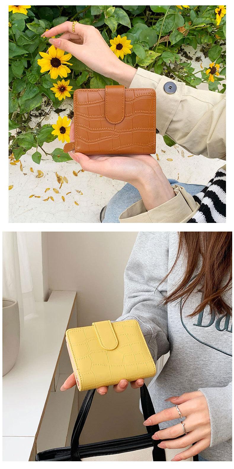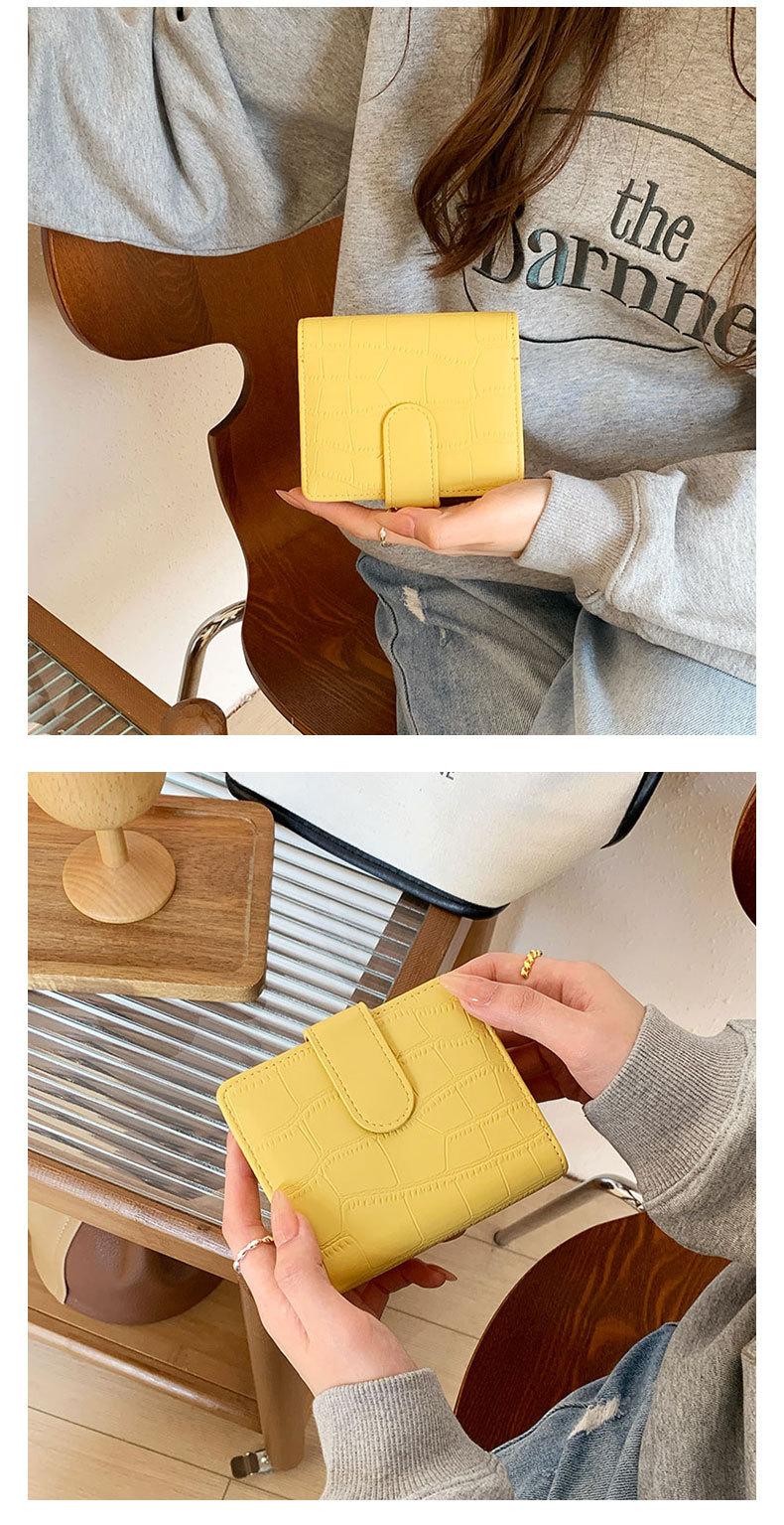 Billetera Nueva para Mujer Corta Color Sólido Patrón Piedra Estilo Coreano Billetera para Estudiante Rejilla para Monedas Multifuncional Billetera para Mujer