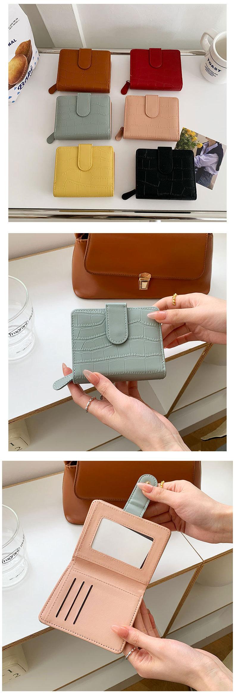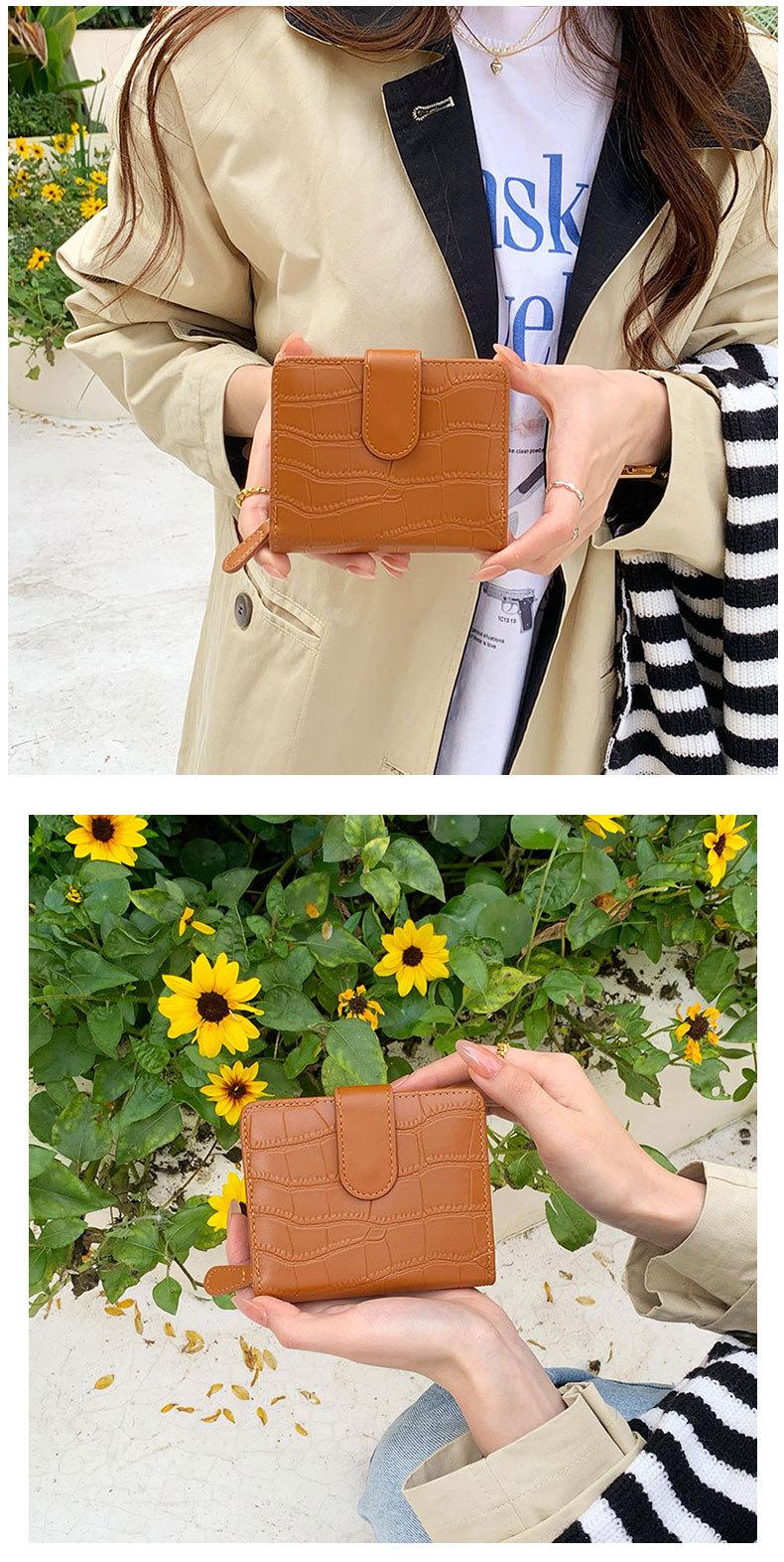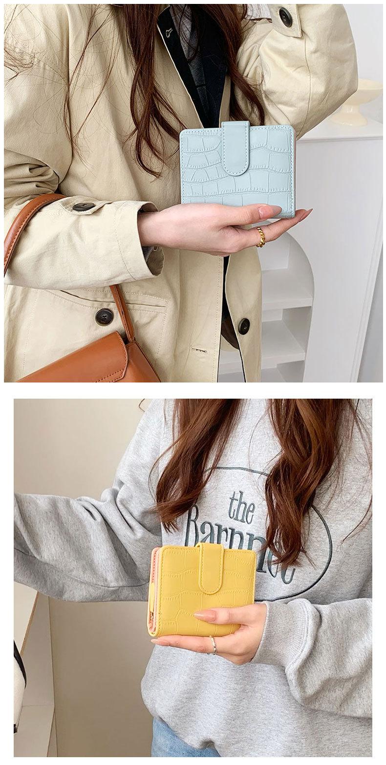 Billetera Nueva para Mujer Corta Color Sólido Patrón Piedra Estilo Coreano Billetera para Estudiante Rejilla para Monedas Multifuncional Billetera para Mujer