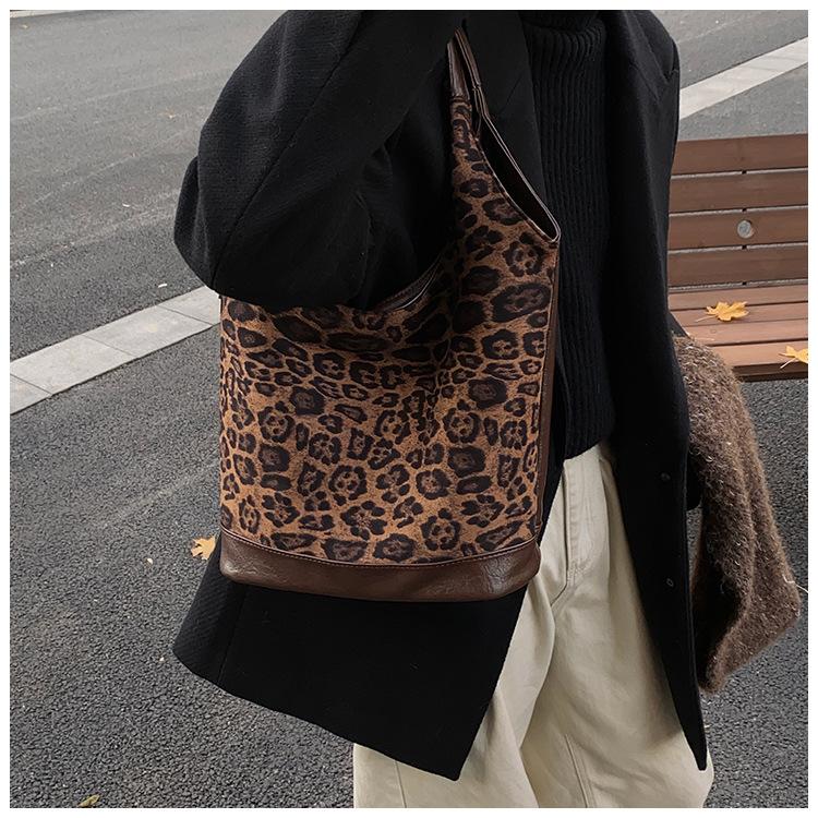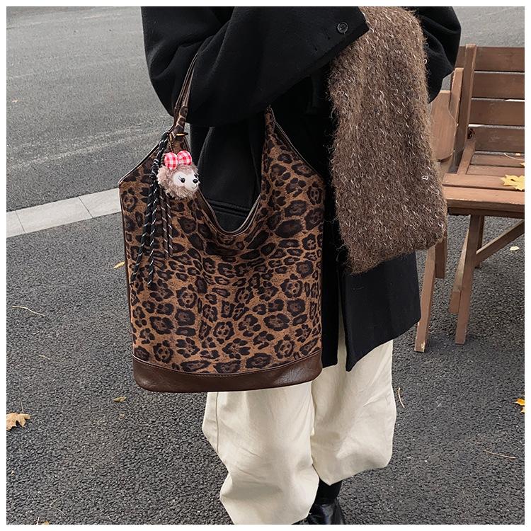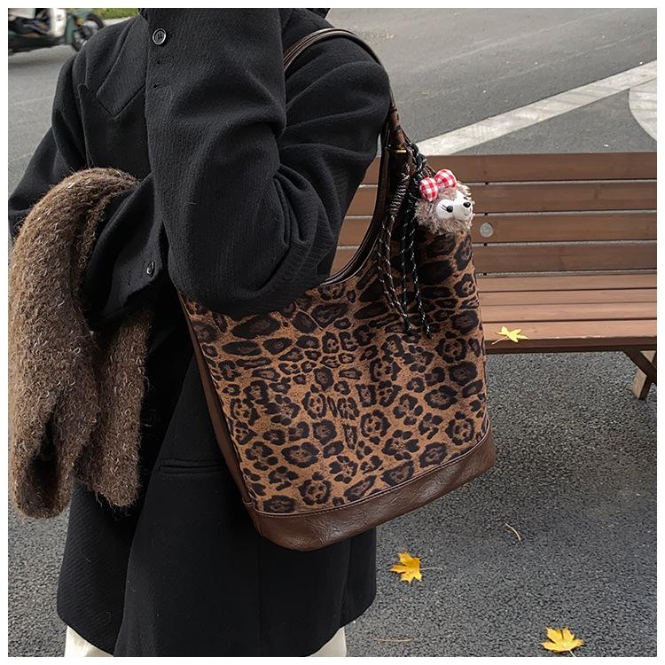 Bolso Casual de Gran Capacidad para Desplazamiento Diario para Mujer 2025 Nuevo Popular Estampado de Leopardo Bolso de Hombro Otoño e Invierno Bolso Tote Portátil