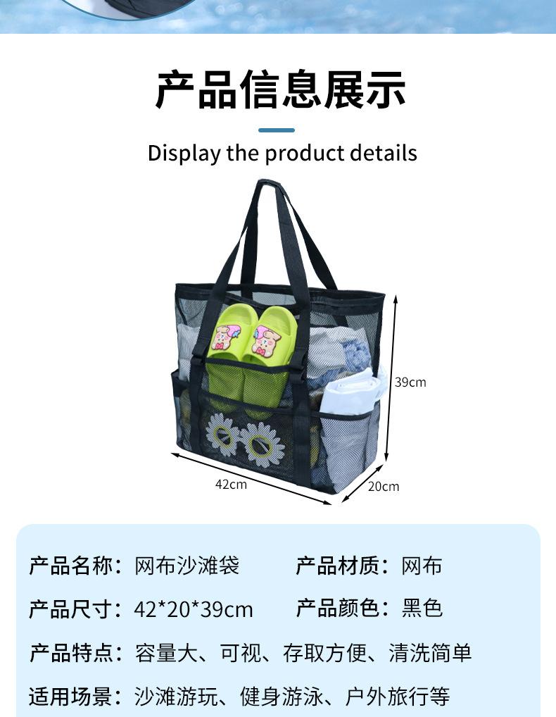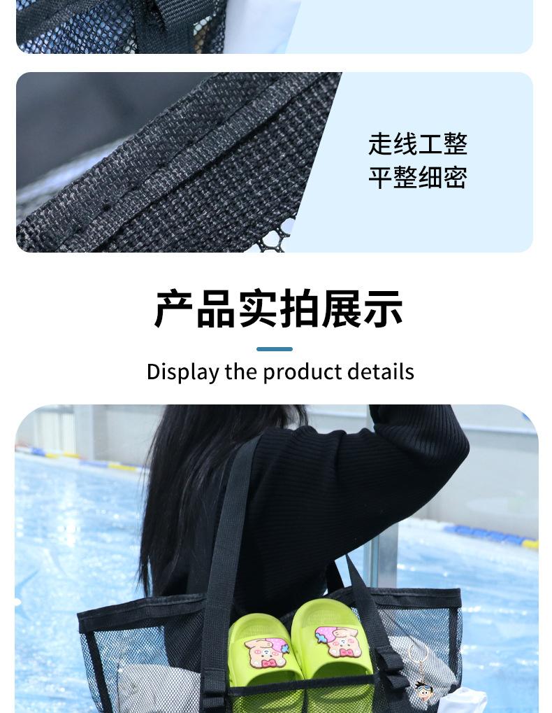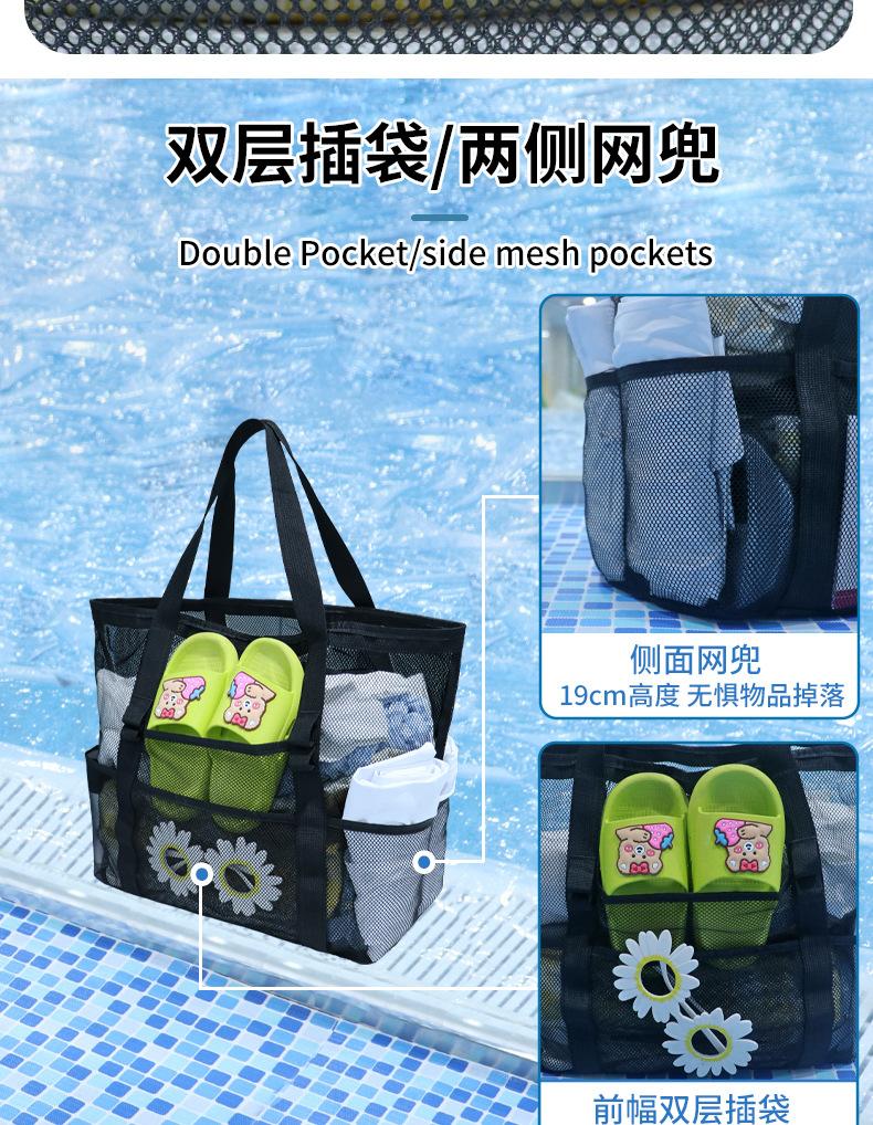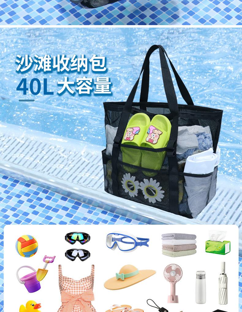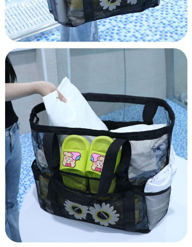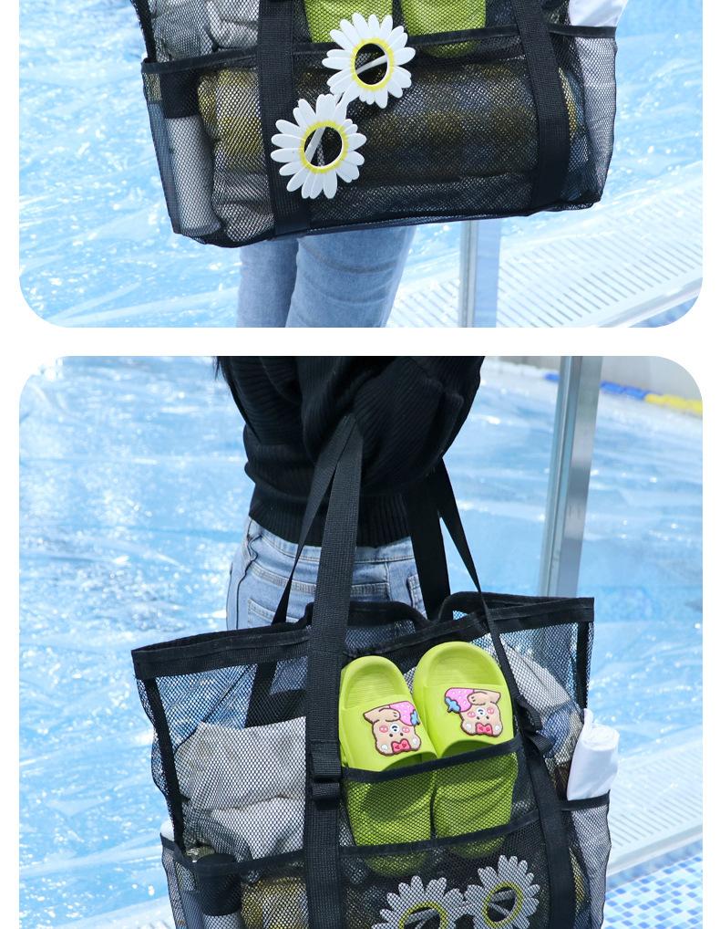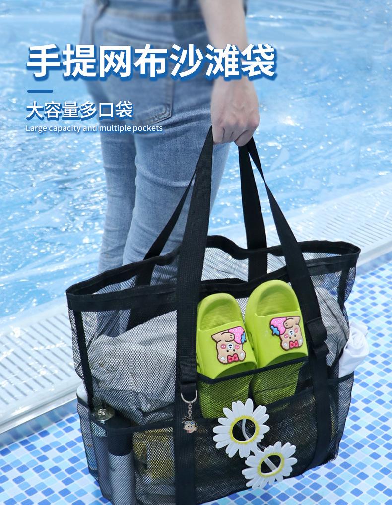 Bolsa de playa de malla, bolsa de viaje portátil, bolsa de almacenamiento portátil, bolsa de baño de gran capacidad, bolsa de playa de malla para natación