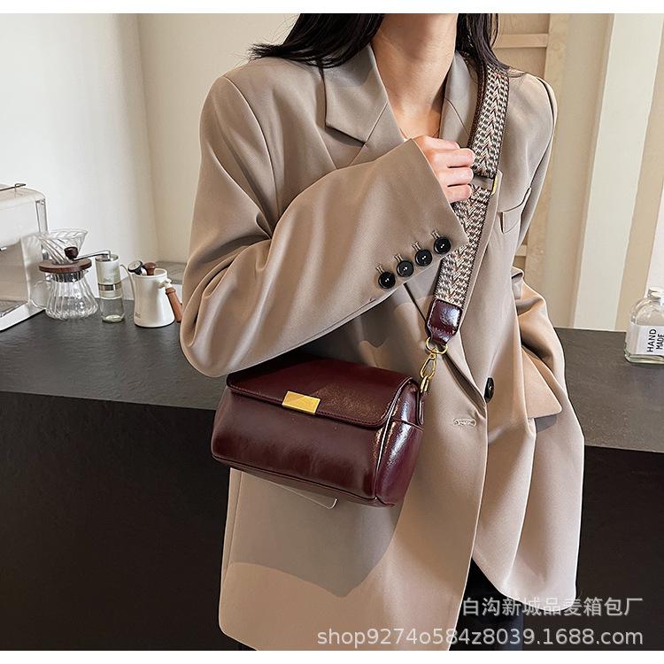 Bolso vintage para mujer, estilo coreano, bandolera ancha con textura, estilo almohada, para uso diario, 2024
