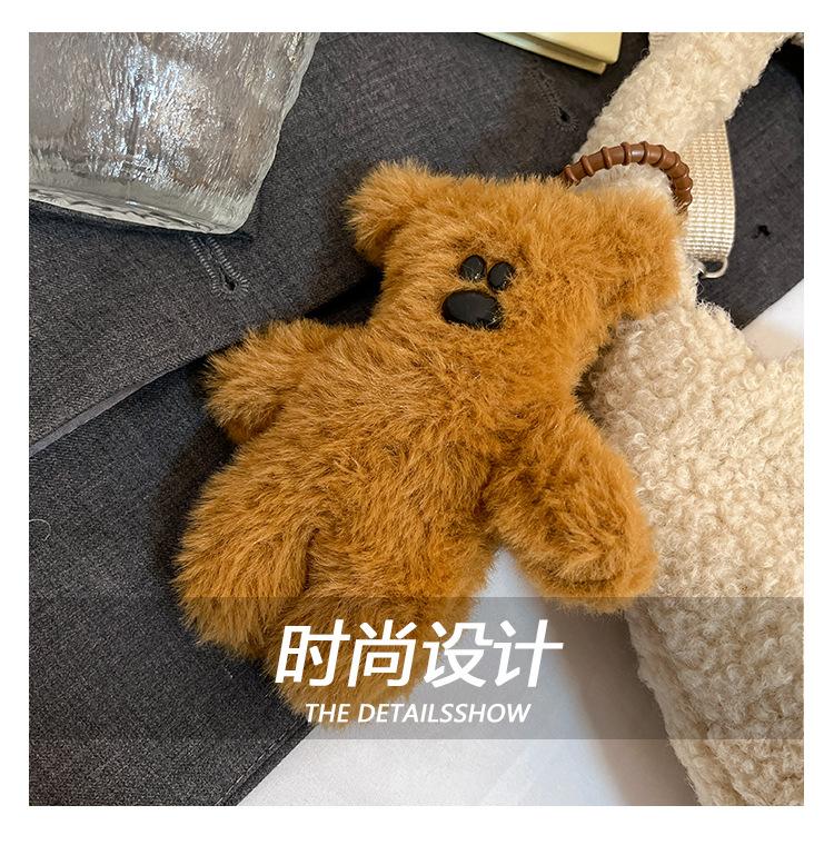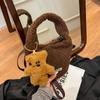 Moda Coreana de Tendencia Bolso Bucket de Lana de Cordero 2024 Otoño e Invierno Nuevo Simple Casual Bolso Mao Mao Bolso de Hombro Estilo Occidental