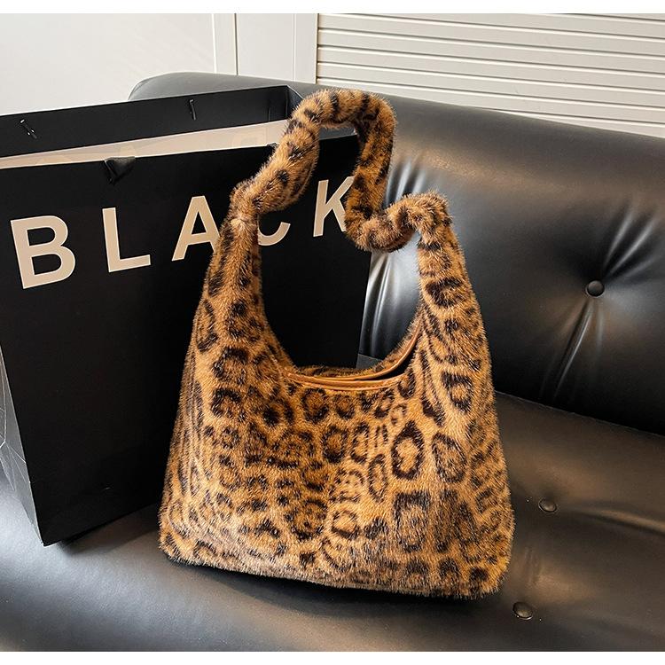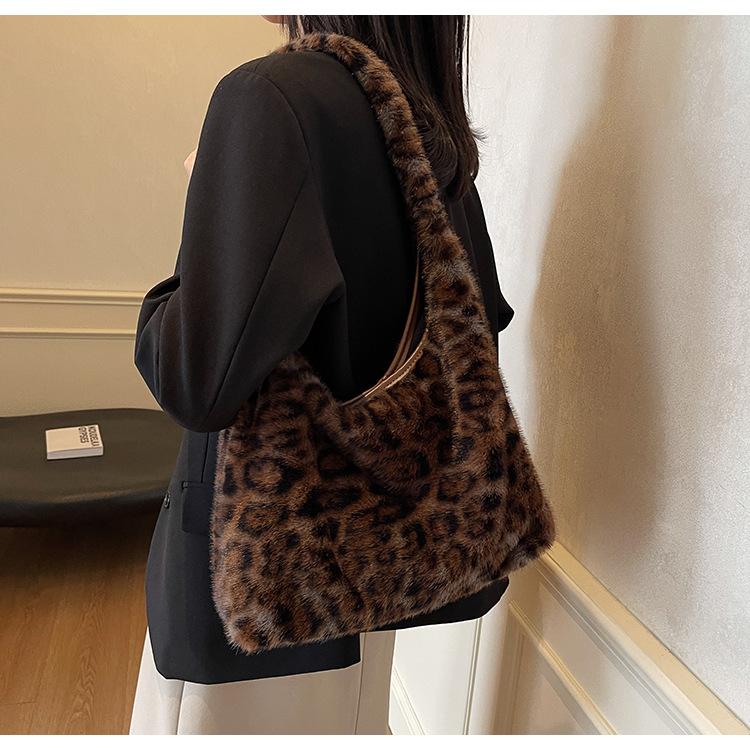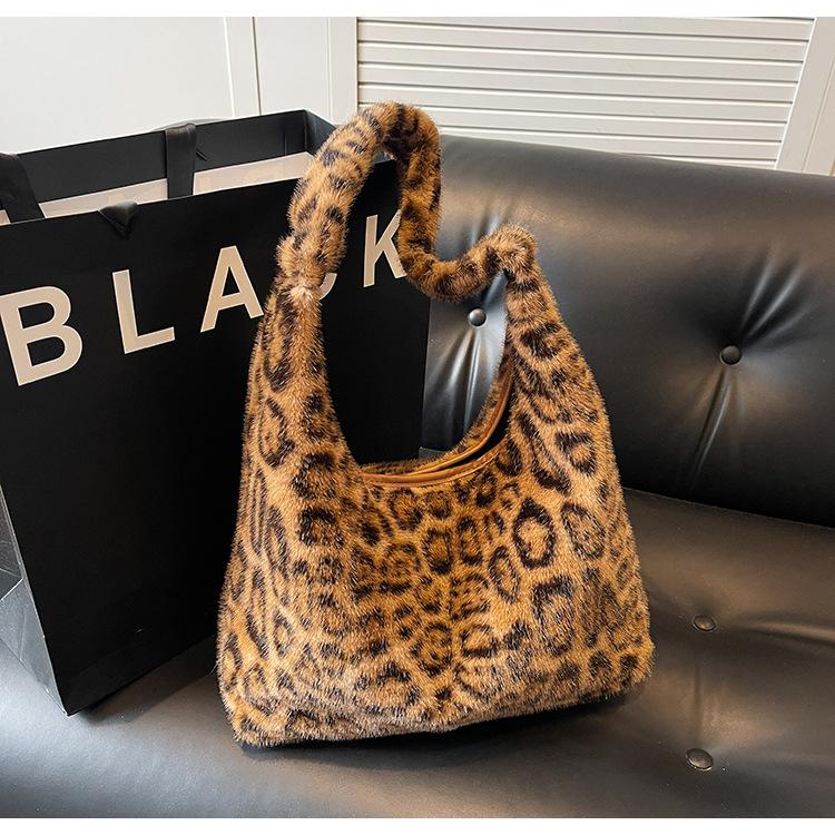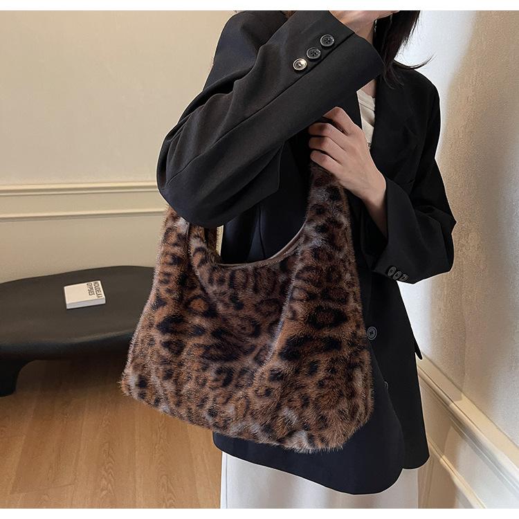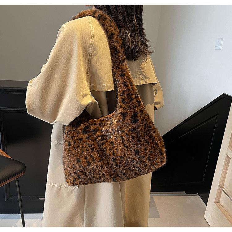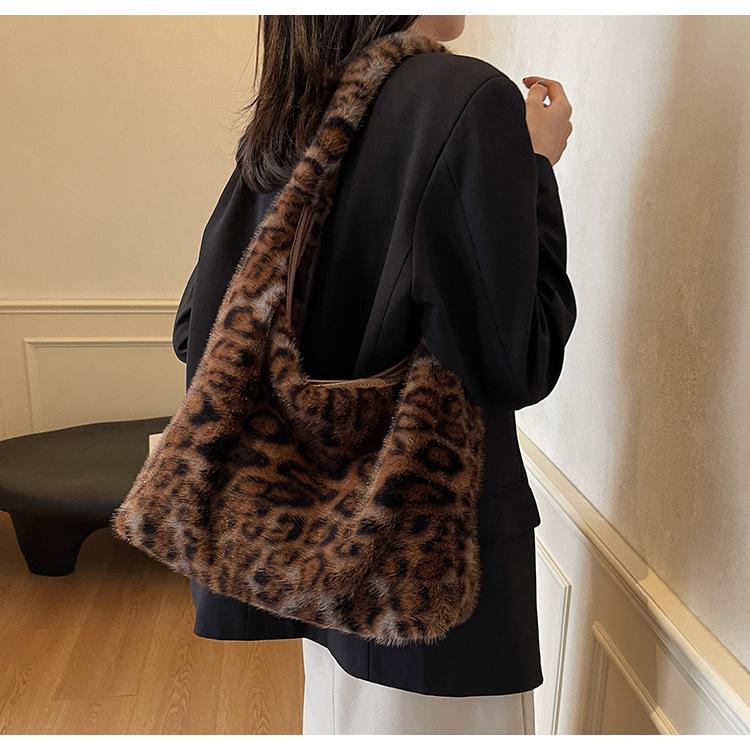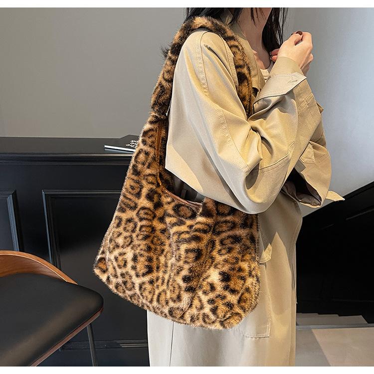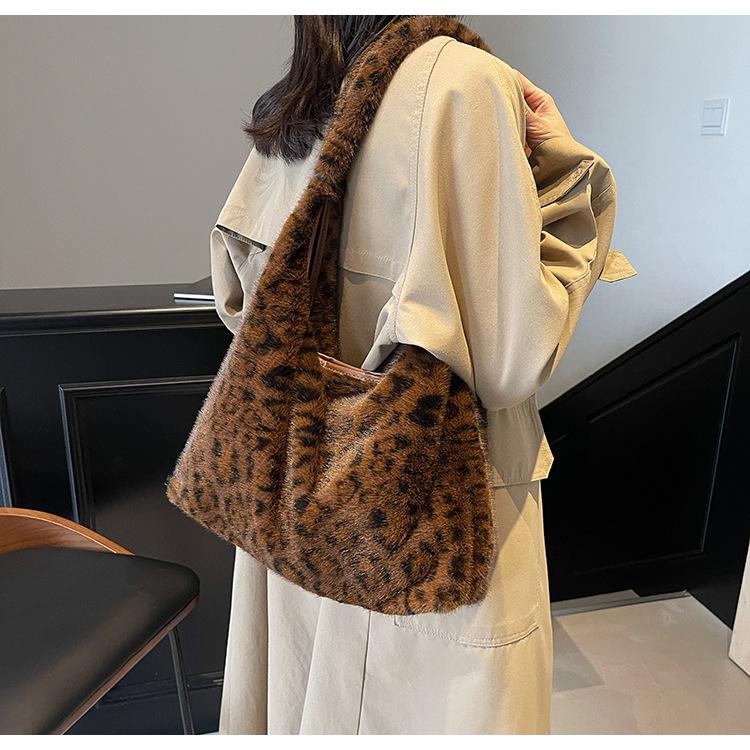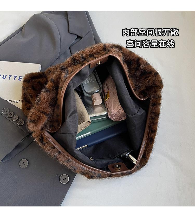 Compra Bolso Bandolera de Gran Capacidad con Estampado de Leopardo de Felpa Transfronterizo para Mujer, Nuevo Bolso de Hombro de Moda Mao Mao para Viajes de Otoño e Invierno 2024 al por mayor en Joom.pro