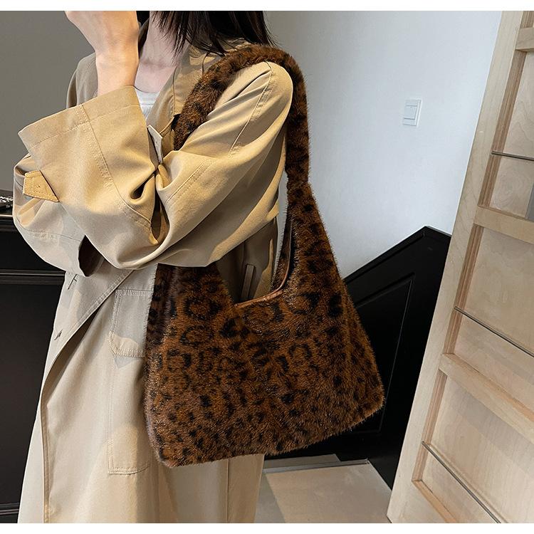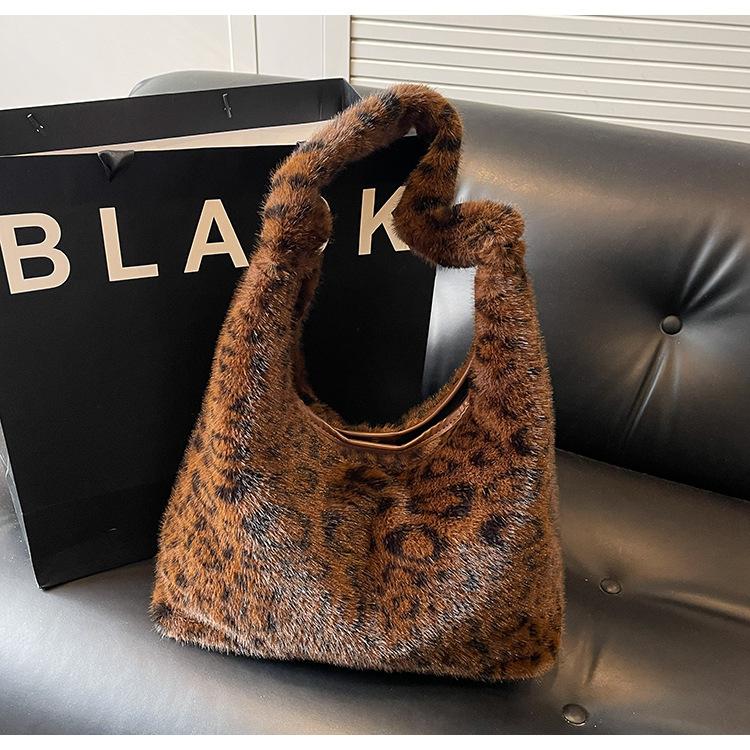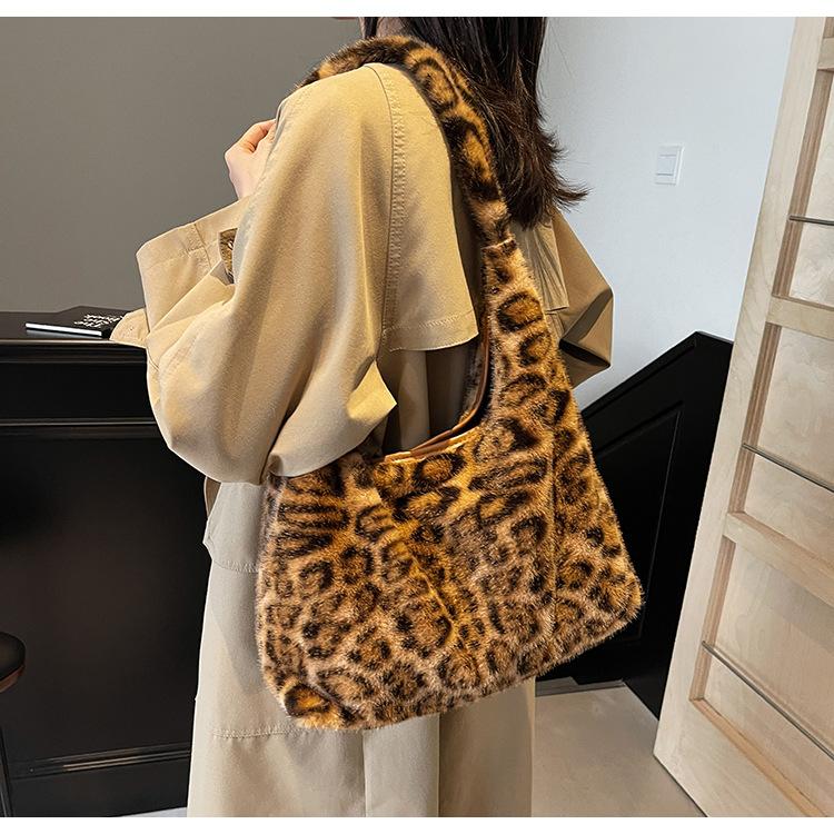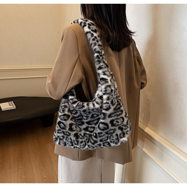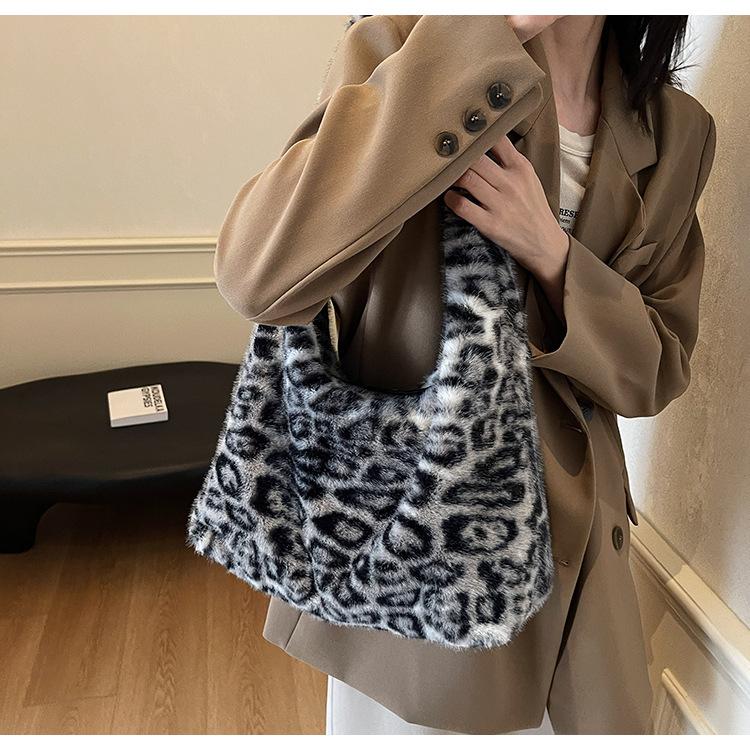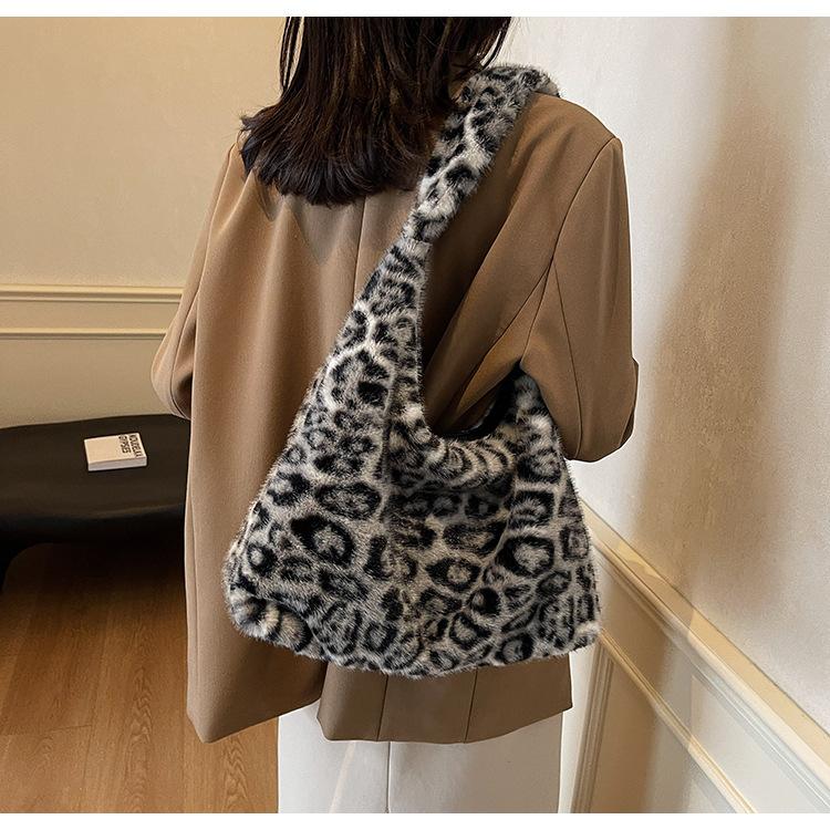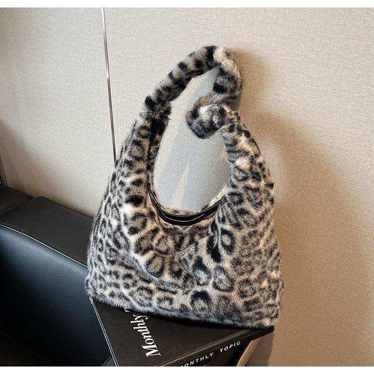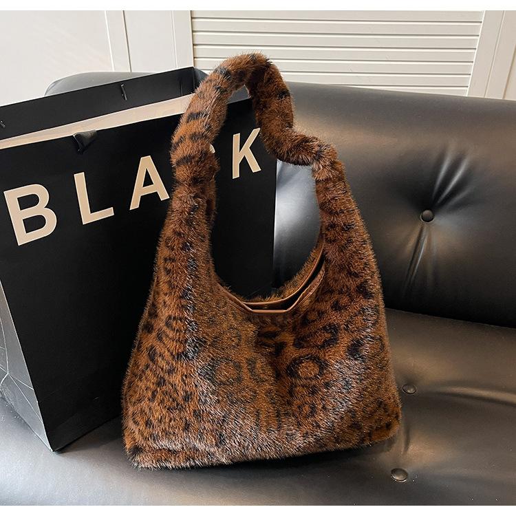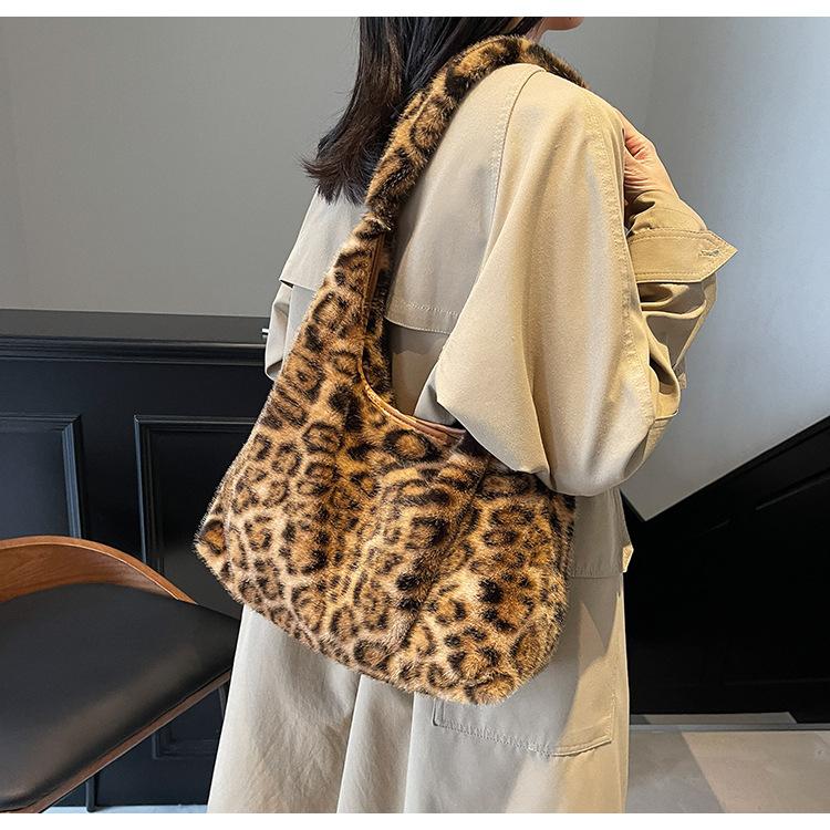 Compra Bolso Bandolera de Gran Capacidad con Estampado de Leopardo de Felpa Transfronterizo para Mujer, Nuevo Bolso de Hombro de Moda Mao Mao para Viajes de Otoño e Invierno 2024 al por mayor en Joom.pro