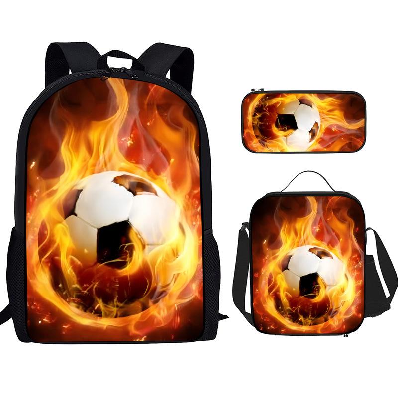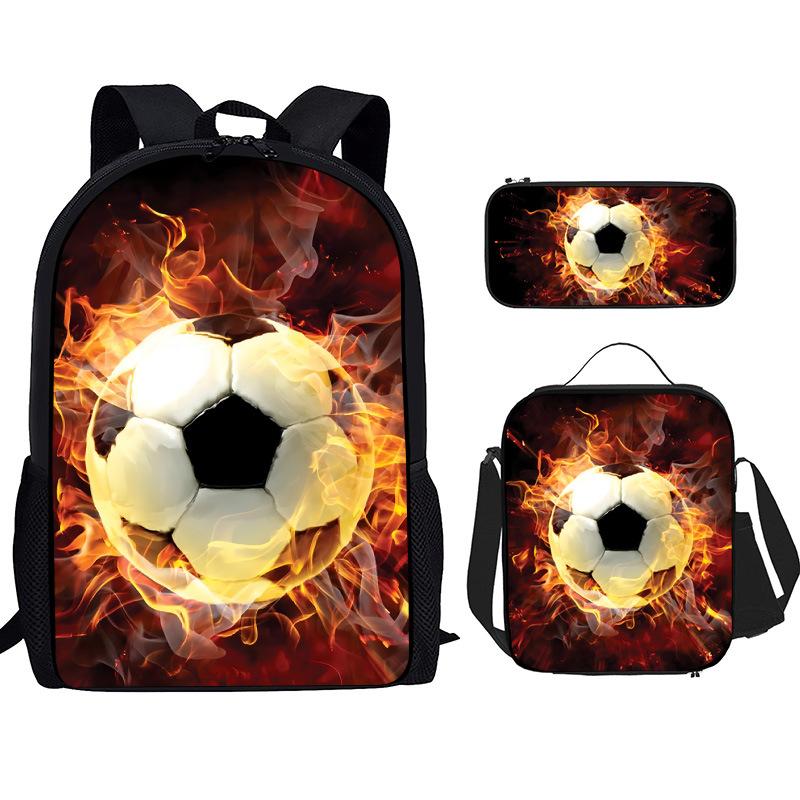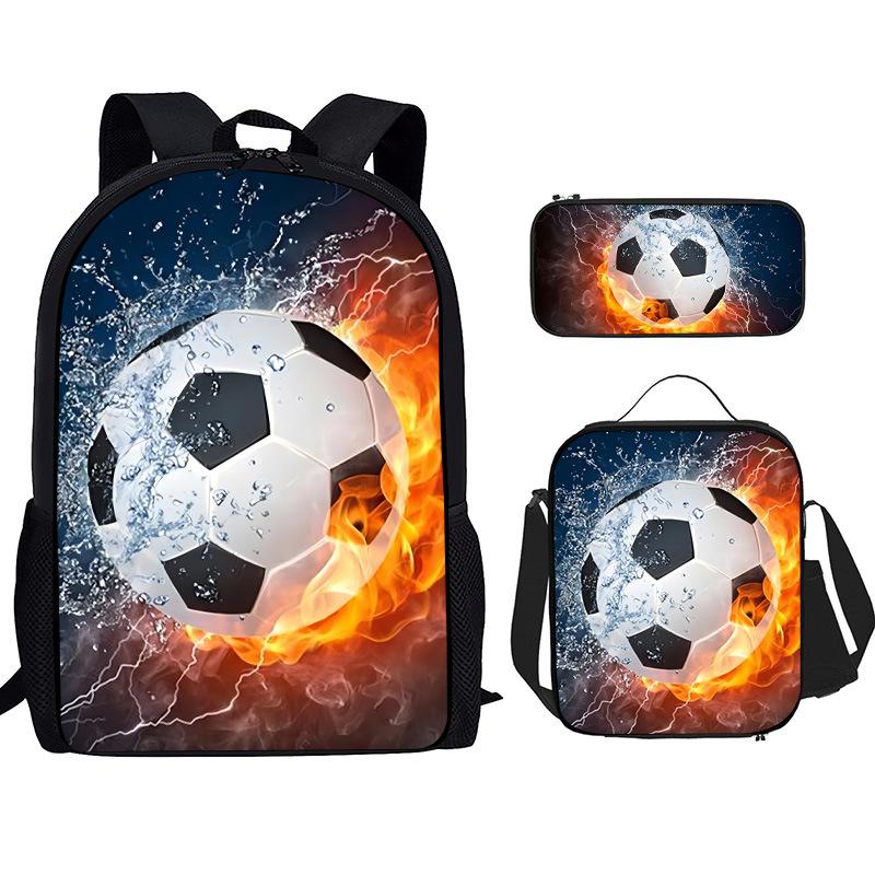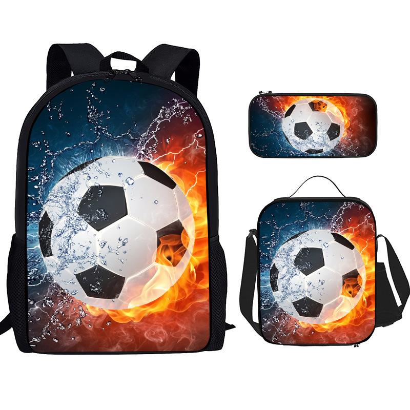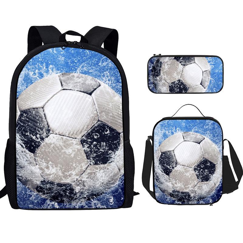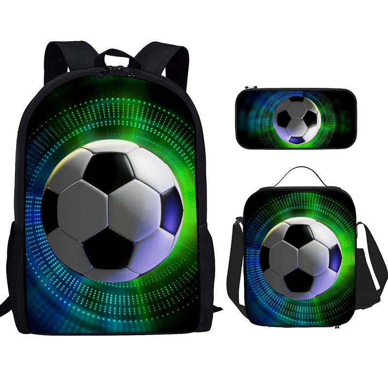 Mochila Recta de Nailon, Bolso de Hombro, Estuche, Juego de Tres Piezas, Mochila para Primaria y Secundaria, Mochila Infantil con Estampado de Fútbol