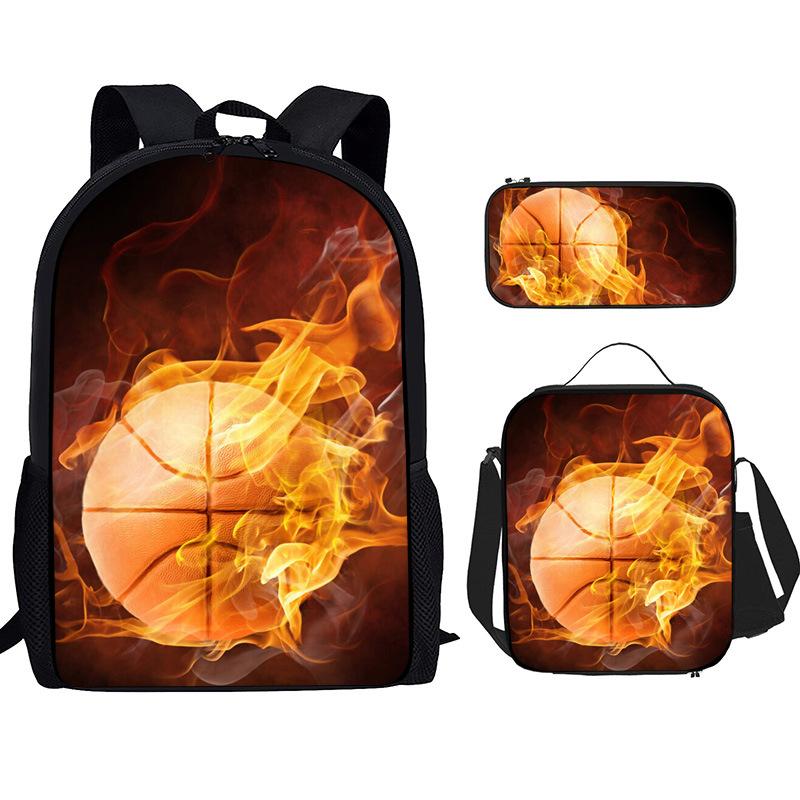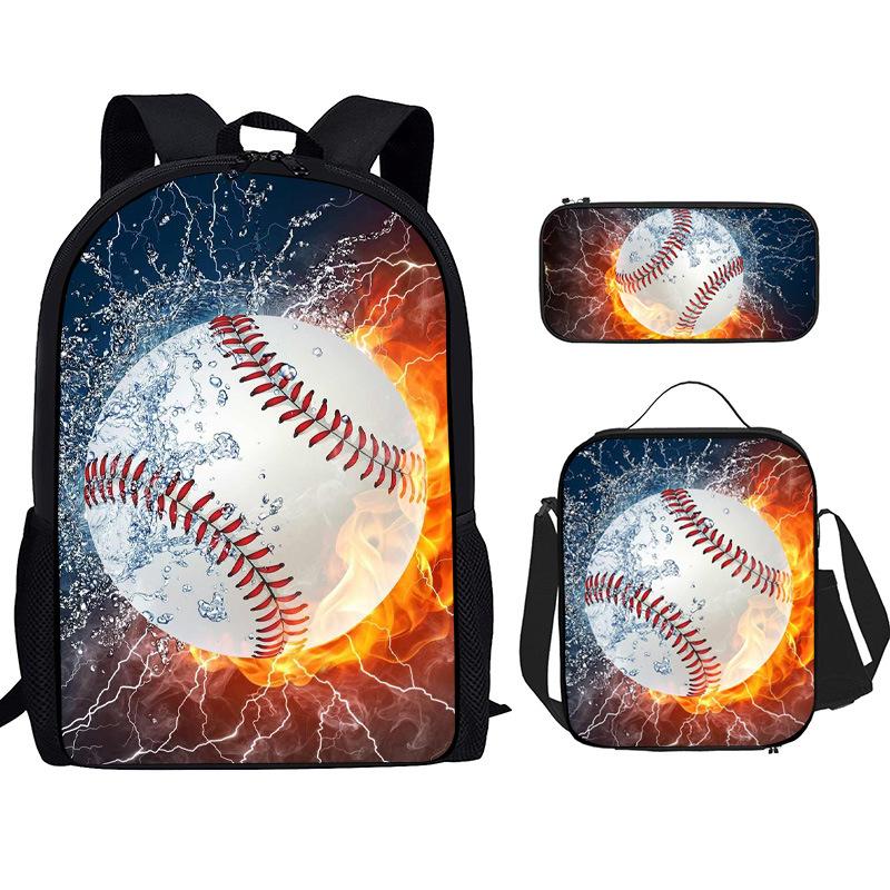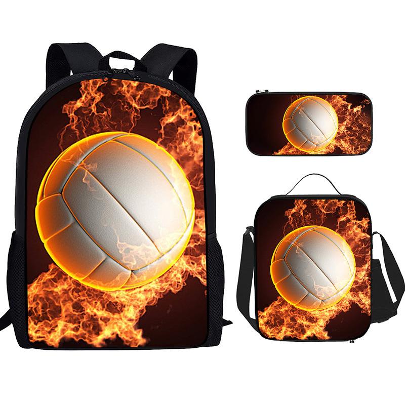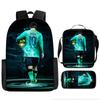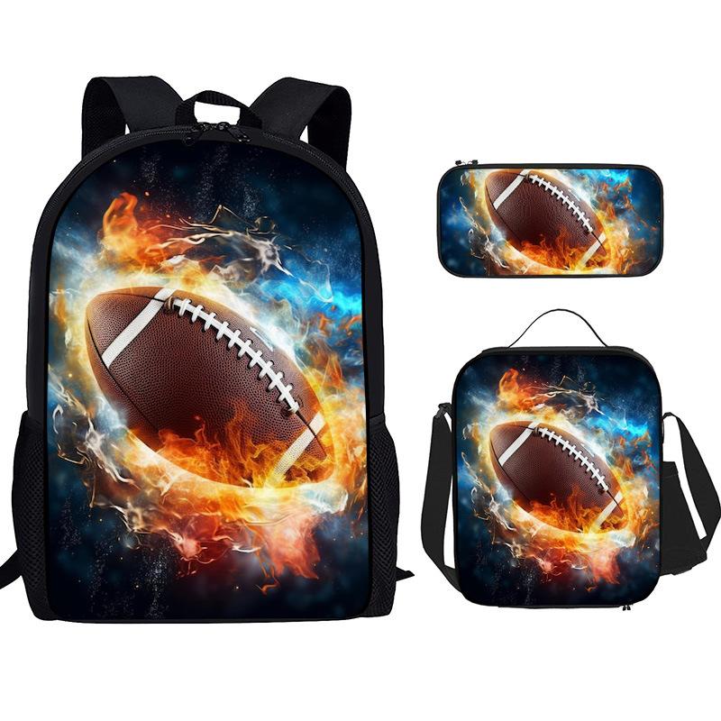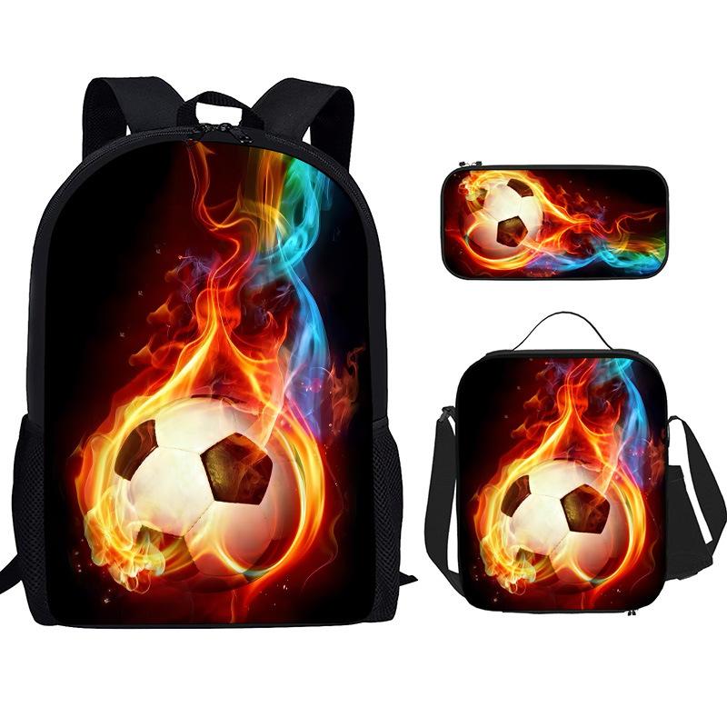 Mochila Recta de Nailon, Bolso de Hombro, Estuche, Juego de Tres Piezas, Mochila para Primaria y Secundaria, Mochila Infantil con Estampado de Fútbol