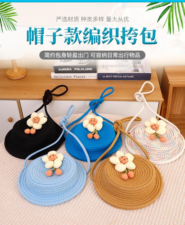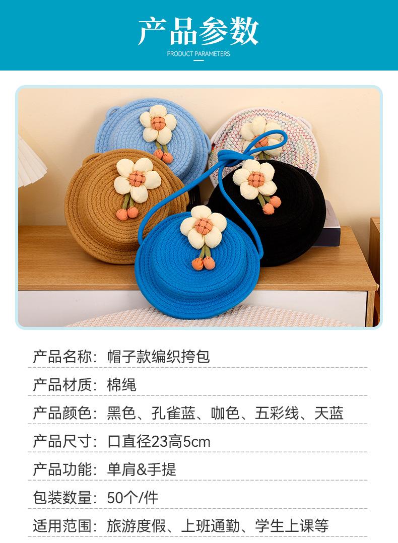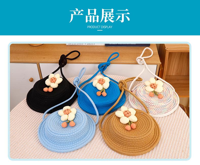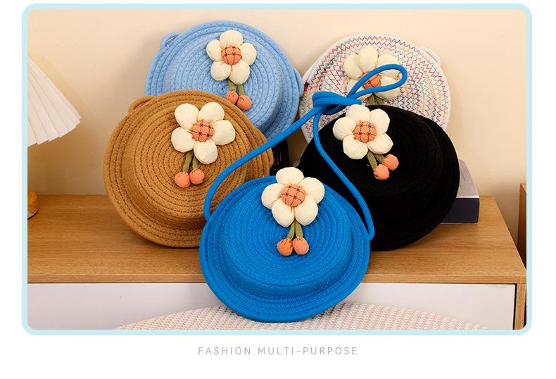 Bolsito tejido de paja para niños de primavera y verano, bolso redondo cruzado para monedas de niña pequeña, bolso de hombro de moda moderna de princesa, estilo nuevo 2024