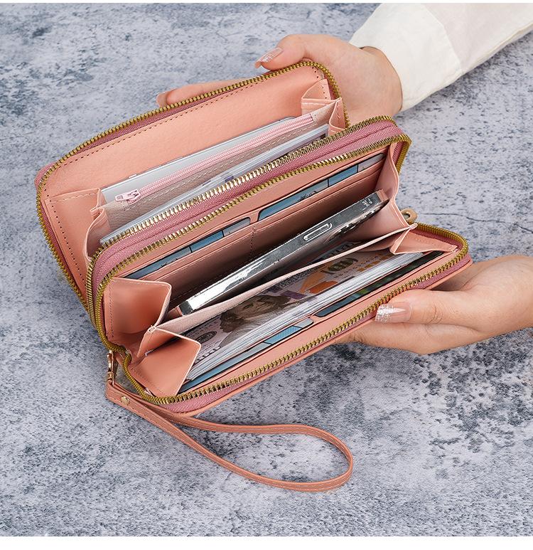 Nueva Cartera Transfronteriza Retro Europea y Americana de PU Larga Monedero de Gran Capacidad para Mujer Multitarjeta con Cremallera de Mano Bolsa para Teléfono Móvil