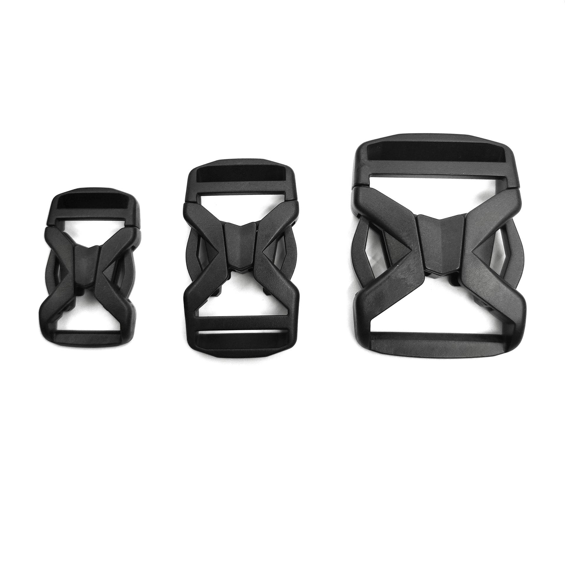 Fabricantes 20~38mm hebilla de ajuste hueca en forma de X de plástico hebilla de seguridad para mochila de exterior hebilla hembra tipo cruz suministro