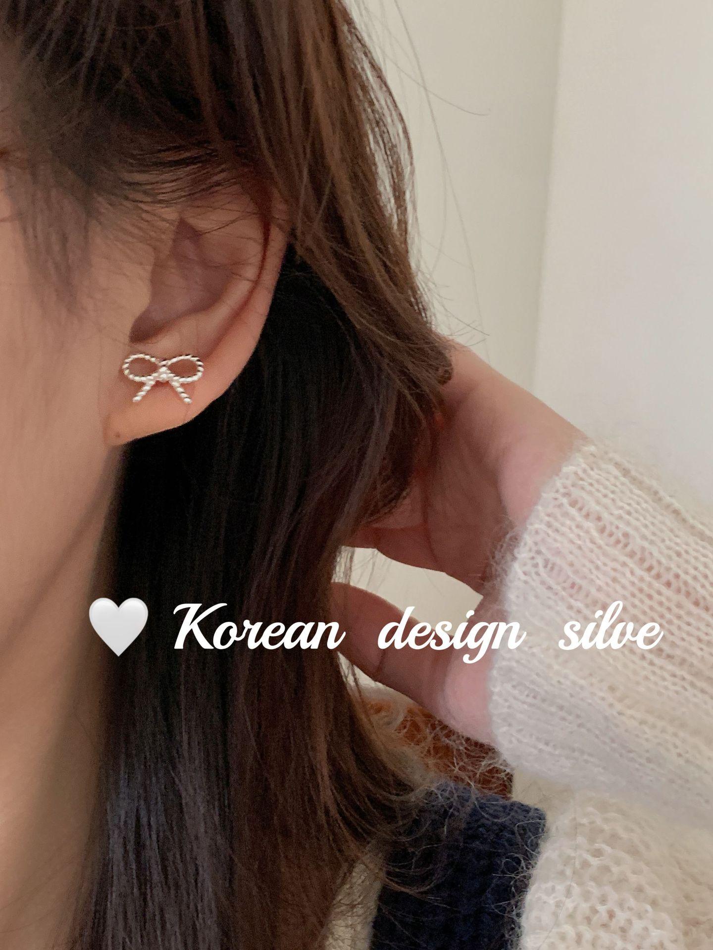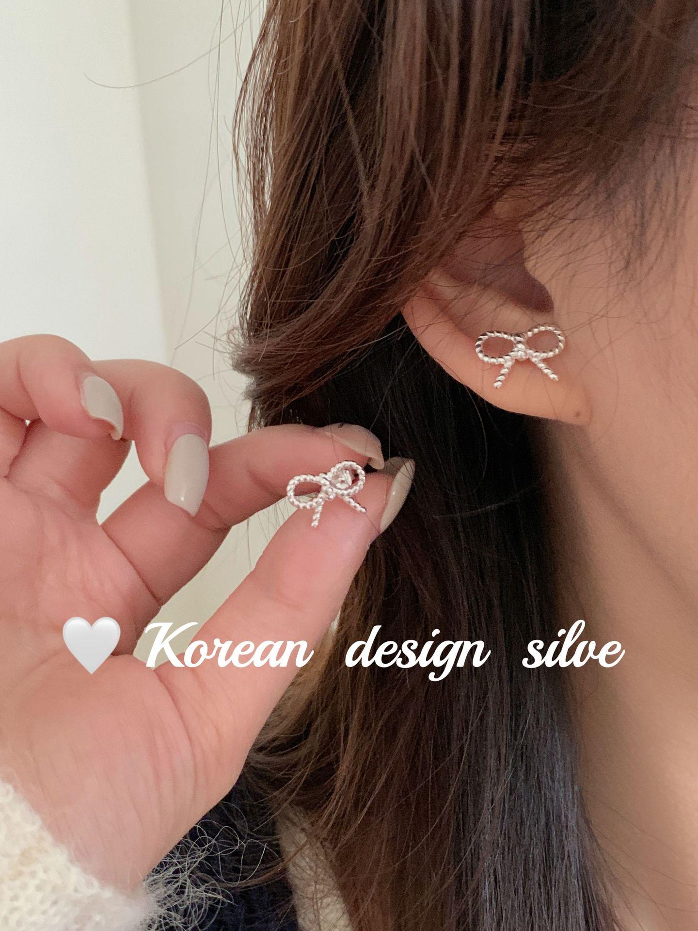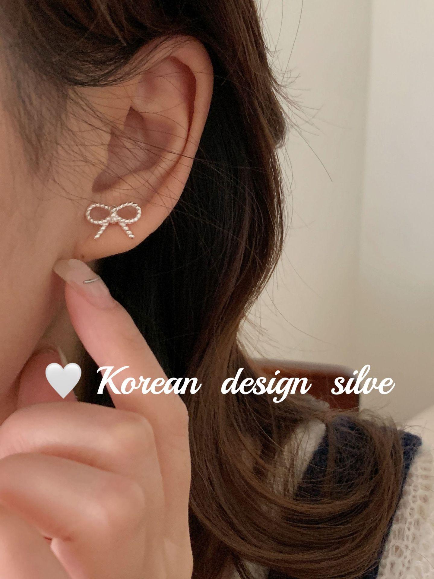 Pendientes de plata de ley S925 con diseño de lazo pequeño, estilo coreano, japonés, sencillo, versátiles y exquisitos.