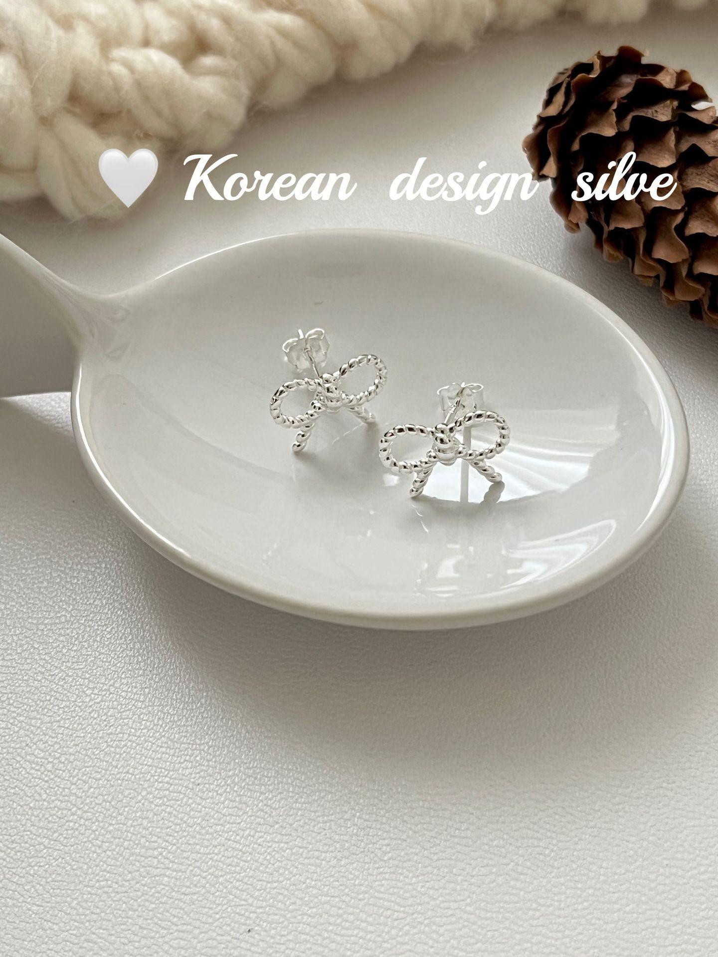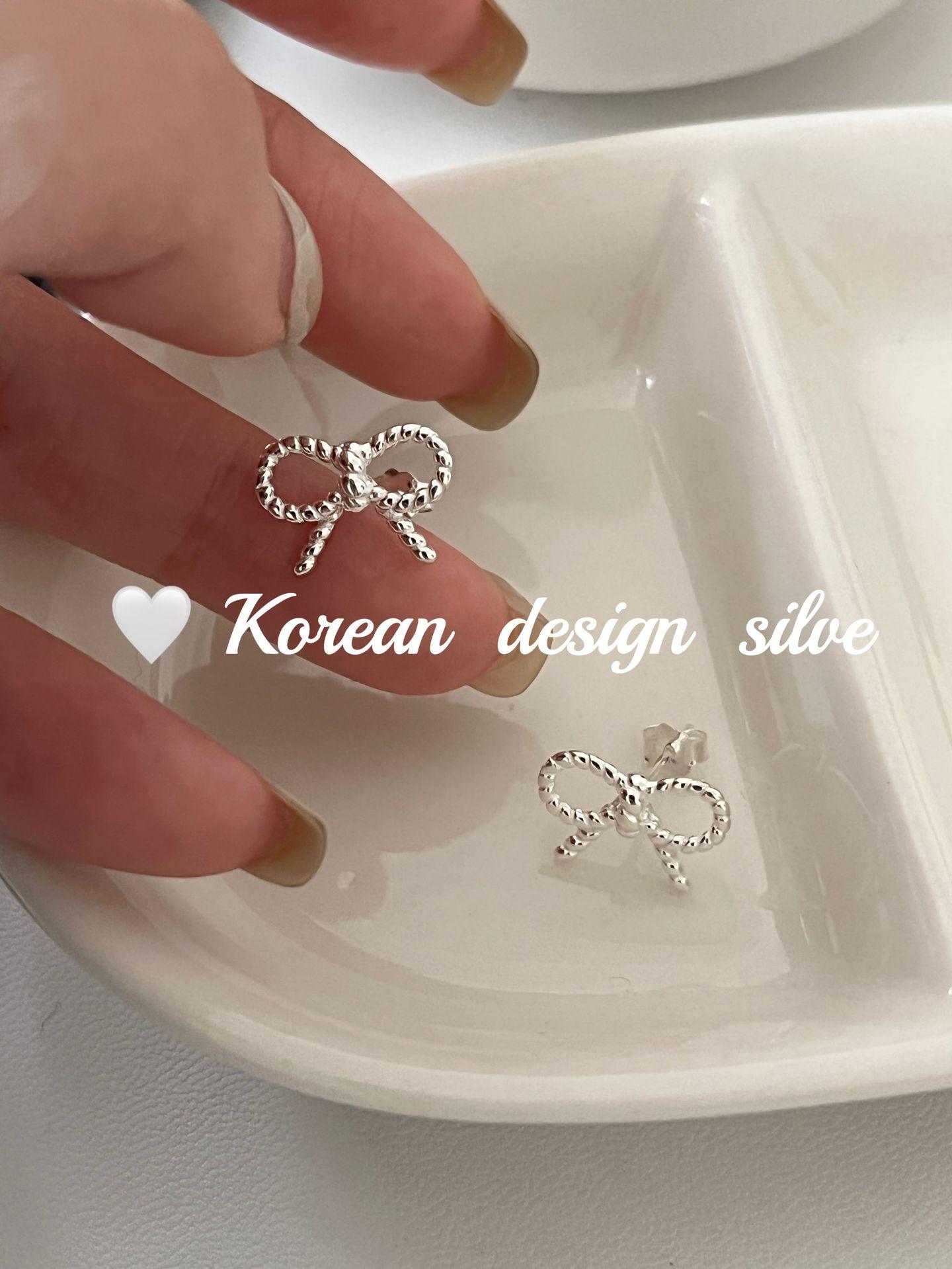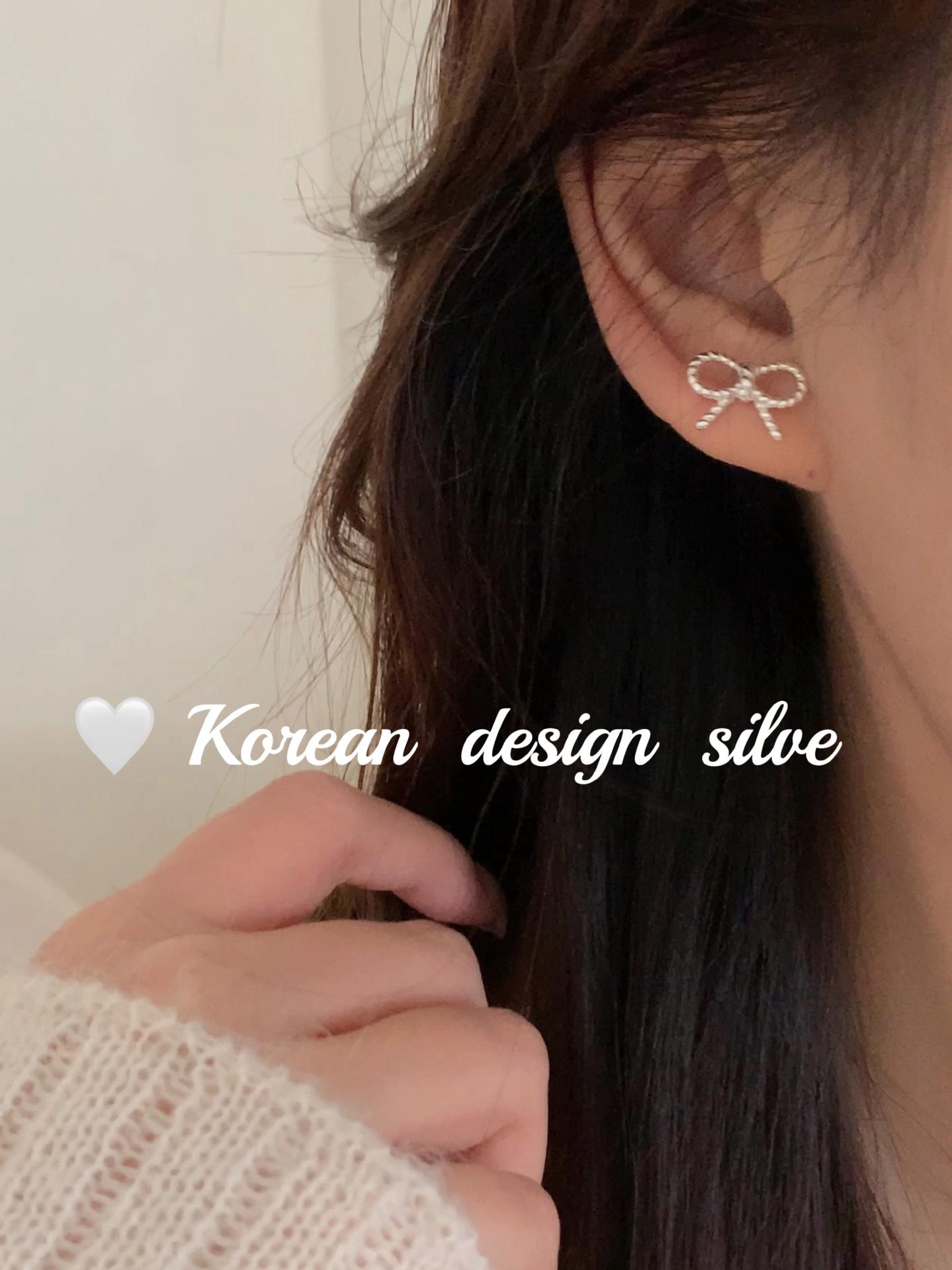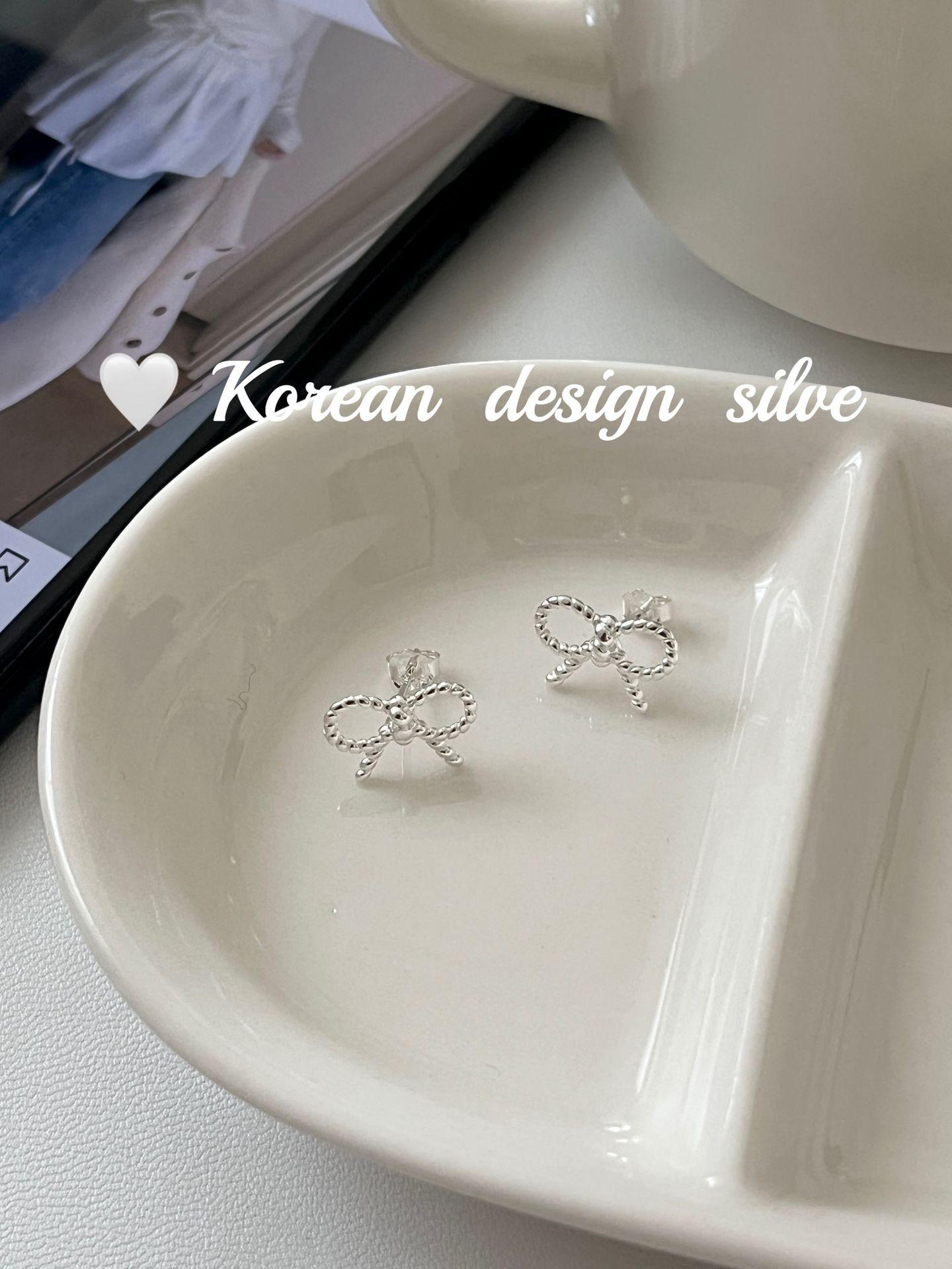Pendientes de plata de ley S925 con diseño de lazo pequeño, estilo coreano, japonés, sencillo, versátiles y exquisitos.