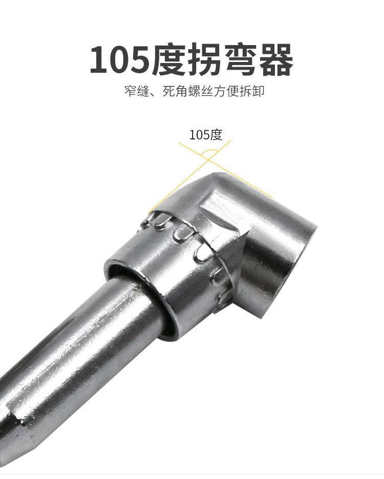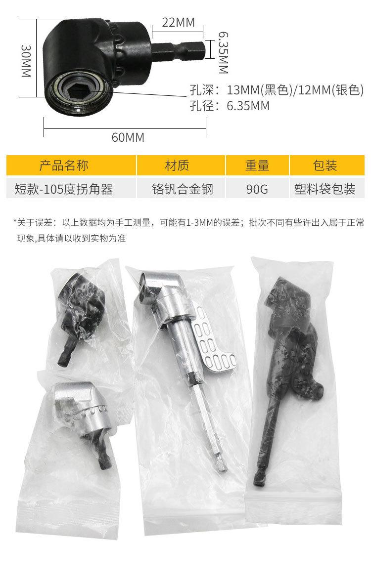 Varilla de extensión de manguito de esquina eléctrico giratorio de 105 grados, pieza de extensión, cabezal de lote, destornillador de giro de esquina, taladro eléctrico