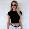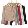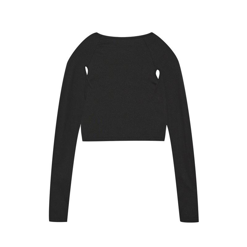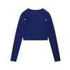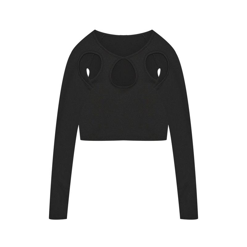 Camiseta corta de manga larga con cuello redondo y ombligo hueco, nueva oferta de ropa europea y americana para mujer, primavera y verano de 2024