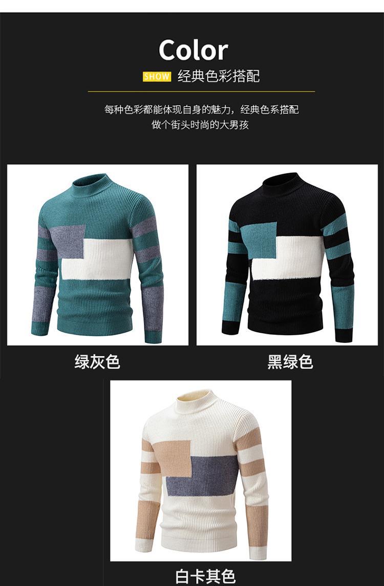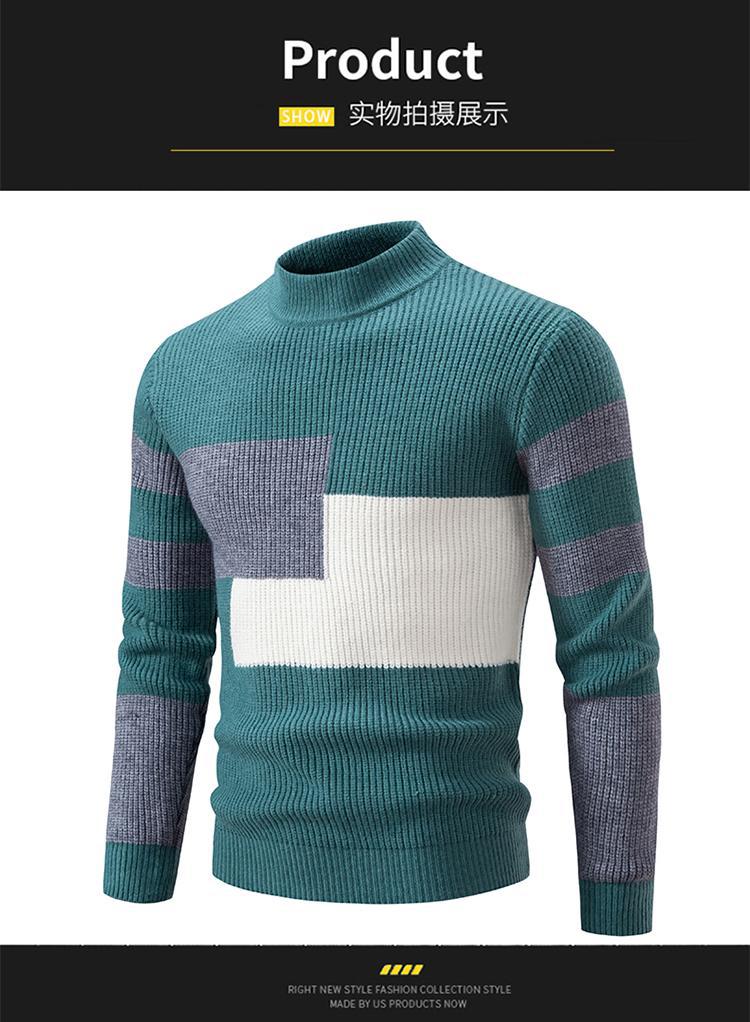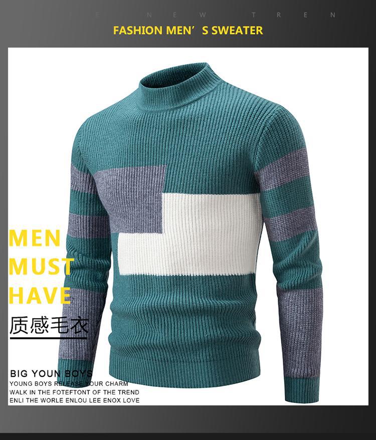 Punto de Punto para Hombre de Invierno Nuevo 2025 Transfronterizo Combinación de Colores a la Moda Estilo Coreano Medio Cuello Alto Punto de Punto para Fondo Punto de Punto de Fondo Punto de Punto