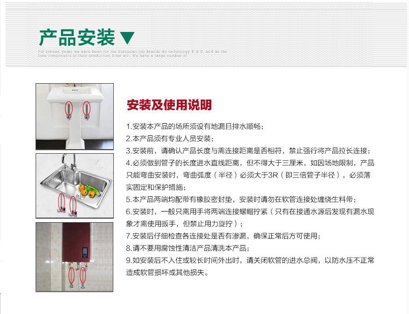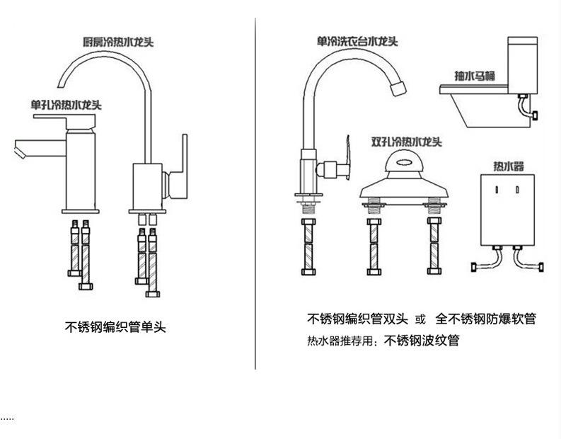 Uso del producto: entrada de agua a lavabos, inodoros, calentadores de agua, dispensadores de agua, purificadores de agua y diversos artículos sanitarios.