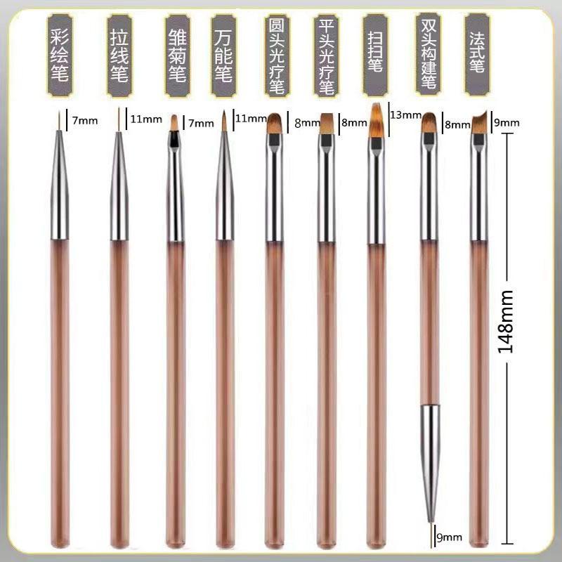 Juego de 9 pinceles para uñas de estilo japonés, bolígrafo de dibujo de color muy fino, bolígrafo de terapia de luz, bolígrafo de línea de tracción, herramientas profesionales para tienda de uñas