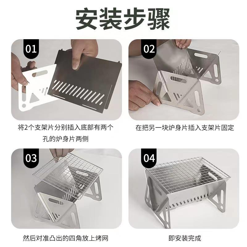 Estufa de leña multiusos plegable ultraligera para exteriores, tipo tarjeta, de acero inoxidable, para barbacoa, fácil de transportar y con recinto calefactor.