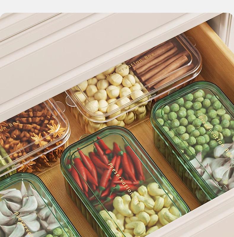 Transparent color-double compartment with cover [1 pack], Translucent green-double grid with cover [1 pack], O...