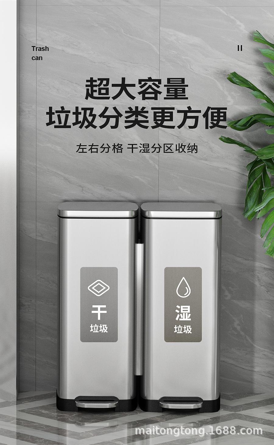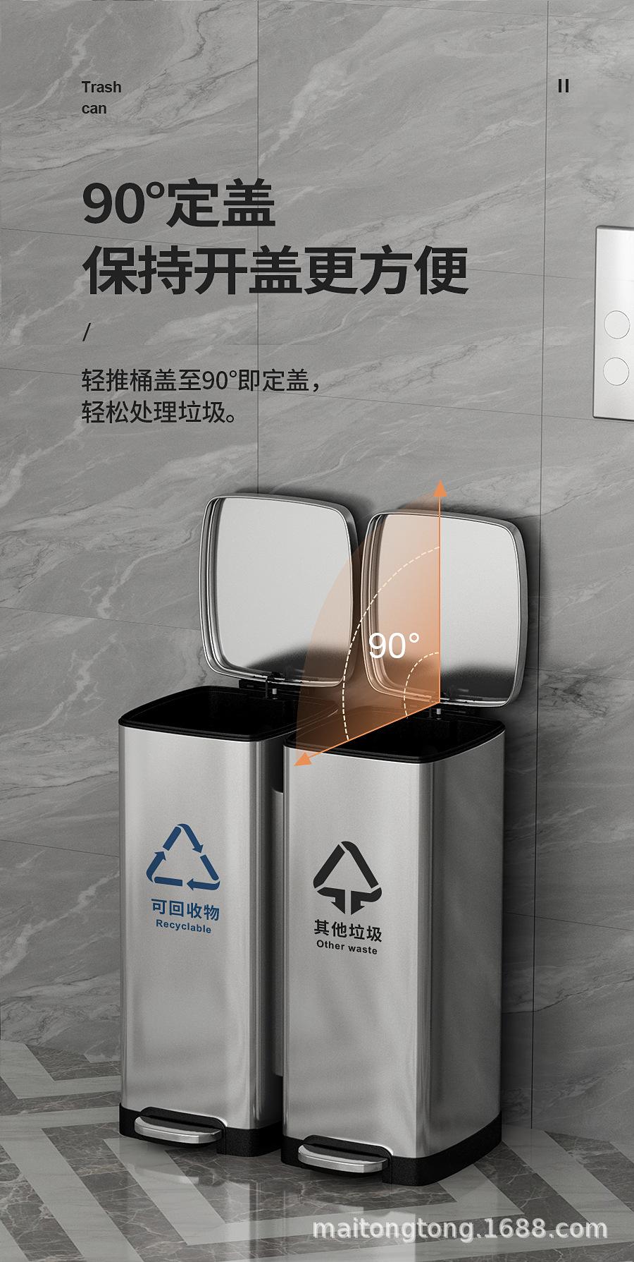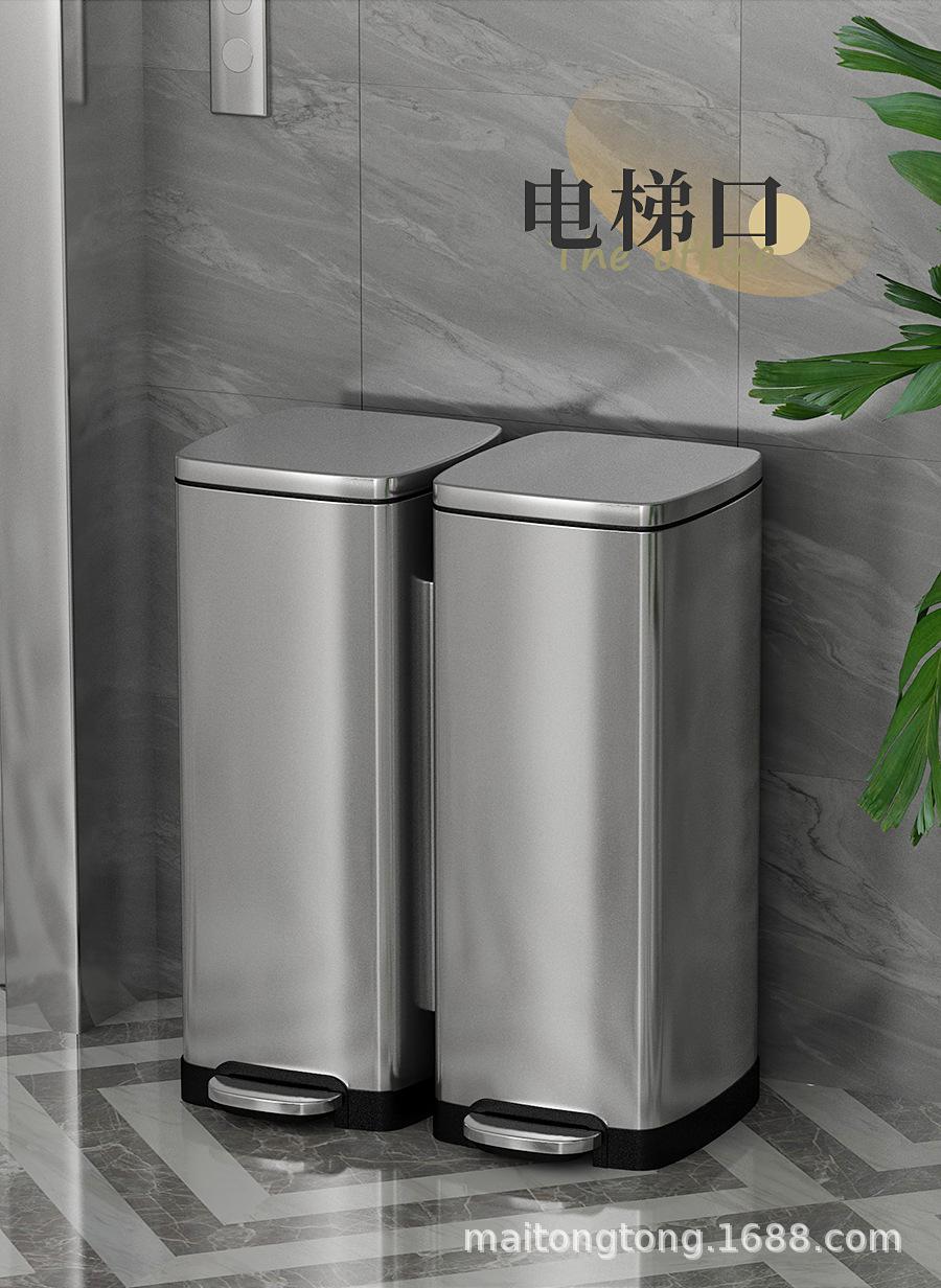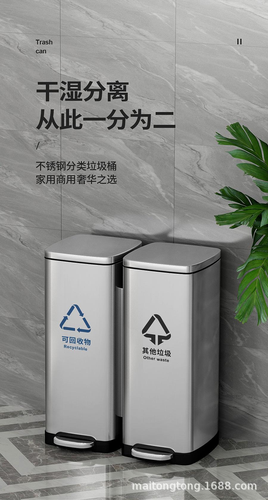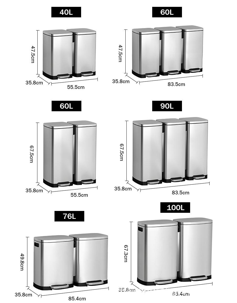 Cubo de basura de acero inoxidable con tapa y doble cubo para interiores, vestíbulos, oficinas, comercios, clasificación doble.
