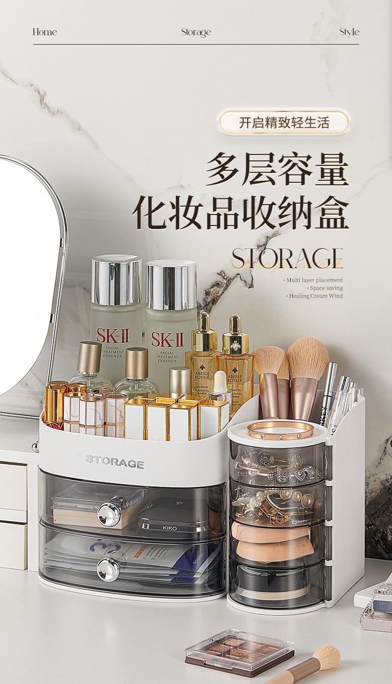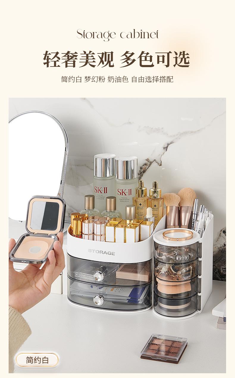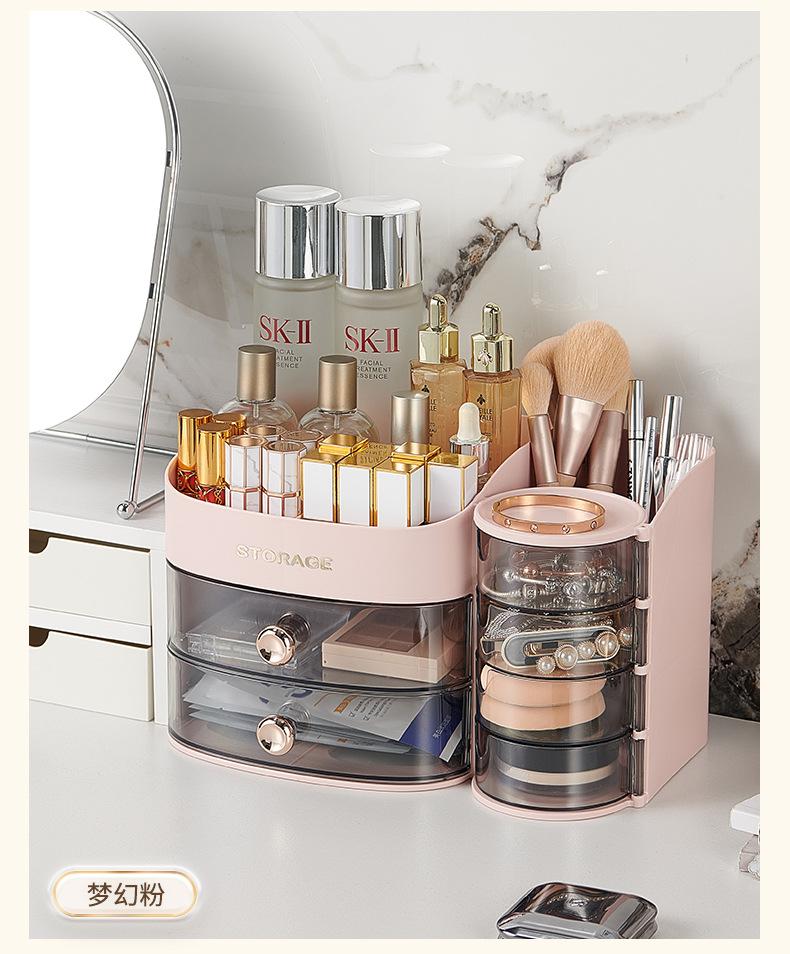 Caja de almacenamiento para cosméticos, tocador, productos para el cuidado de la piel, estante de almacenamiento para lápiz labial, brocha de maquillaje, escritorio, gran capacidad, caja de almacenamiento a prueba de polvo