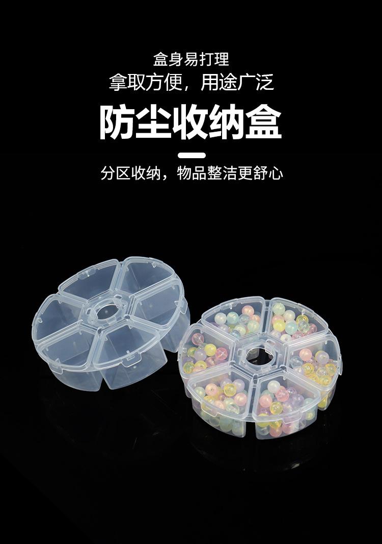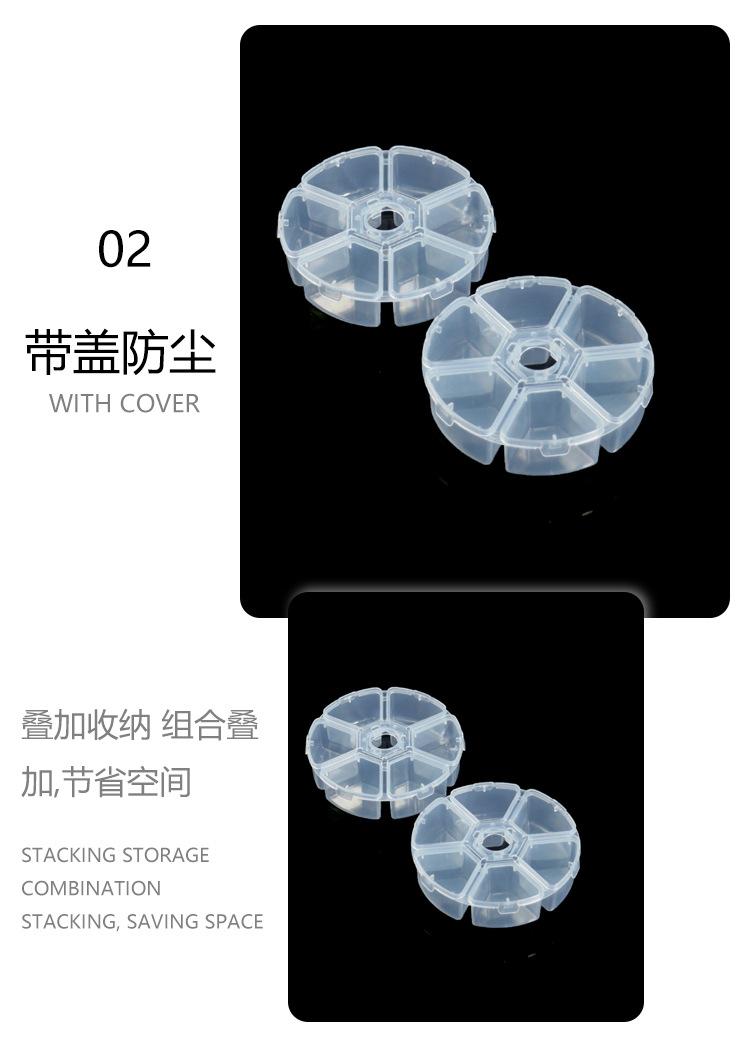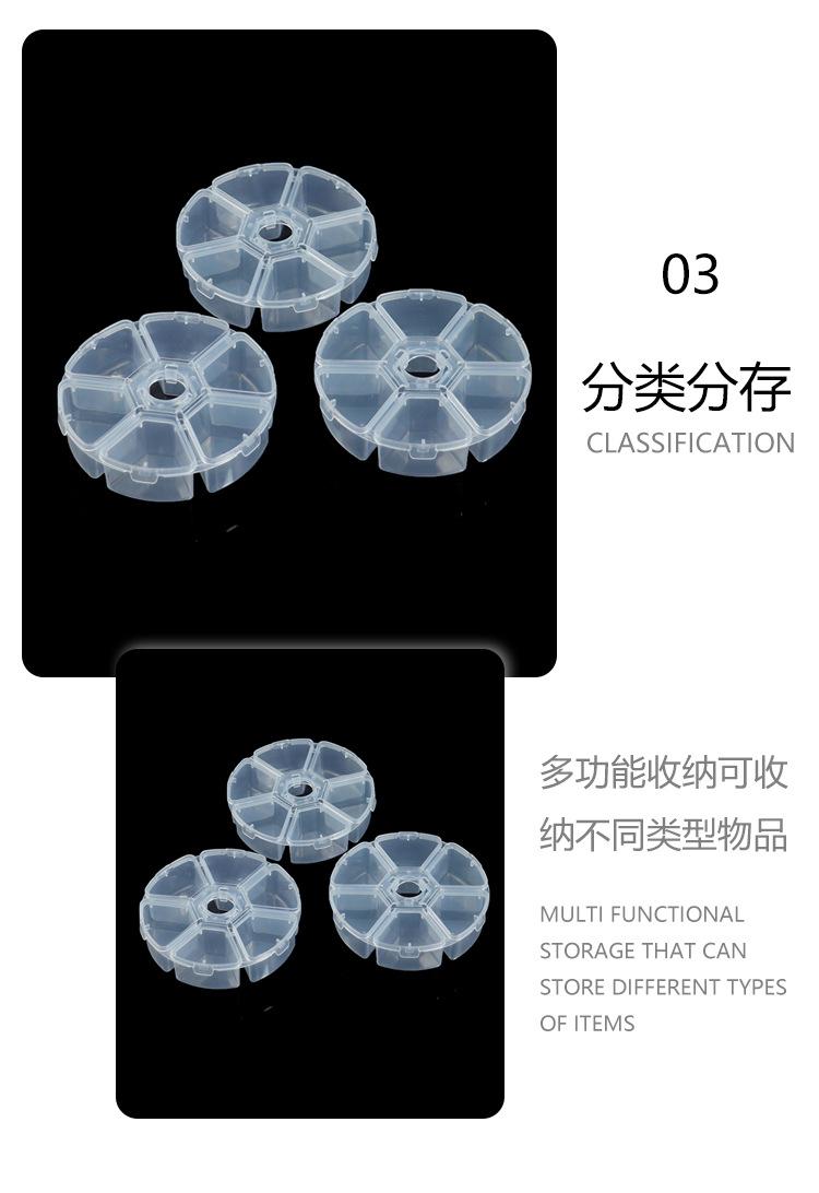Caja de plástico redonda creativa con 6 cuentas, caja de almacenamiento de escritorio, caja redonda de plástico para bricolaje, caja de joyas con diamantes para teléfono móvil, caja de medicamentos