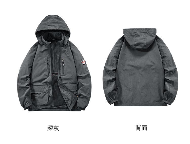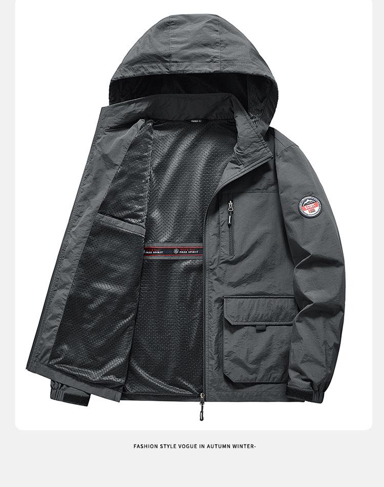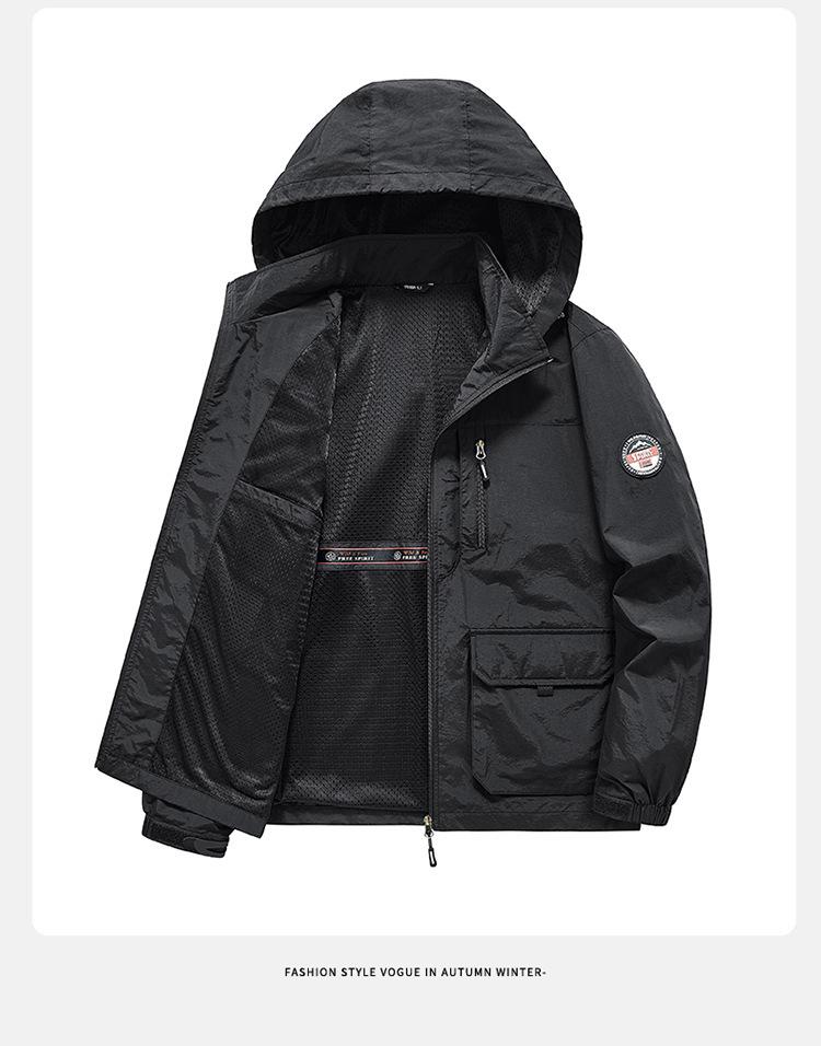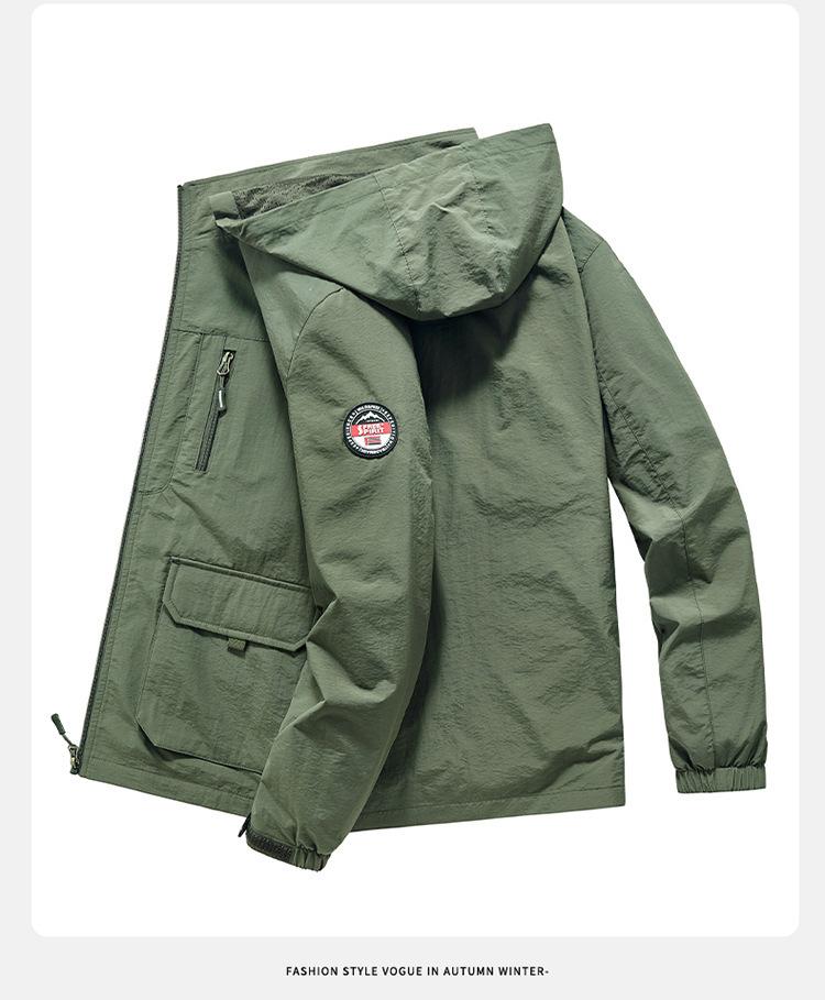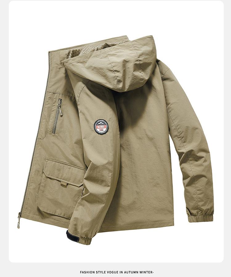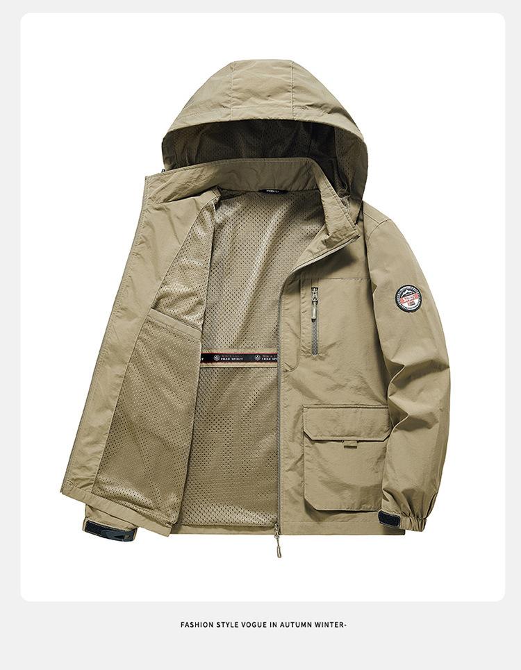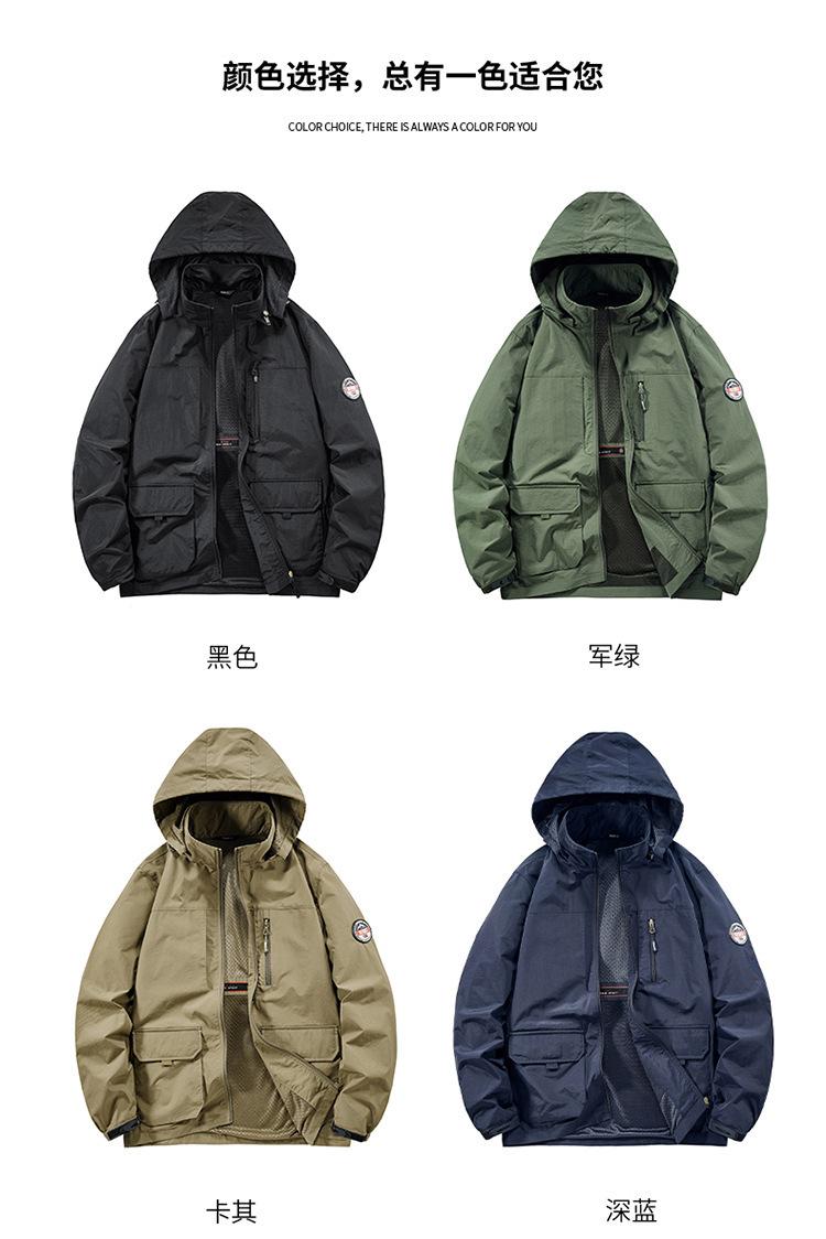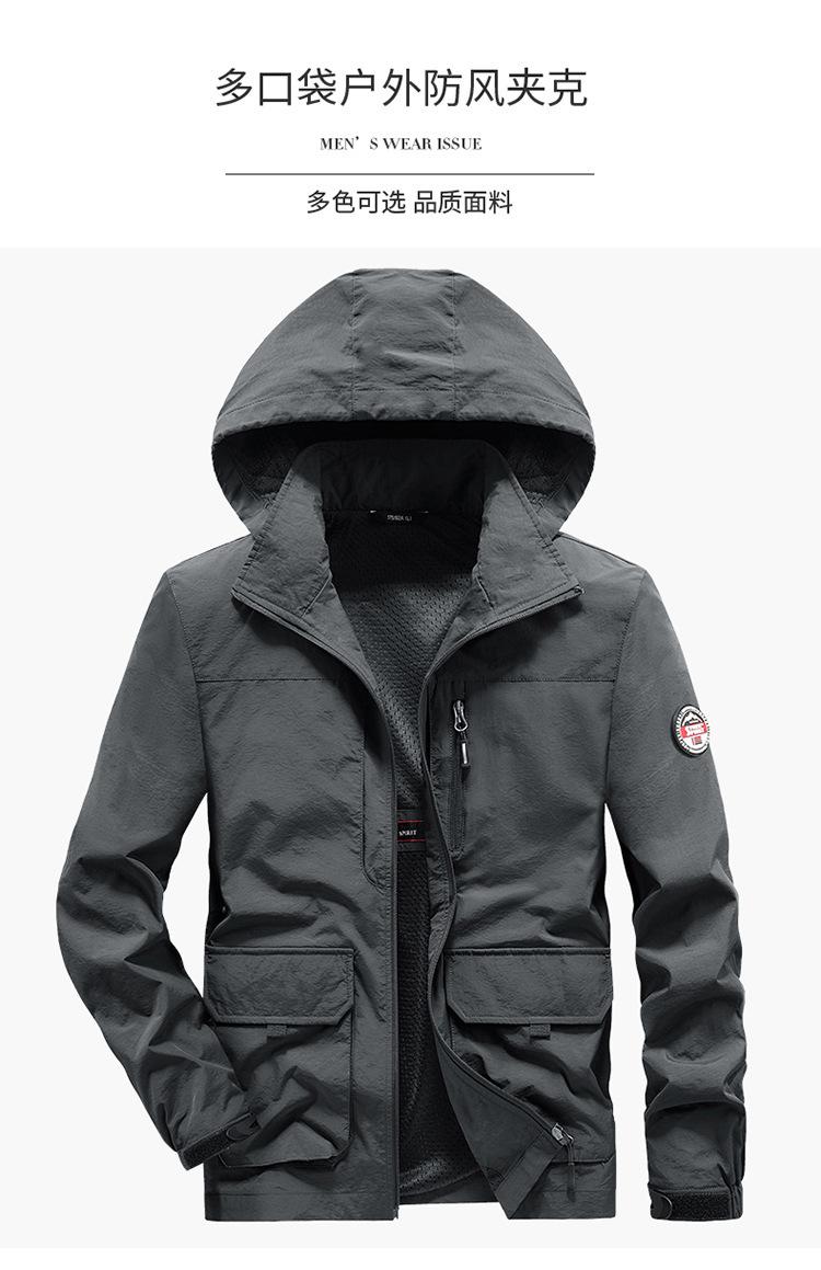 Chaqueta con capucha de primavera y otoño para hombre, multibolsillos, resistente al viento, transpirable, para exteriores, para escalada en montaña, deportiva, informal, 8812