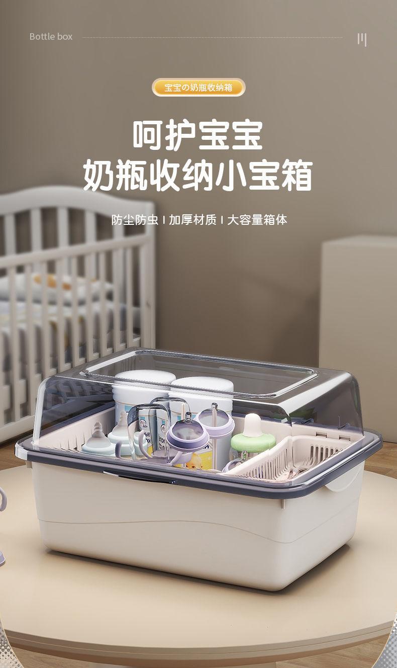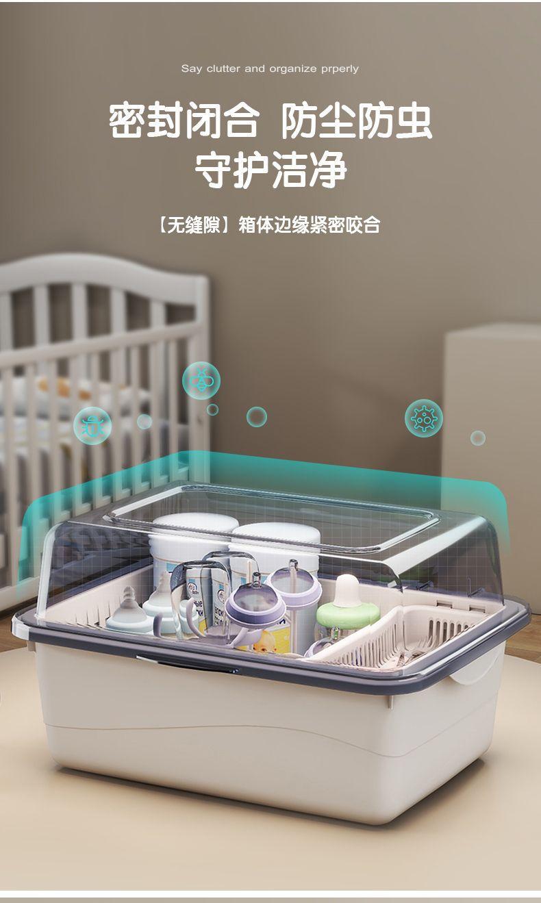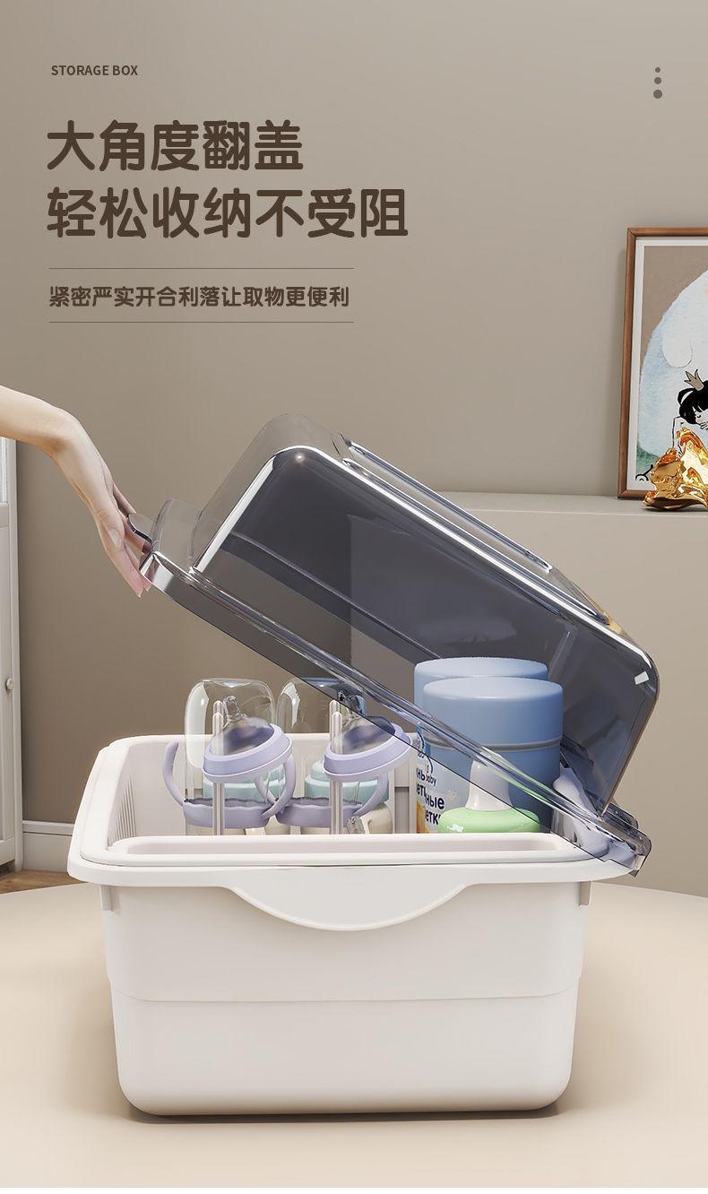 Caja de almacenamiento para biberones, suministros para bebés, escurridor a prueba de polvo con tapa, vajilla para bebés, juguetes, caja de almacenamiento de alimentos complementarios para recién nacidos