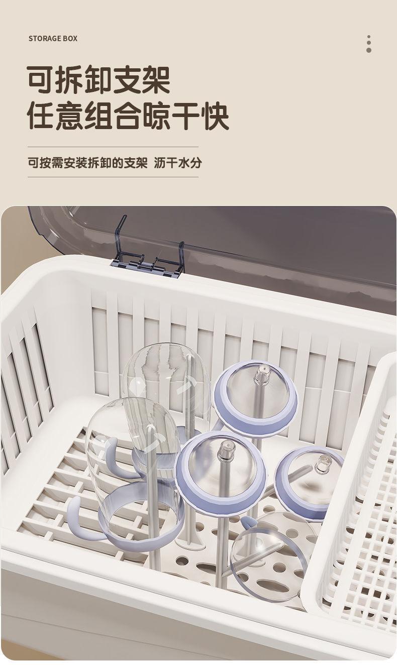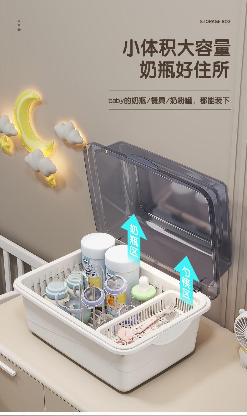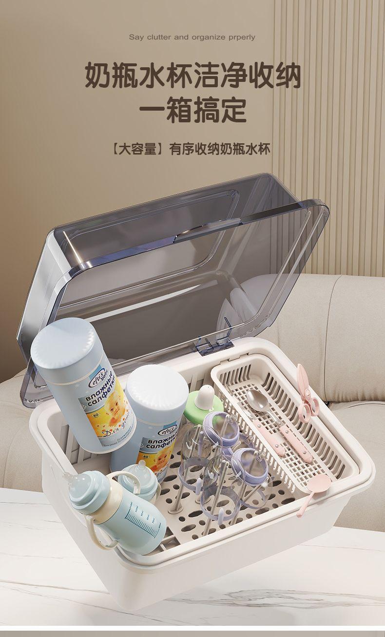 Caja de almacenamiento para biberones, suministros para bebés, escurridor a prueba de polvo con tapa, vajilla para bebés, juguetes, caja de almacenamiento de alimentos complementarios para recién nacidos