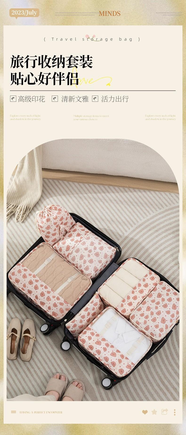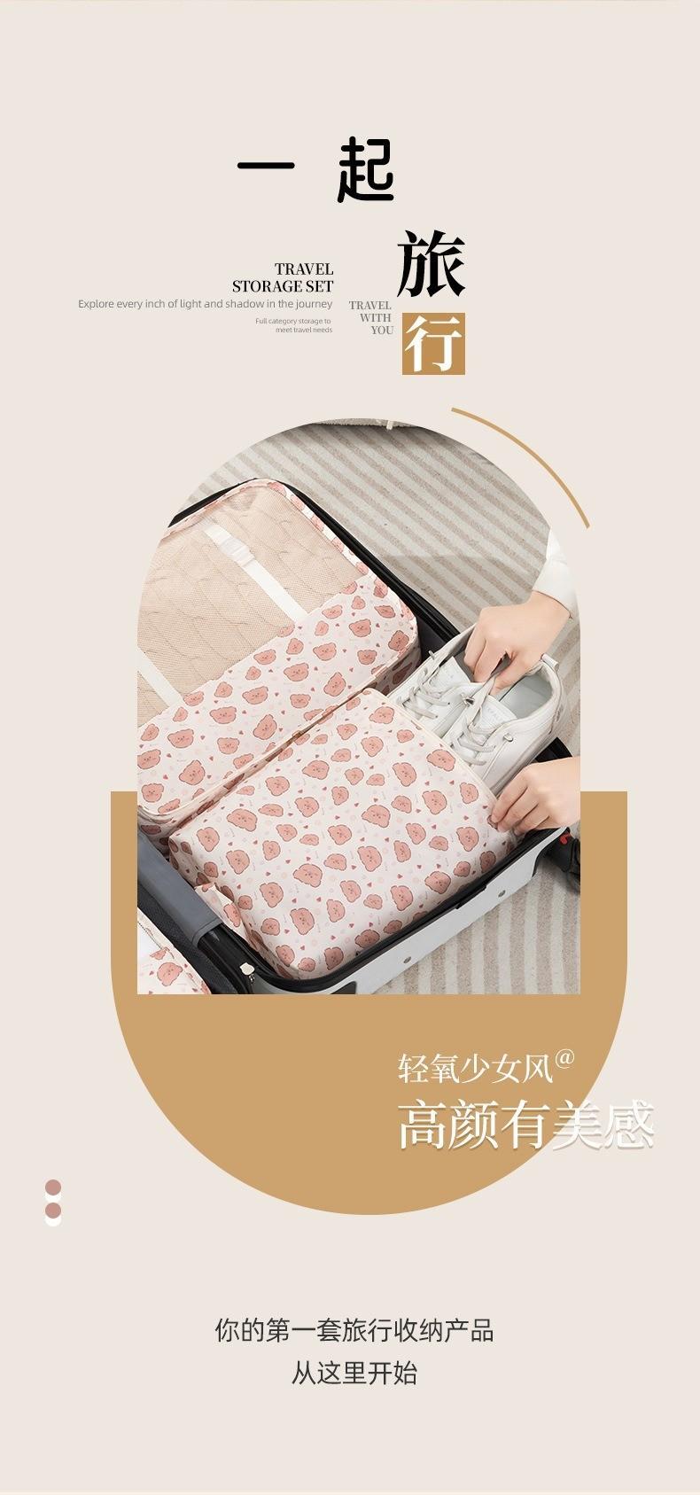 Bolsa de Almacenamiento de Viaje con Estampado de Oso de Dibujos Animados, Set para Viaje de Negocios, Bolsa de Clasificación de Ropa para Equipaje de Siete Piezas