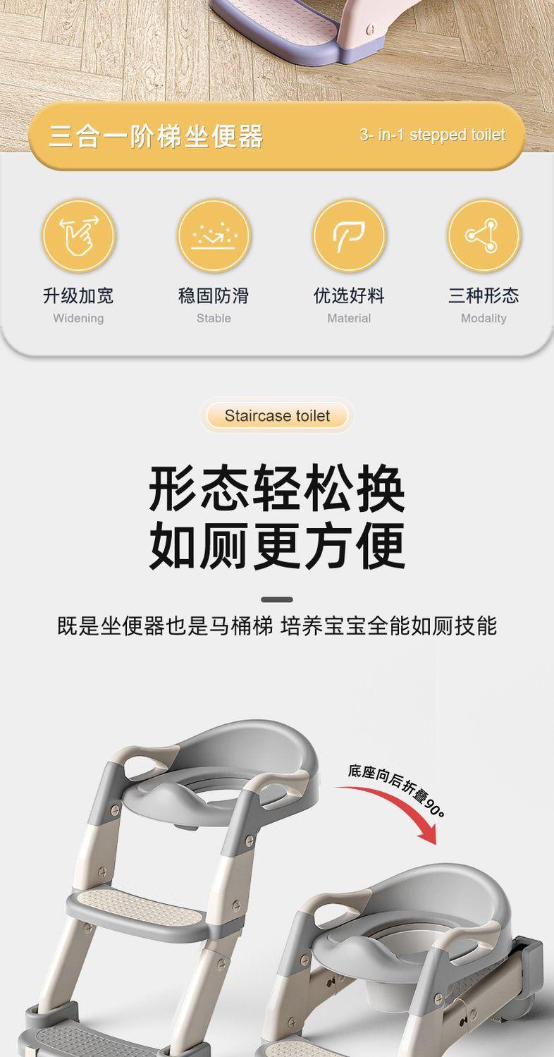 Nuevo inodoro para bebé tres en uno ajustable, inodoro con escalera para bebé, inodoro con escalera para niños