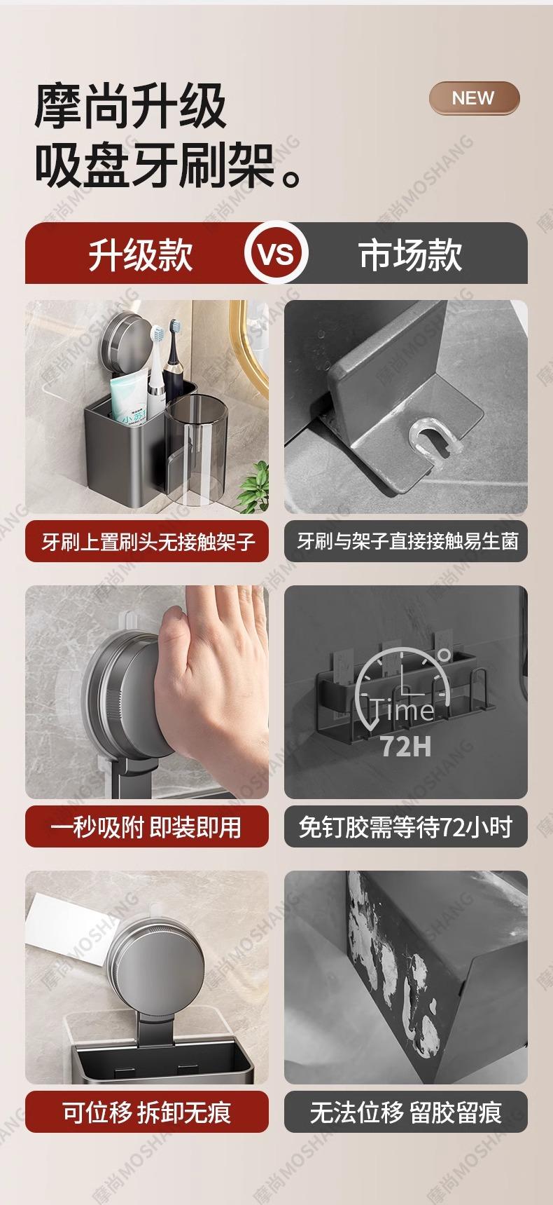 Widened suction cup toothbrush holder·with cup (gun gray/1 pack)