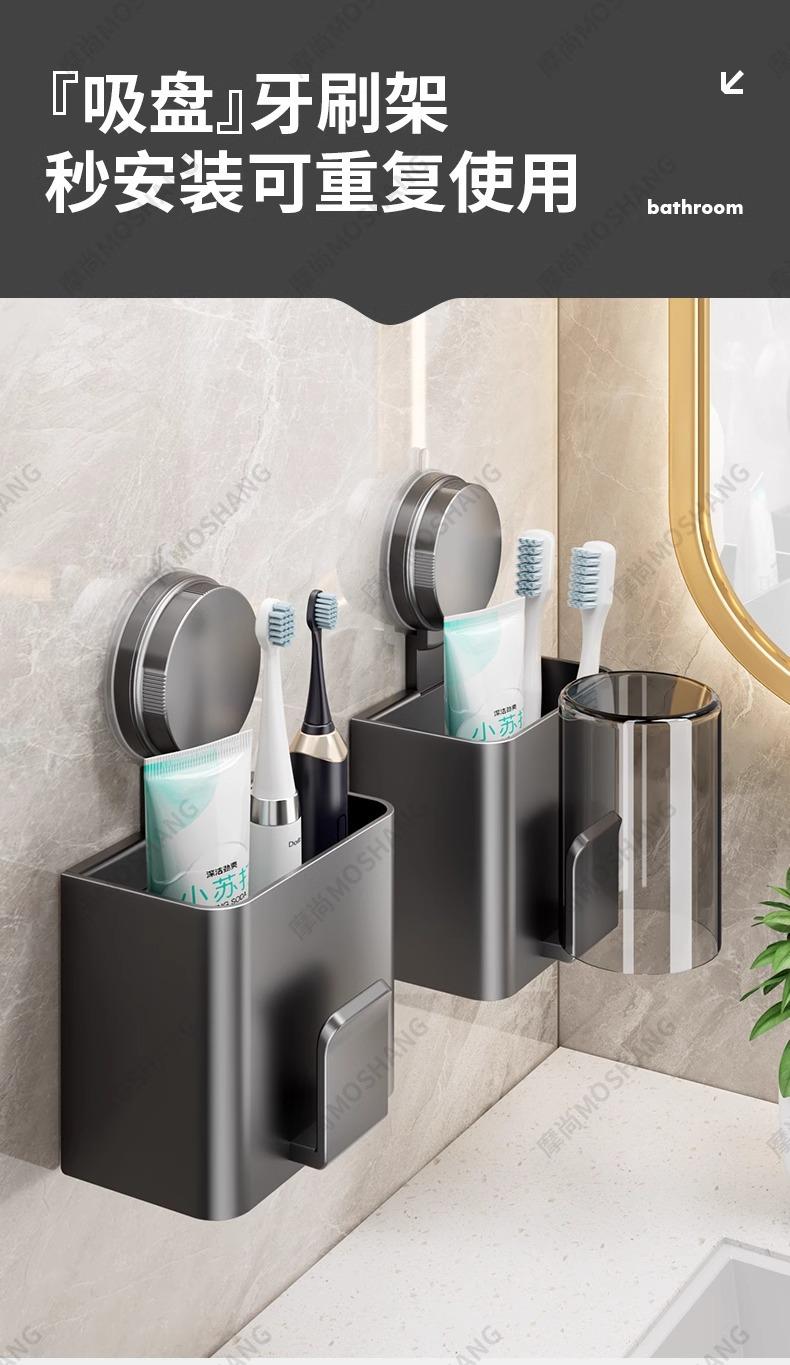 Widened suction cup toothbrush holder·with cup (gun gray/2 pieces)