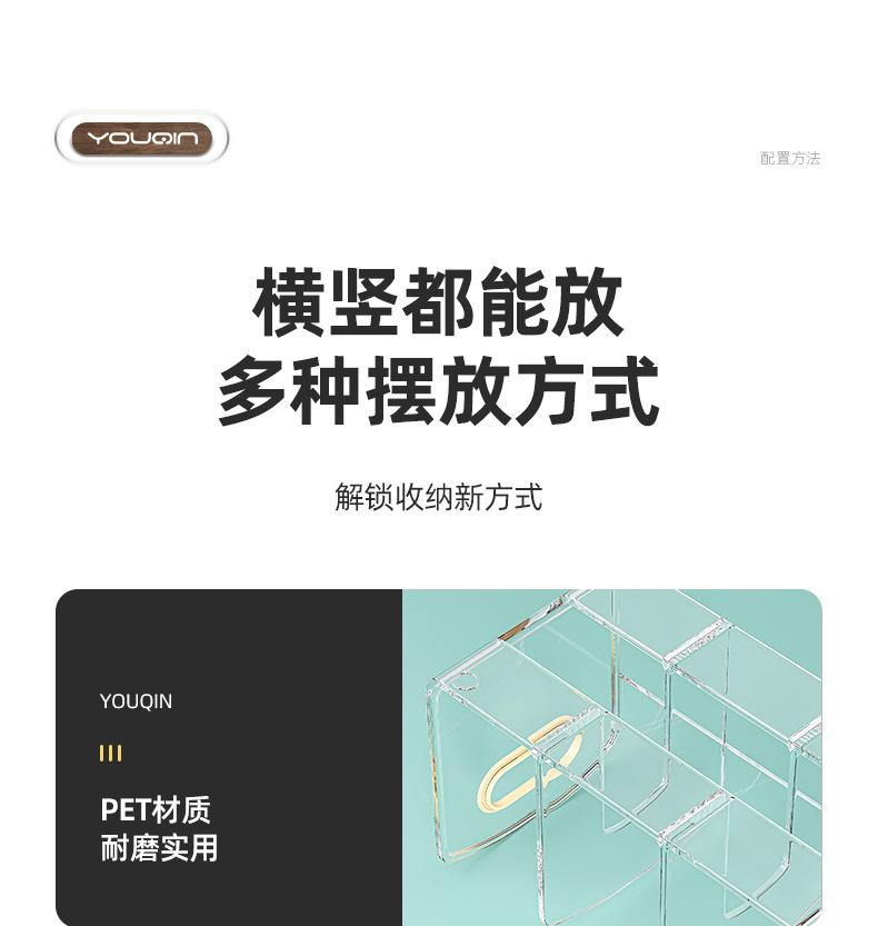 Three compartments transparent [comes with handle/extra thick and resistant to falling], Four transparent grid...
