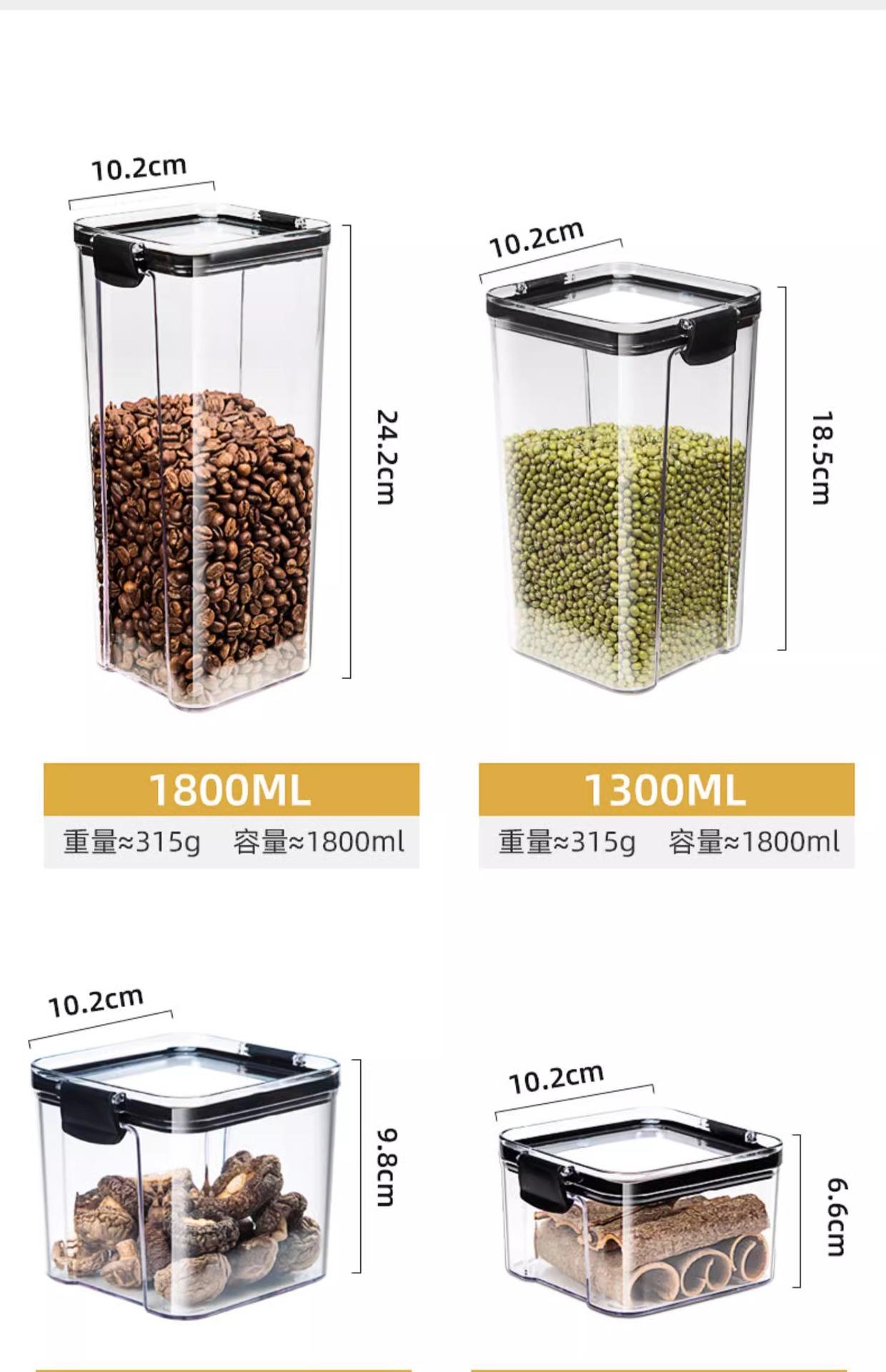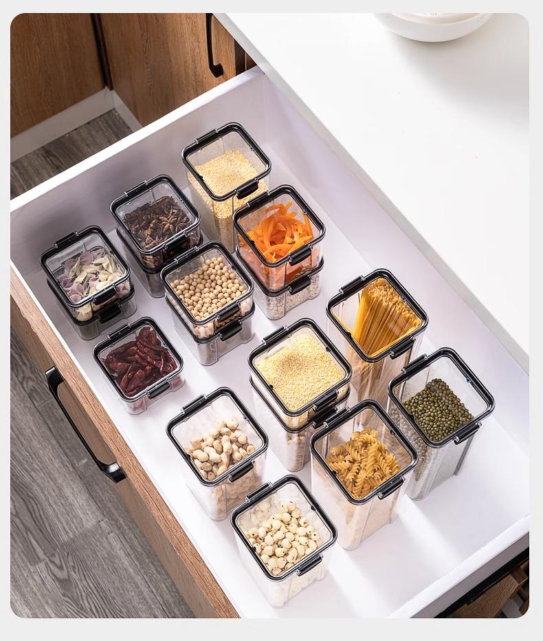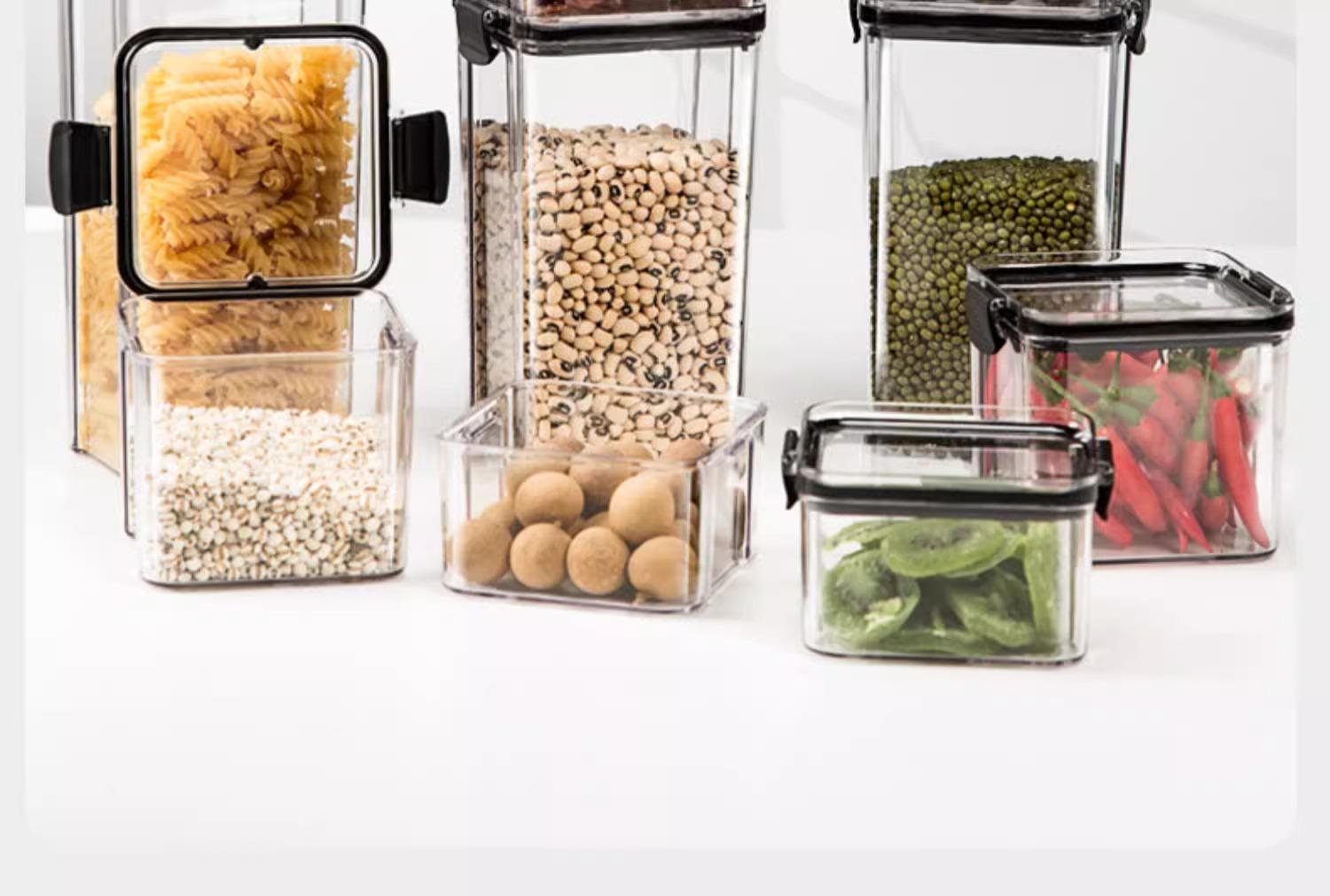 Frasco sellado de plástico transparente para almacenar granos, alimentos secos, aperitivos y té.