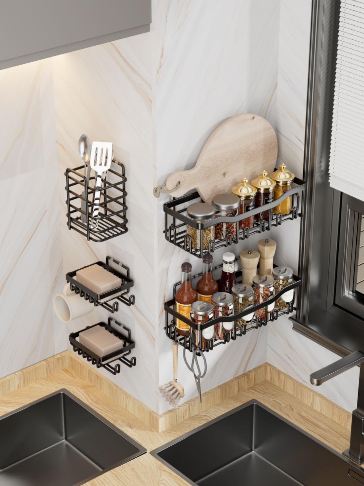 Estante de baño de hierro sin perforaciones de Amazon, estante de almacenamiento para baño, jabón de tocador, artículos de tocador, colgante de pared