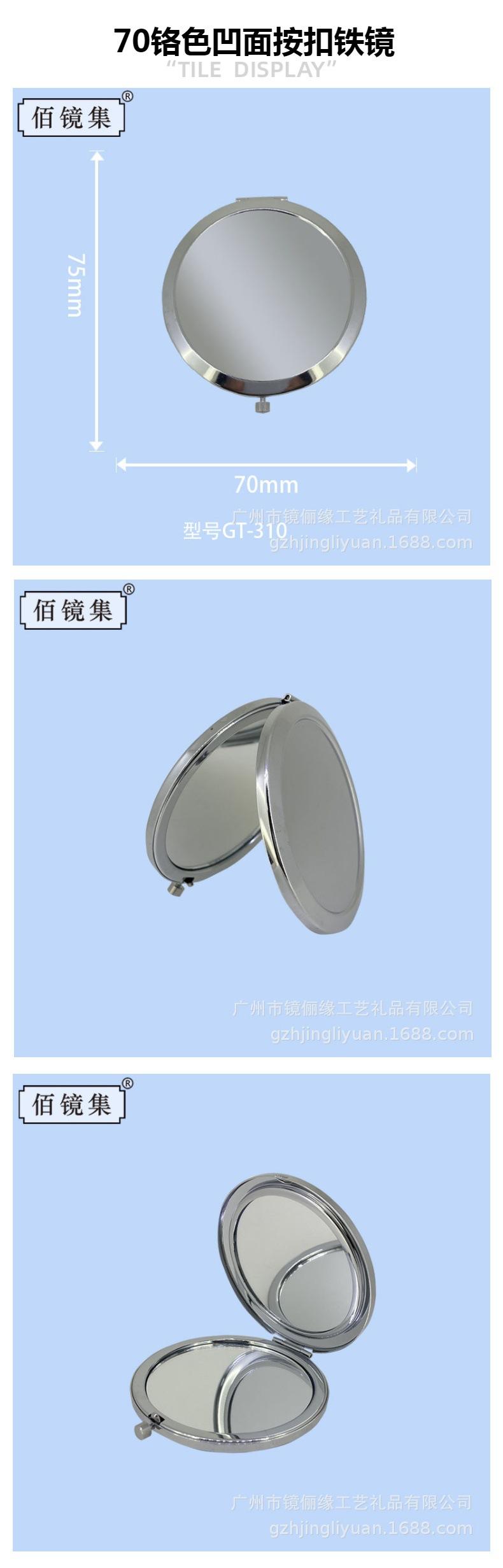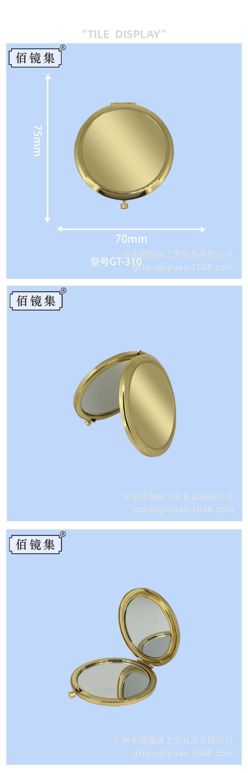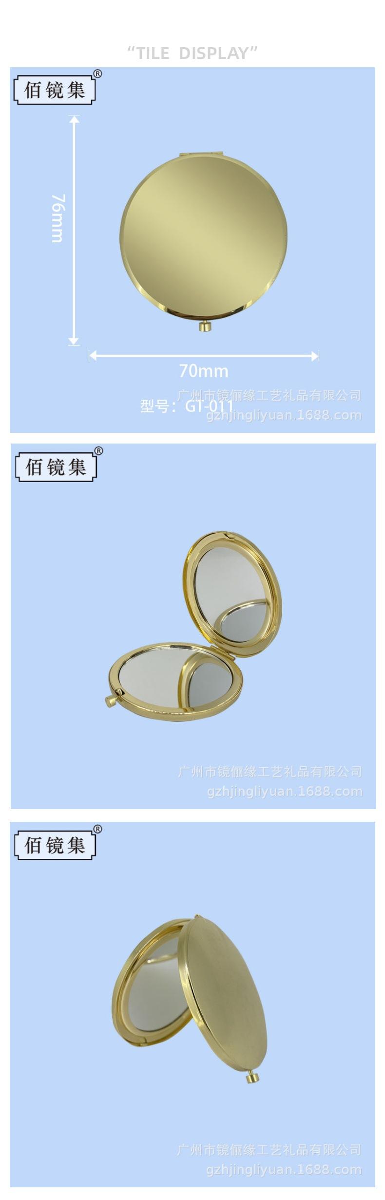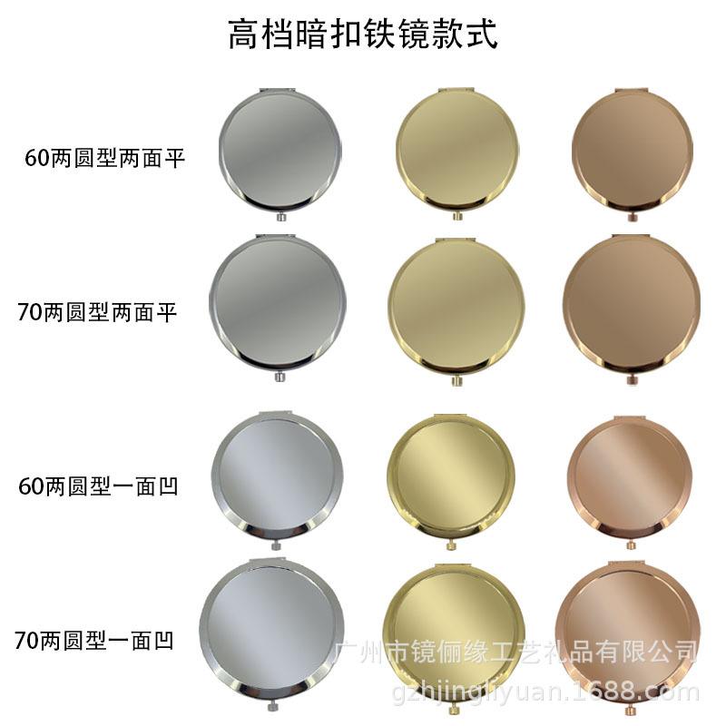 Espejo plano de hierro con broche de presión de doble cara dorado imitación de 70 mm: