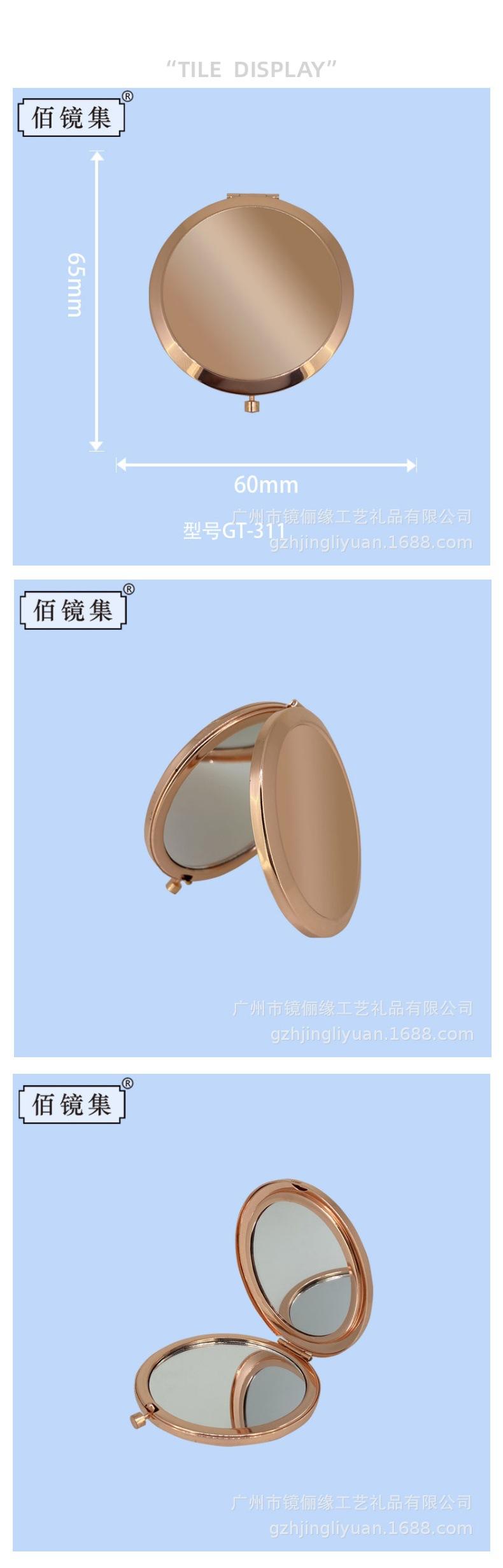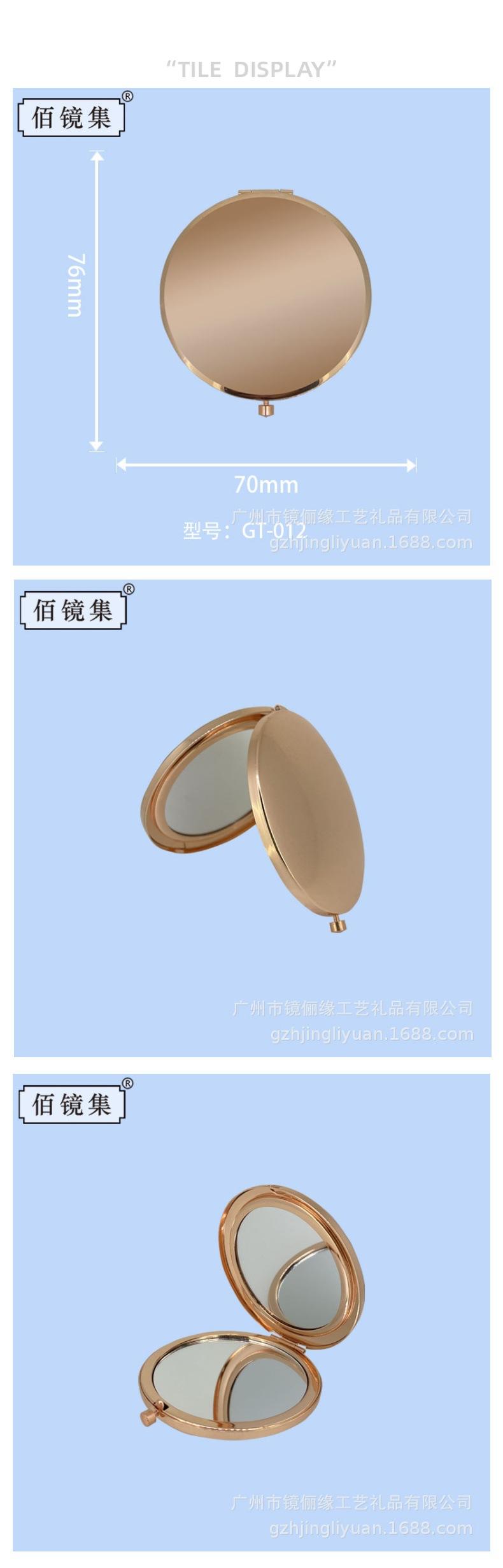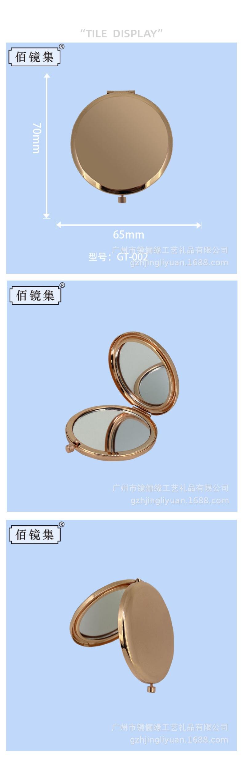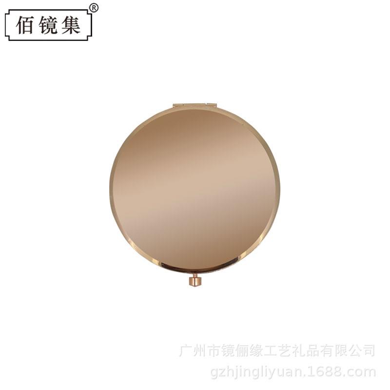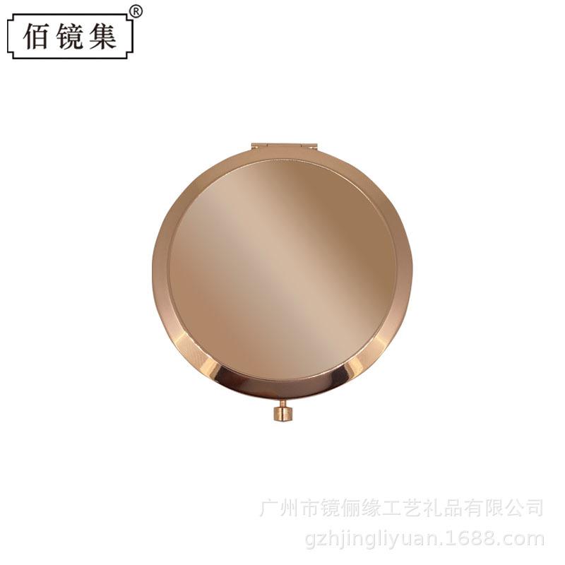 Espejo de bolsillo cóncavo de hierro a presión de oro rosa de 70 mm: