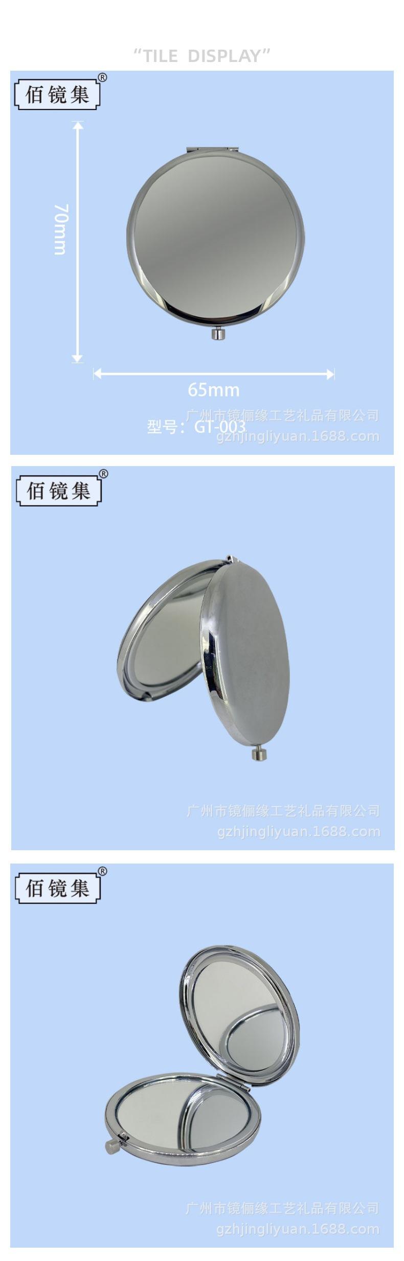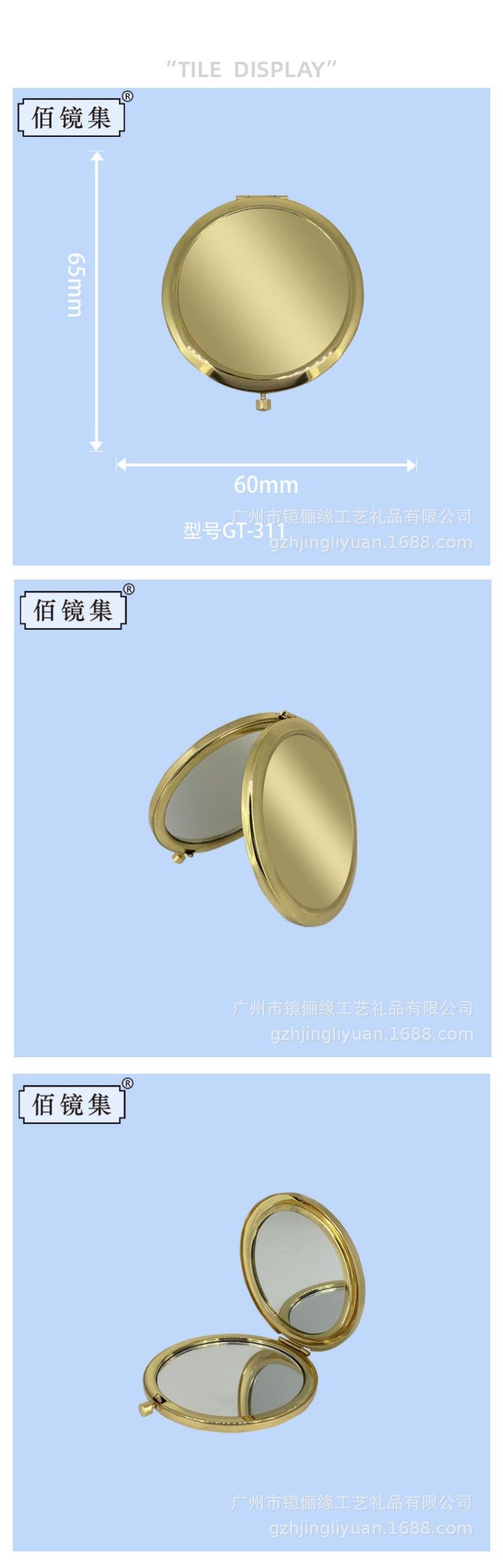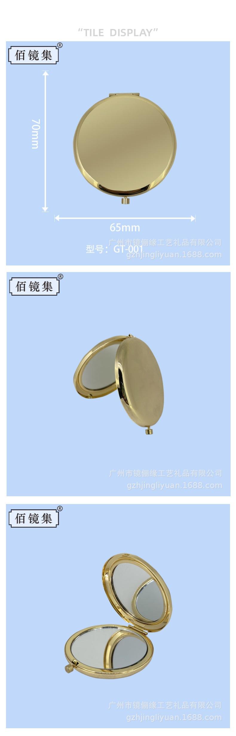 Espejo plano de hierro con broche de presión de doble cara dorado imitación de 65 mm: