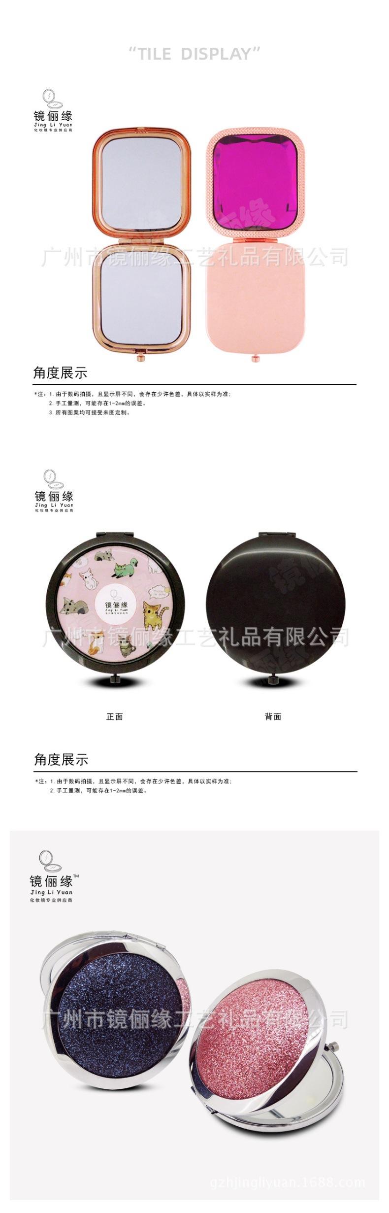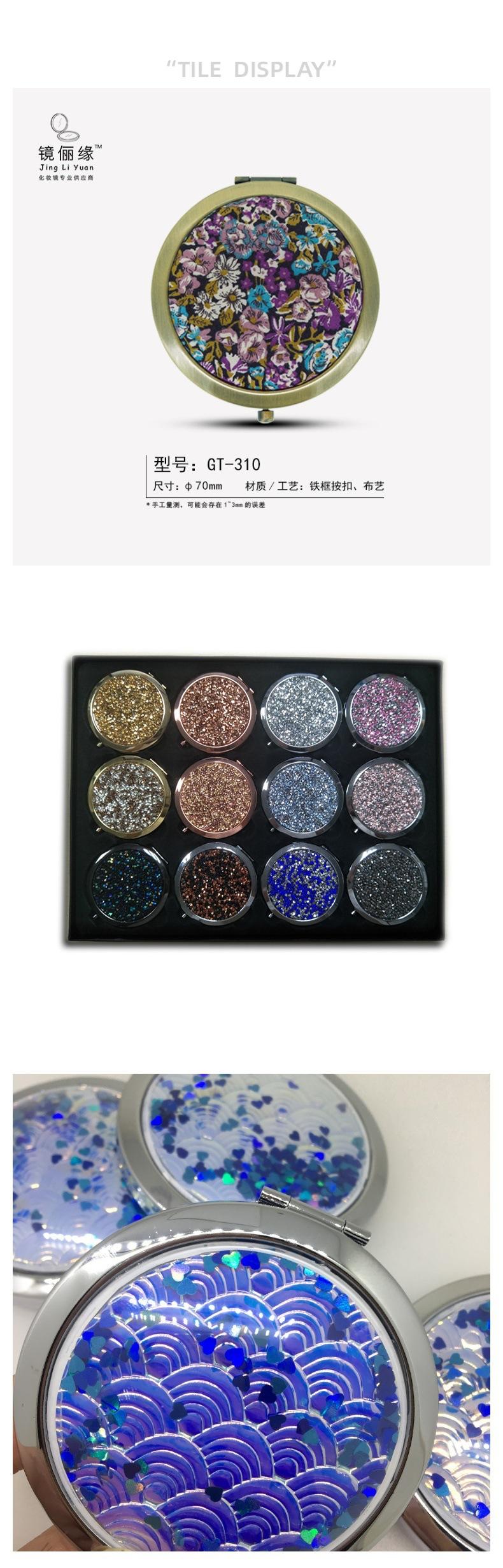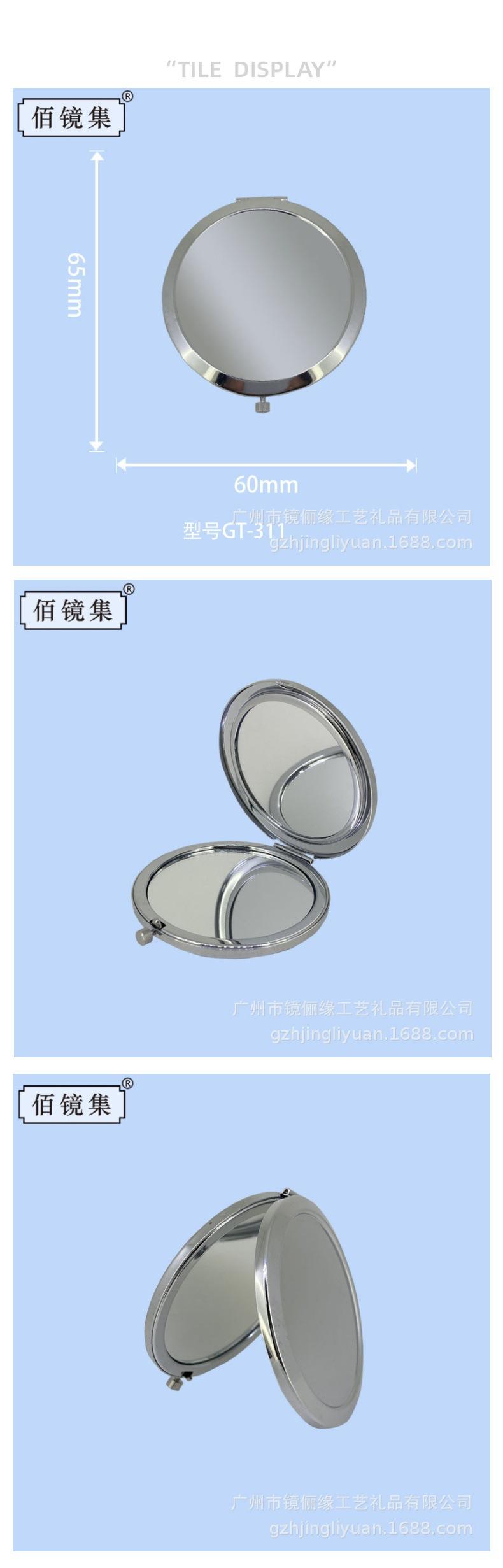 Espejo plano de hierro con broche de presión de doble cara dorado imitación de 65 mm: