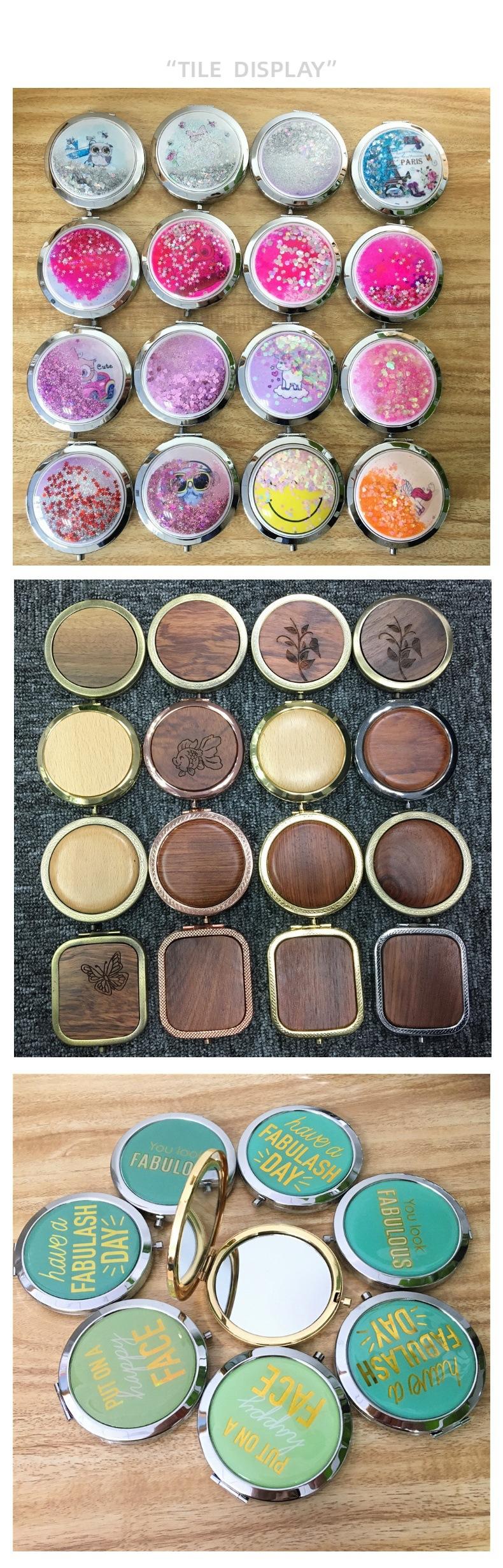 Espejo plano de presión de doble cara de oro rosa de 65 mm: