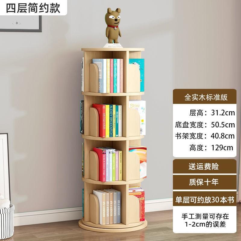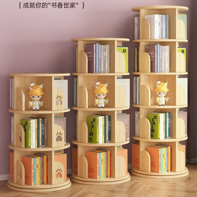 Librero Giratorio de Madera Maciza 360 grados Estantería Simple para Sala de Estar Ahorro de Espacio Estante de Almacenamiento para el Hogar para Niños Estante de Piso para Libros de Imágenes
