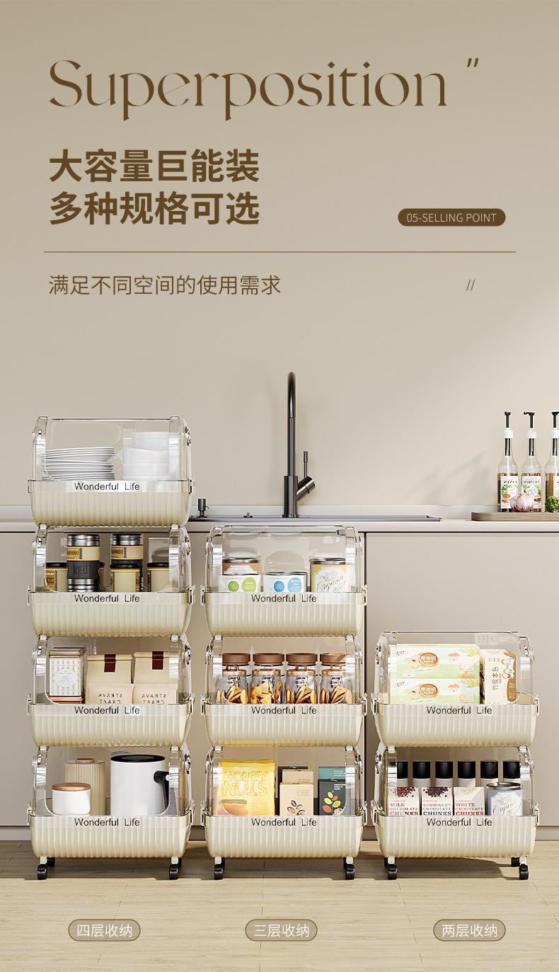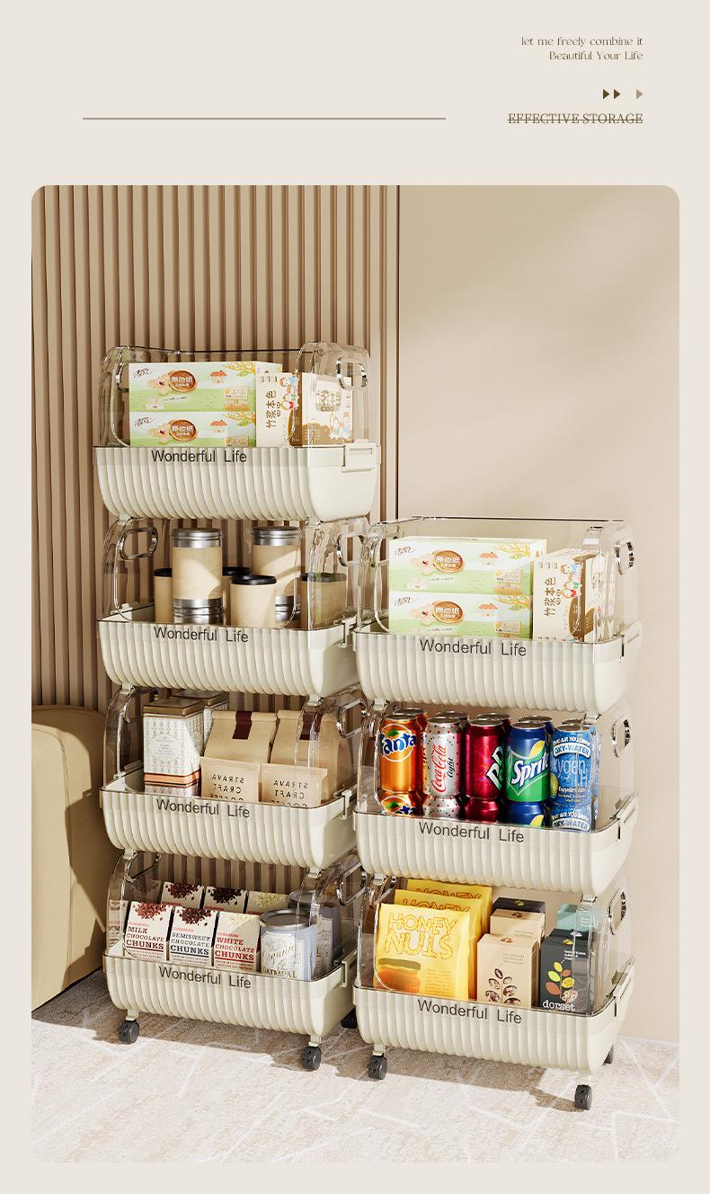 Estante de almacenamiento para refrigerios domésticos, estante de almacenamiento para cocina y sala de estar, estante de almacenamiento multifuncional de piso, extraíble, de múltiples capas