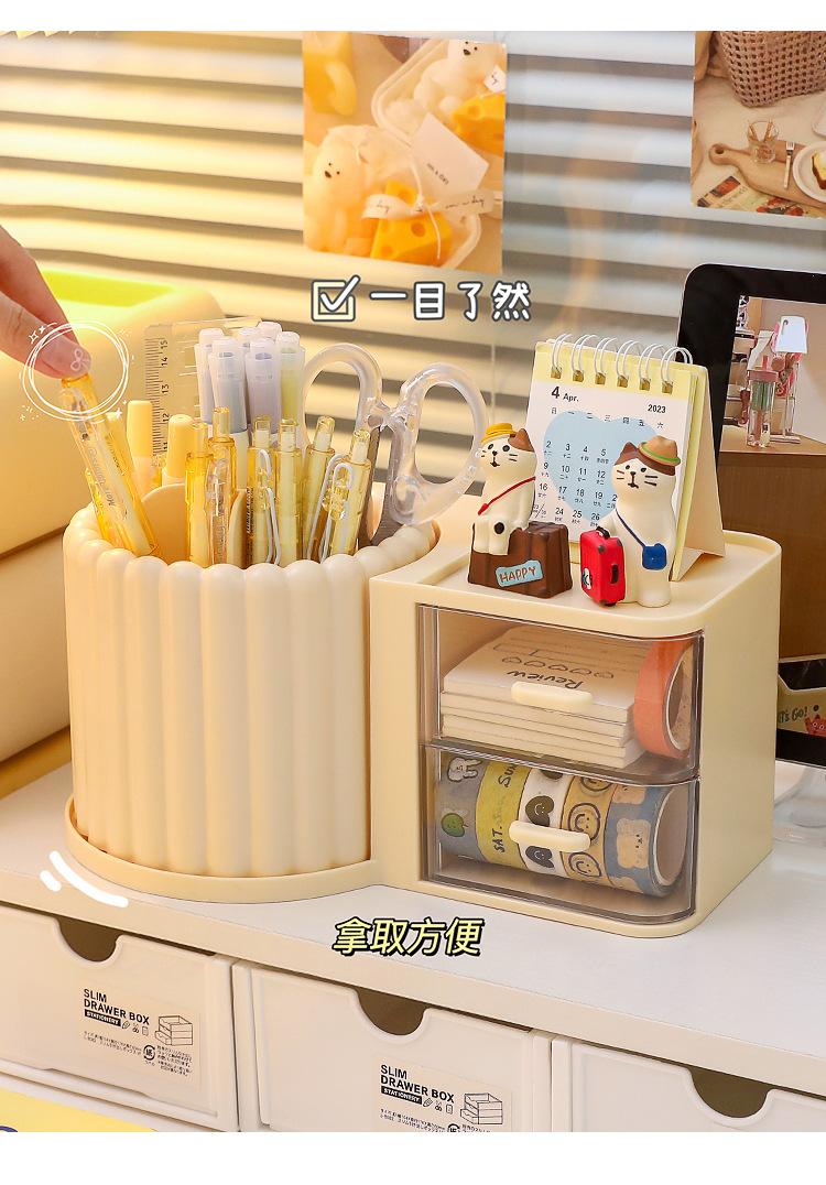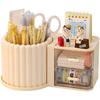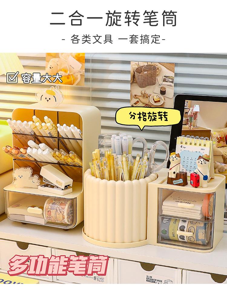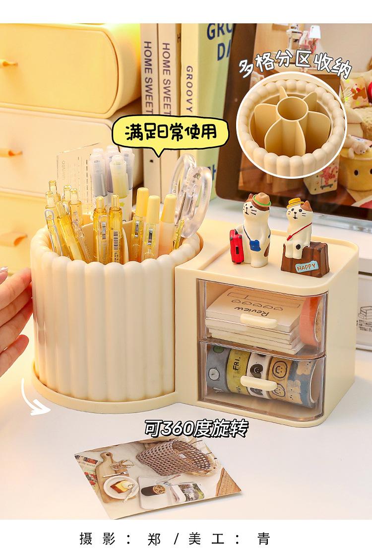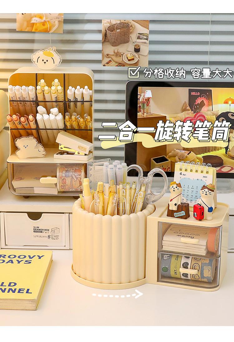 Rotating storage pen holder-cream color, Desktop compartment storage box-cream color, Diagonal storage box-cre...