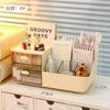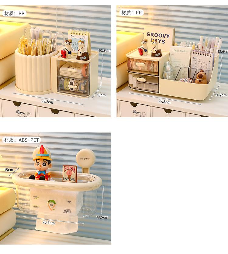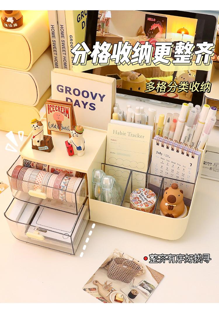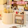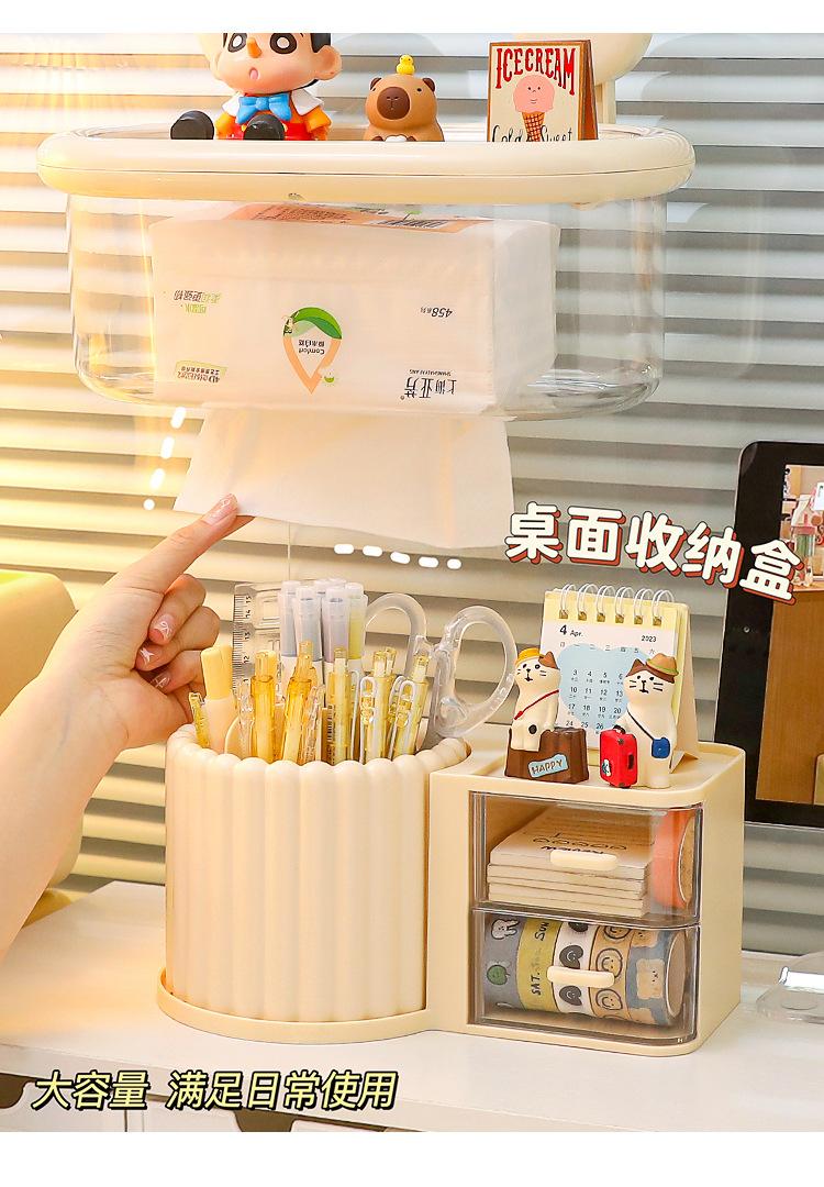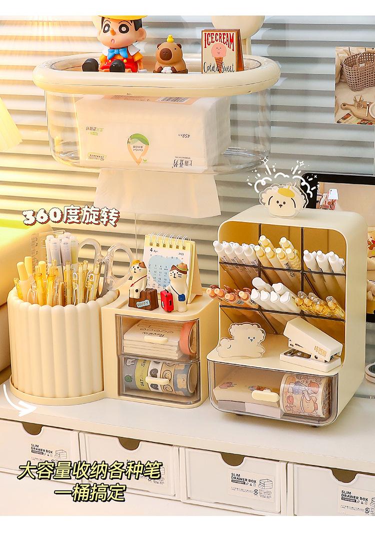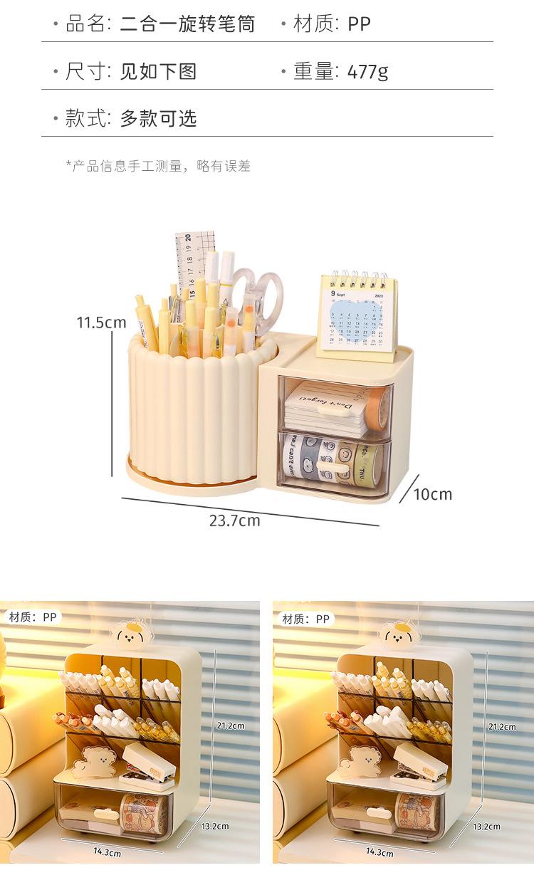 Rotating storage pen holder-cream color, Desktop compartment storage box-cream color, Diagonal storage box-cre...